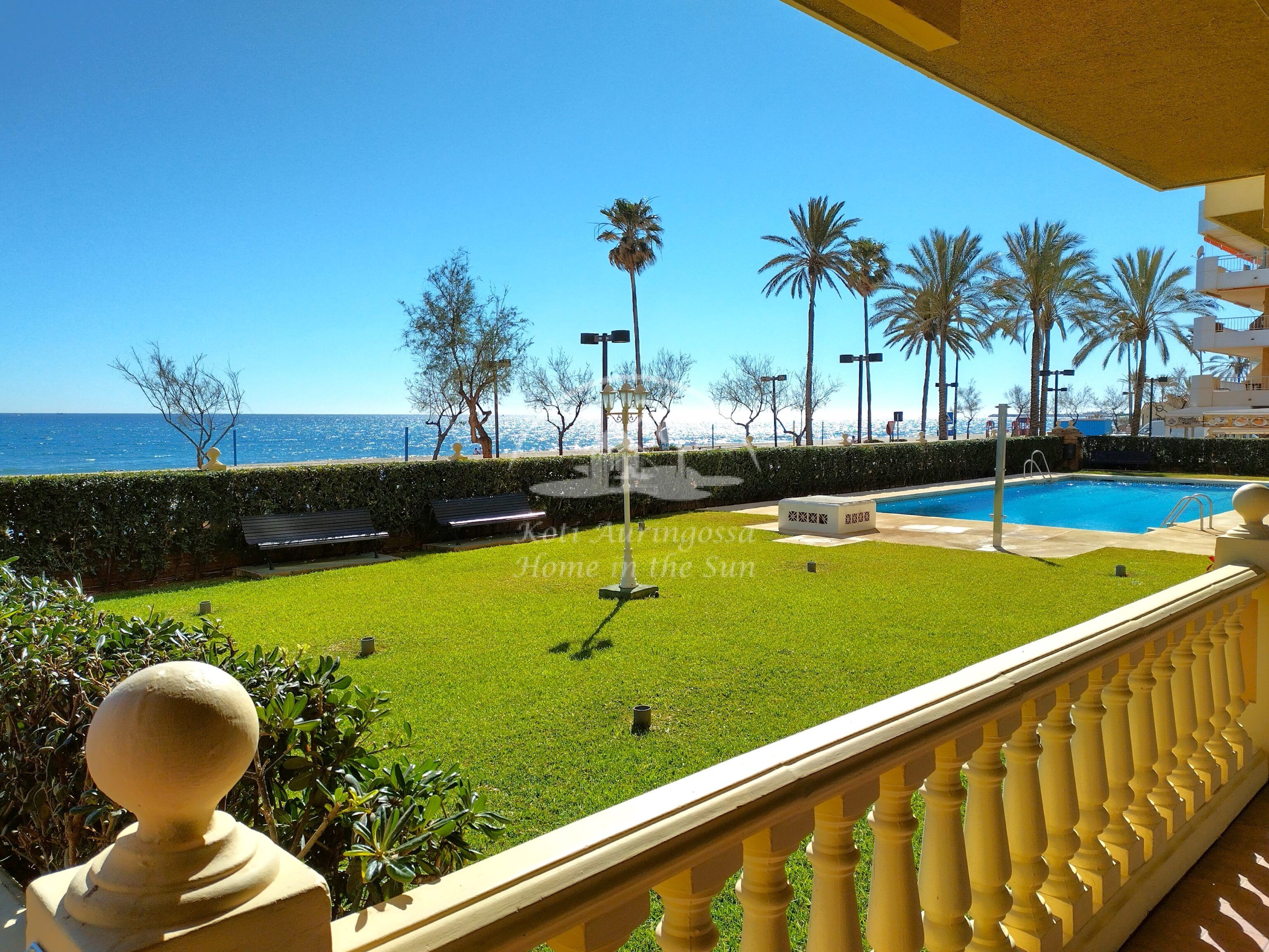 1 kylpyhuone. Erillinen keittiö jossa kaikki toimii sähköllä. Olohuoneesta käynti etelään päin olevalle aurinkoiselle terassille jonne aurinko paistaa auringon noususta noin puoleen päivään asti, terassilta upeat näkymät merelle ja rantakadulle. Olohuoneessa on ilmastointi lämpöpumppu. Taloyhtiössä on uima-allas vehreän nurmikko puutarhan ympäröimänä. Uima-allason auki ja käytettävissäympäri vuoden. Vapaasti valittavia parkkipaikkoja taloyhtiön takana olevalla suljetulla paikoitus alueella.