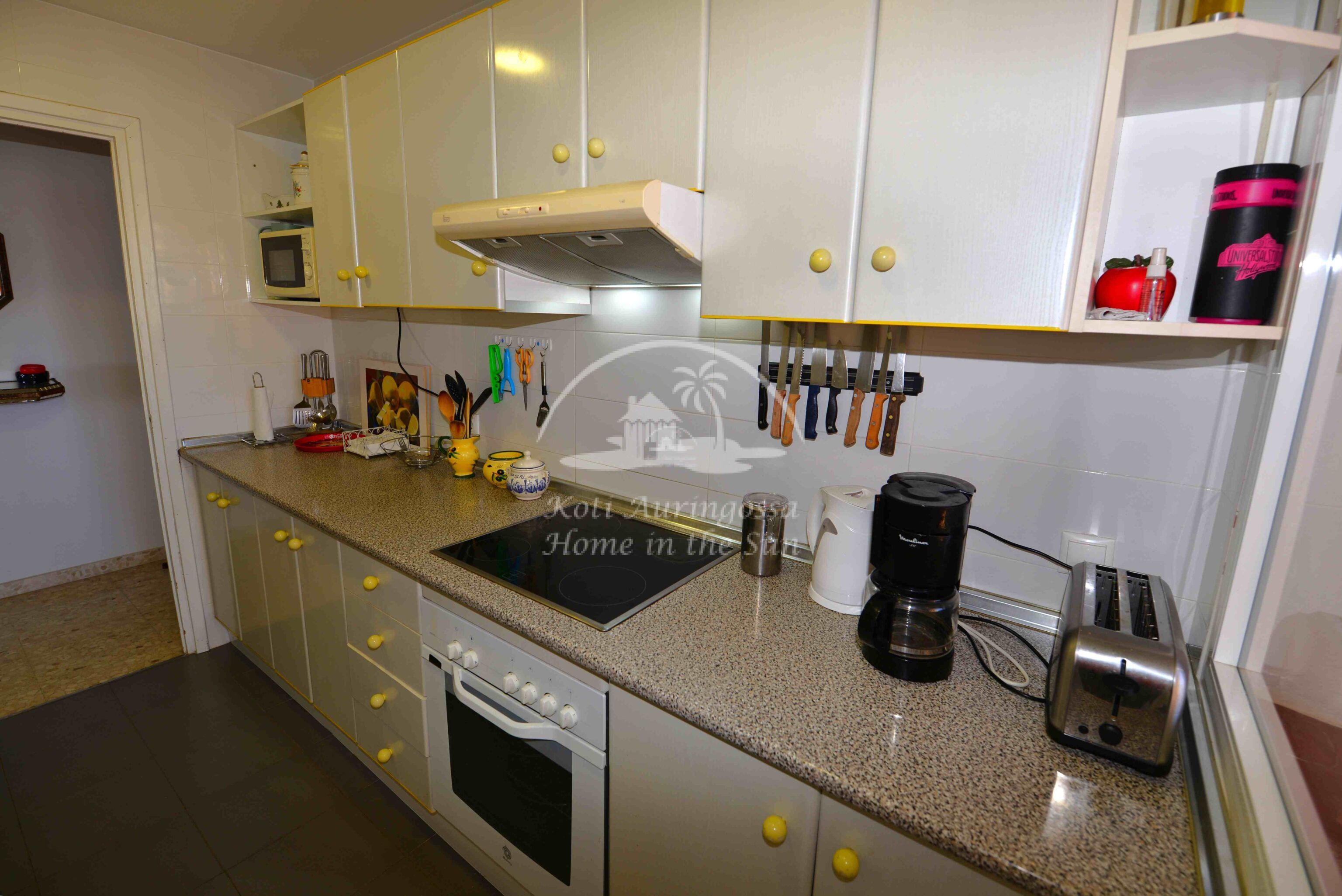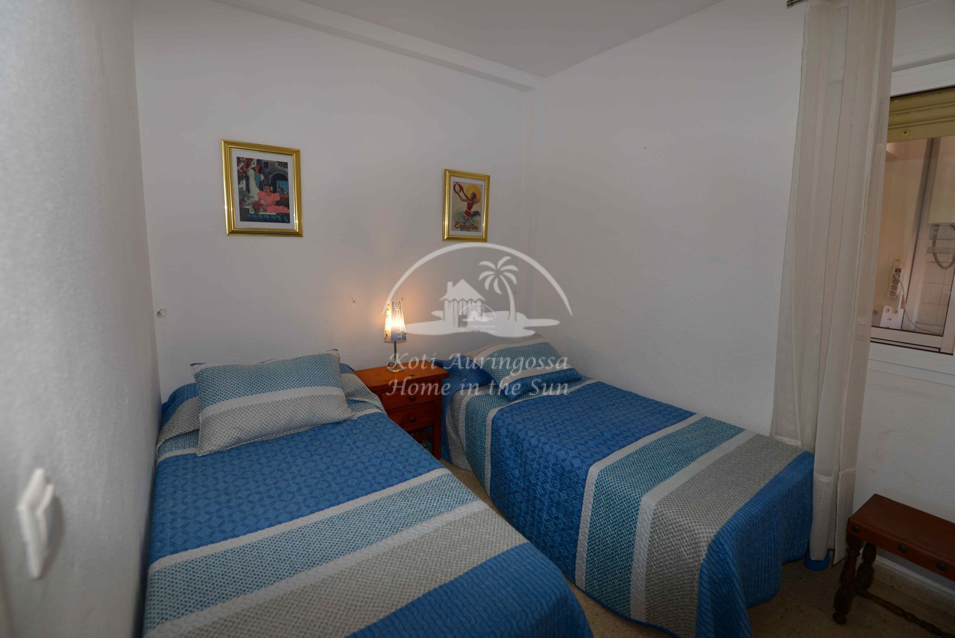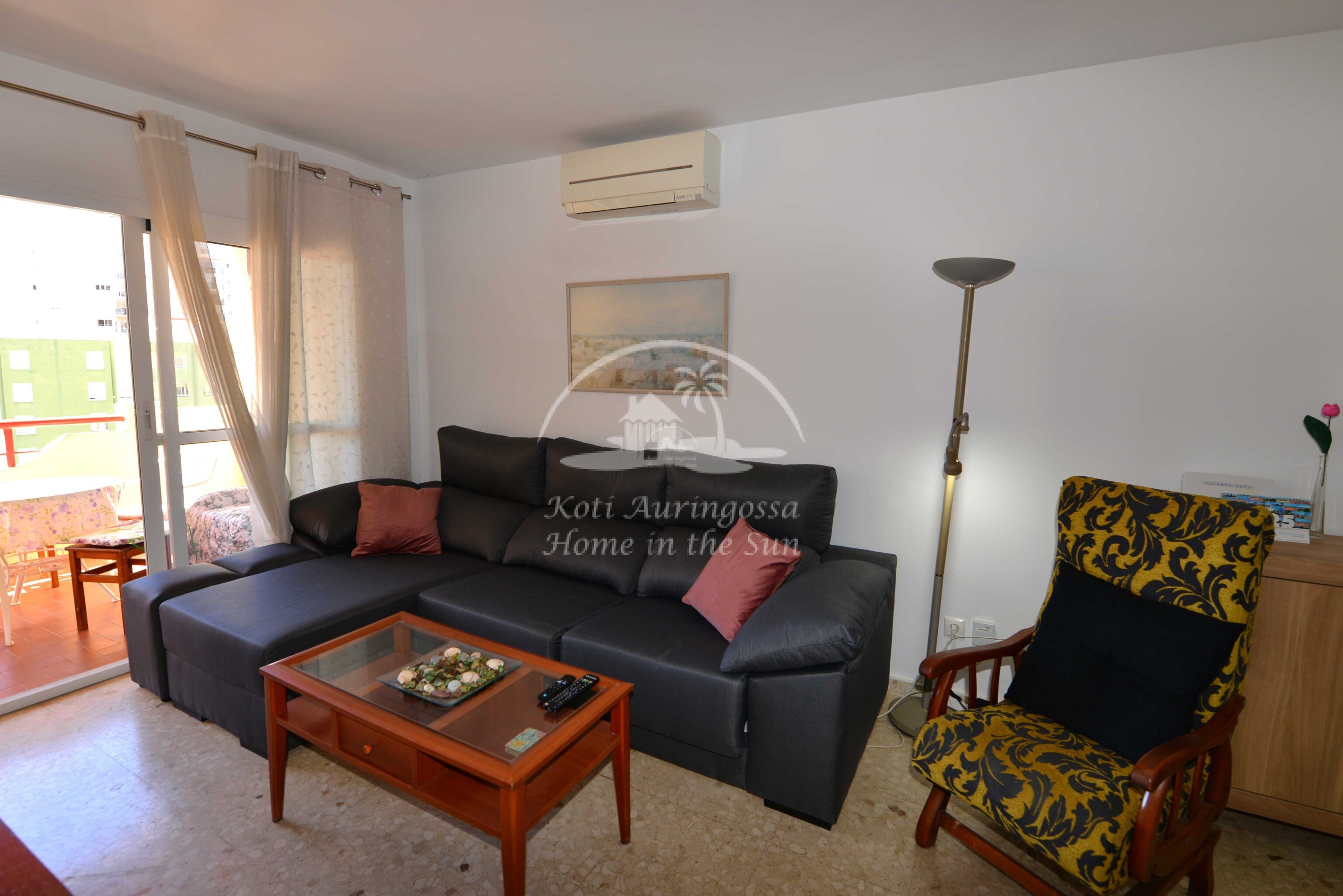 Valoisa olohuone ja ruokailutila. Olohuoneesta käynti koko huoneiston pituiselle länteen päin olevalle aurinkoiselle terassille, josta harvinaisen upeat näkymät kaupungin ylle. Erillinen tilava keittiö, keittiön perällä kodinhoitohuone jossa on pesukone ja vesiboileri. 3 makuuhuonetta, 2 täysin uusittua kylpyhuonetta. Olohuoneessa ilmastointi lämpöpumppu. Nopea valokuitu wifi nettiyhteys. Uima-allas kauniin nurmikko puutarhan ympäröiminä. Kaikki keskustan palvelut lähellä. Merenrantaan 400 metriä. Juna asemalle noin 500 metriä. Osoite: Calle Santa Isabel, Edif. Diana 1, 7 krs. Los Boliches.