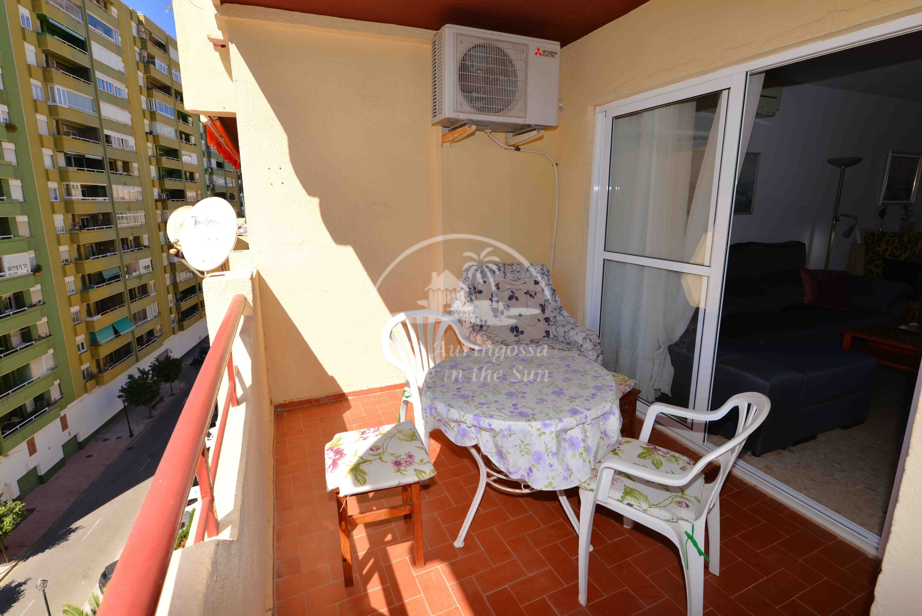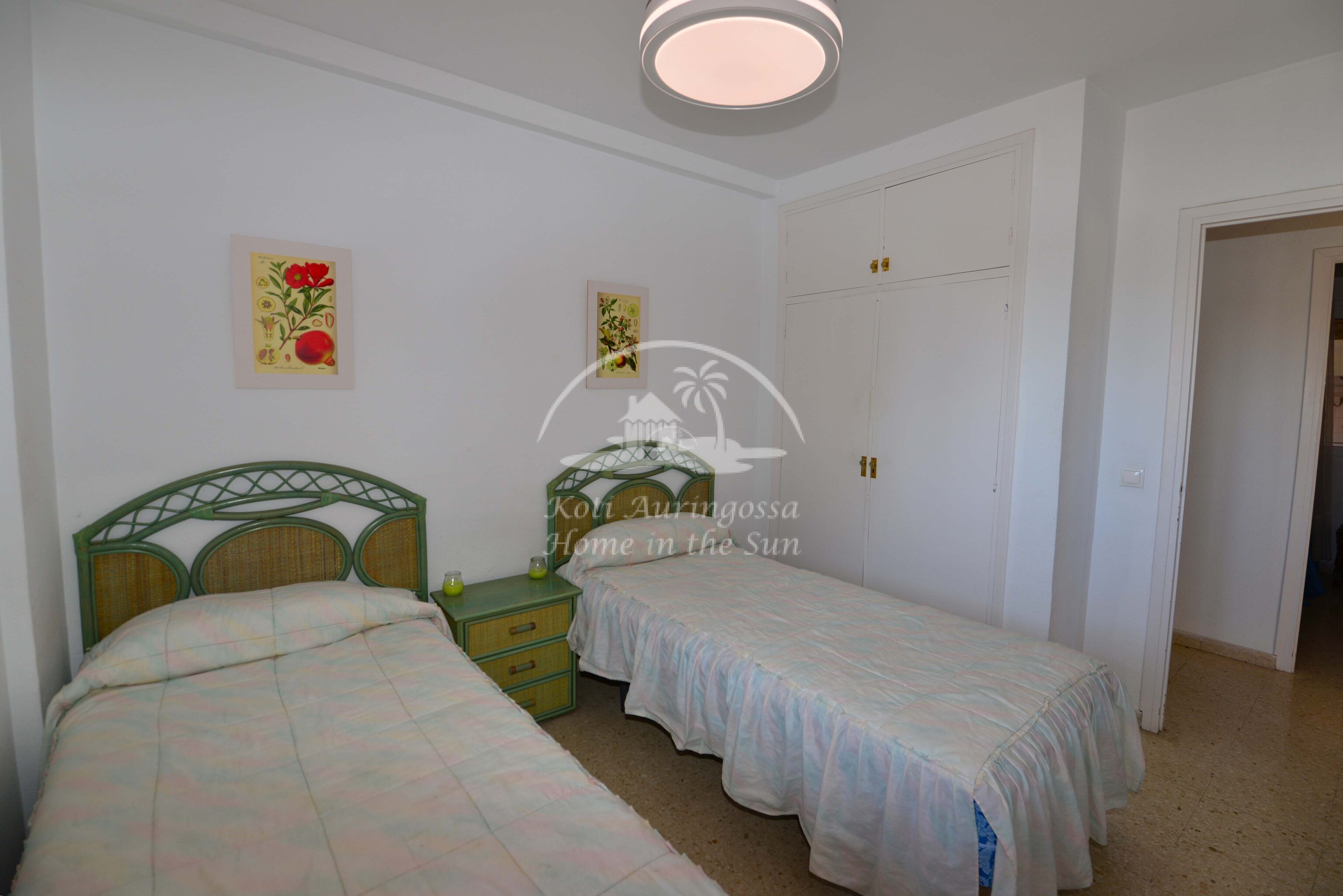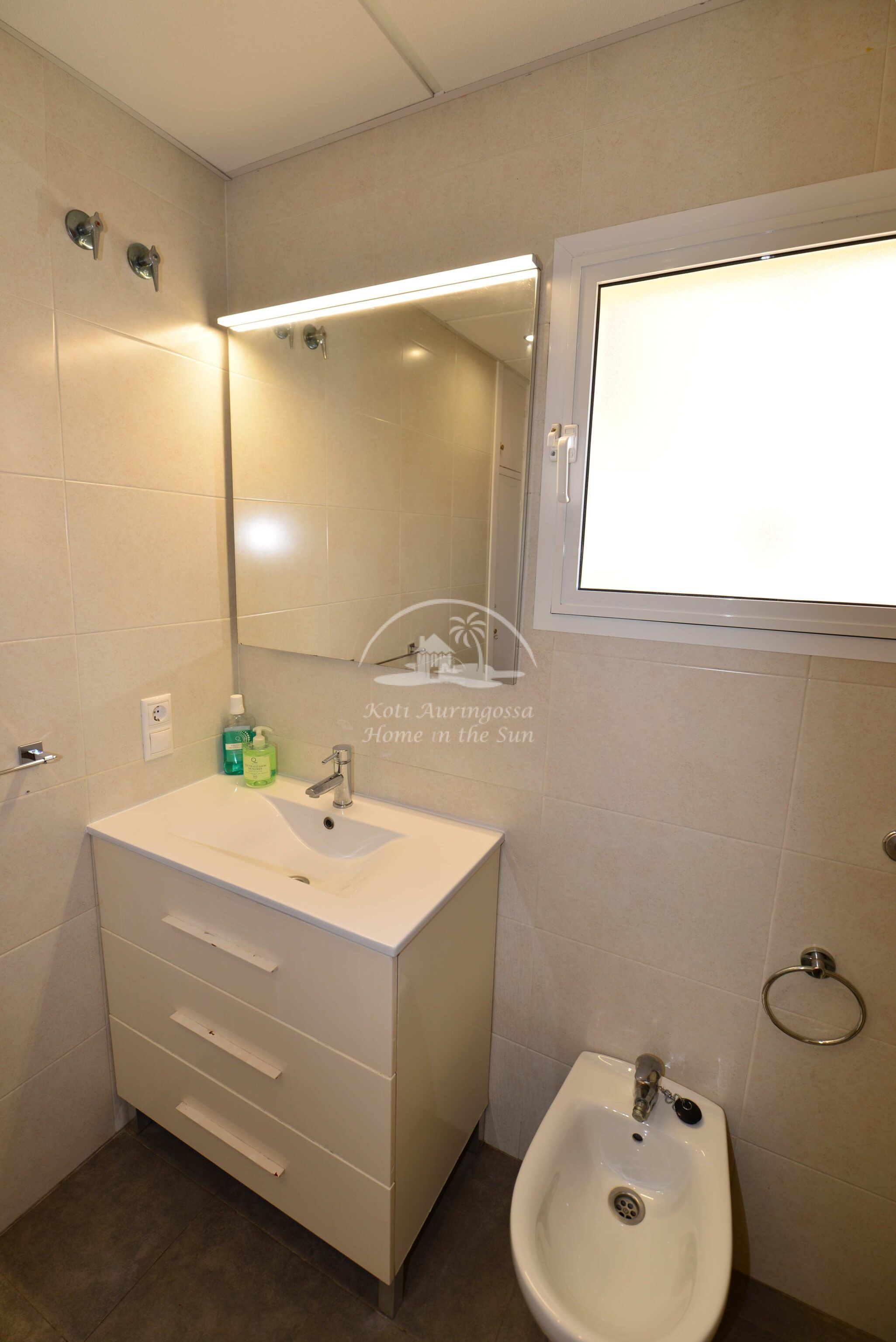 Valoisa olohuone ja ruokailutila. Olohuoneesta käynti koko huoneiston pituiselle länteen päin olevalle aurinkoiselle terassille, josta harvinaisen upeat näkymät kaupungin ylle. Erillinen tilava keittiö, keittiön perällä kodinhoitohuone jossa on pesukone ja vesiboileri. 3 makuuhuonetta, 2 täysin uusittua kylpyhuonetta. Olohuoneessa ilmastointi lämpöpumppu. Nopea valokuitu wifi nettiyhteys. Uima-allas kauniin nurmikko puutarhan ympäröiminä. Kaikki keskustan palvelut lähellä. Merenrantaan 400 metriä. Juna asemalle noin 500 metriä. Osoite: Calle Santa Isabel, Edif. Diana 1, 7 krs. Los Boliches.