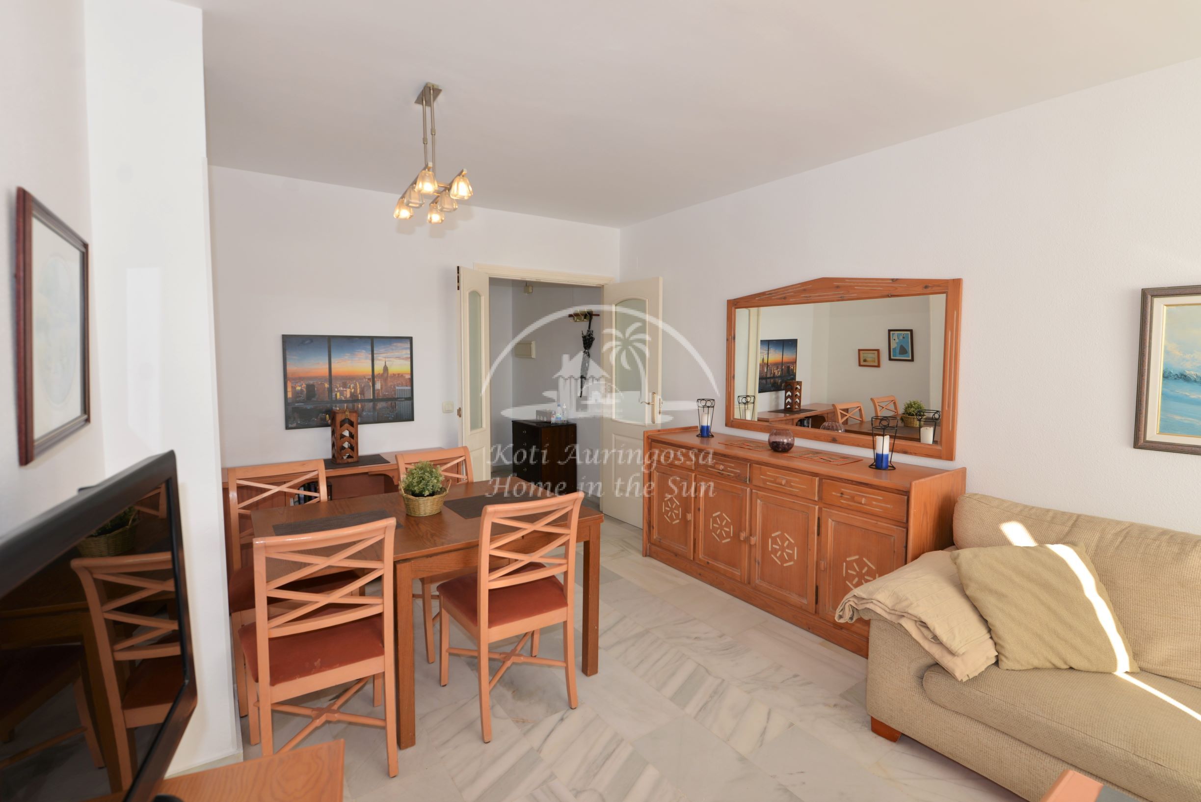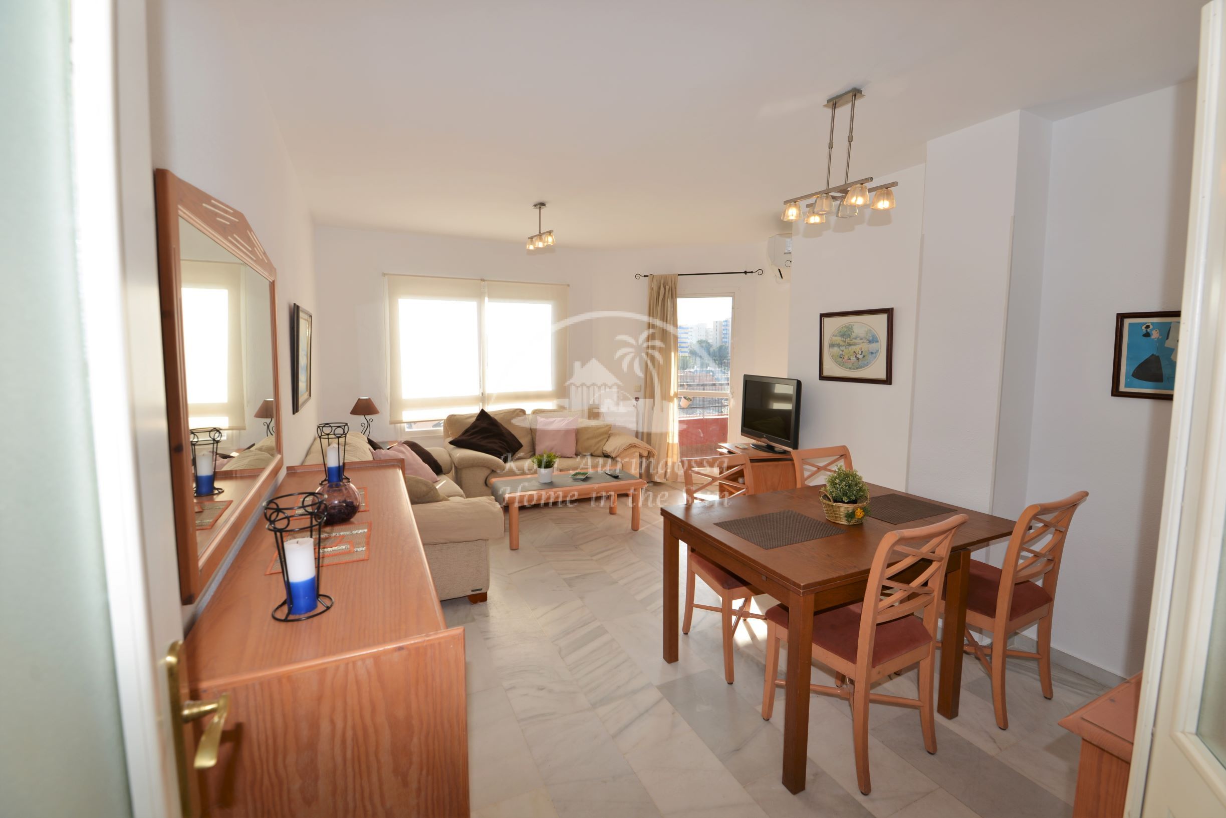 Valoisa olohuone ja ruokailutila. Olohuoneesta on käynti länteen päin olevalle terassille. Terassilta on portaat suurelle 100m2 kattoterassille, jonne aurinko paistaa aivan koko päivän, siellä voi myös grillata. Tilava keittiö jossa on myös astianpesukone. 3 makuuhuonetta. 2 kylpyhuonetta. Ilmastointi lämpöpumppu olohuoneessa. Taloyhtiössä on uima-allas kauniin vehreän puutarhan ympäröimänä, sekä padel pelikenttä. Parkkipaikka taloyhtiön autotallissa. Kaikki keskustan palvelut lähellä. Suomalaiselle koululle Los Pacokseen noin 1 km. Los Bolichesin junapysäkille noin 400 metriä.