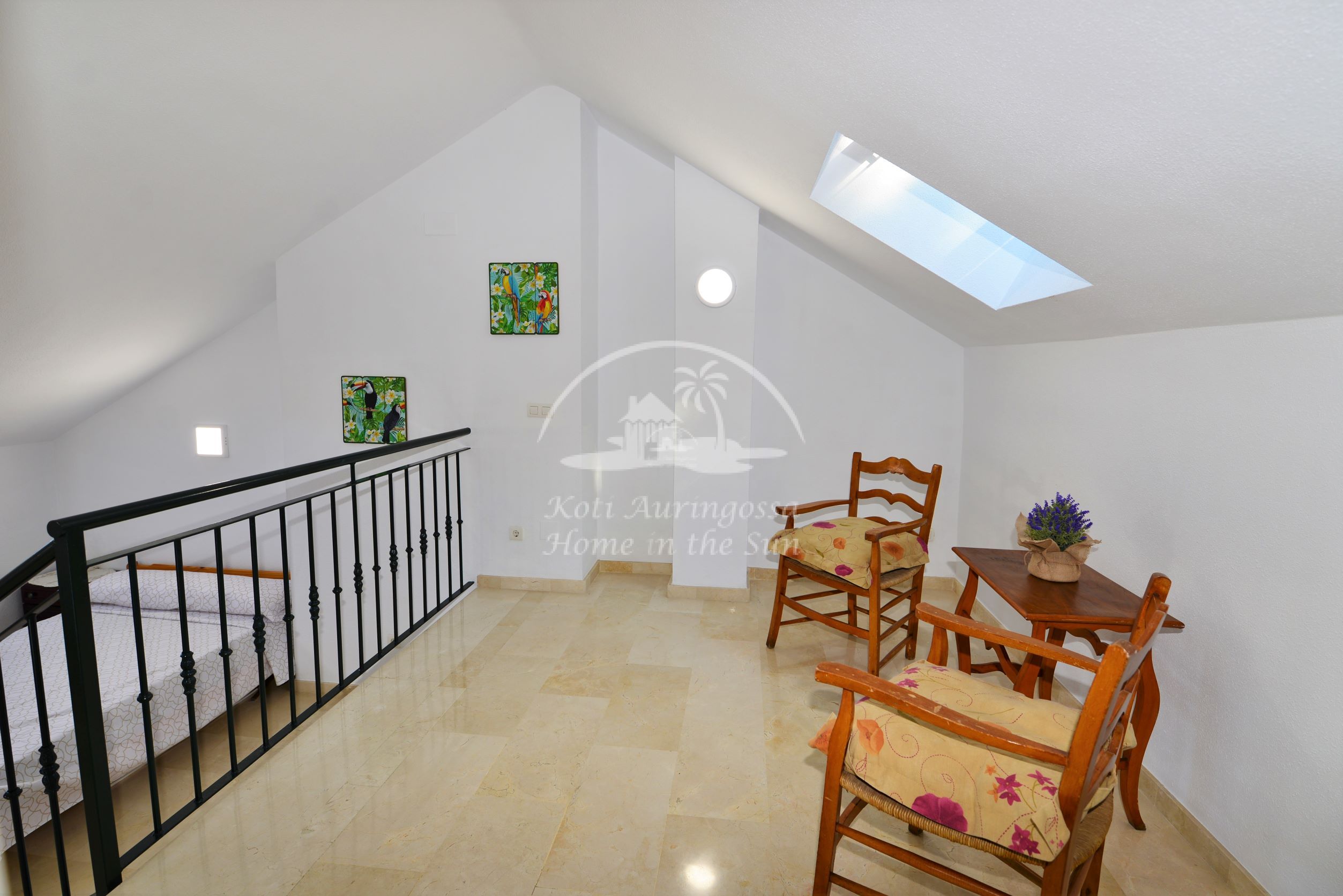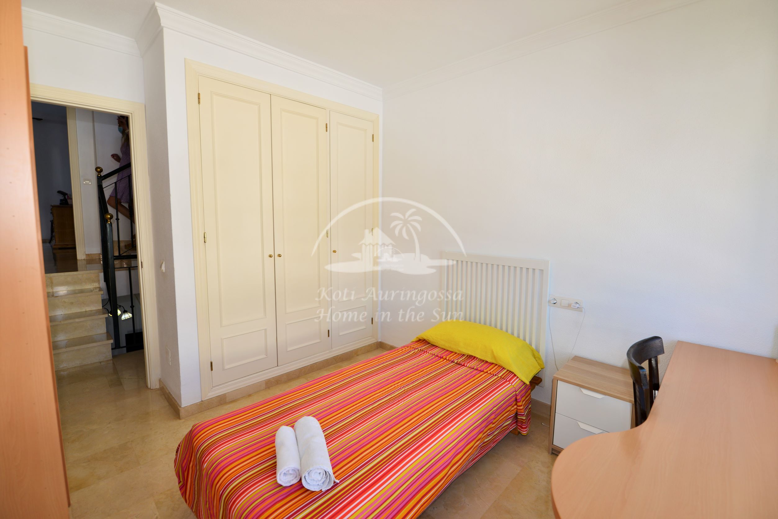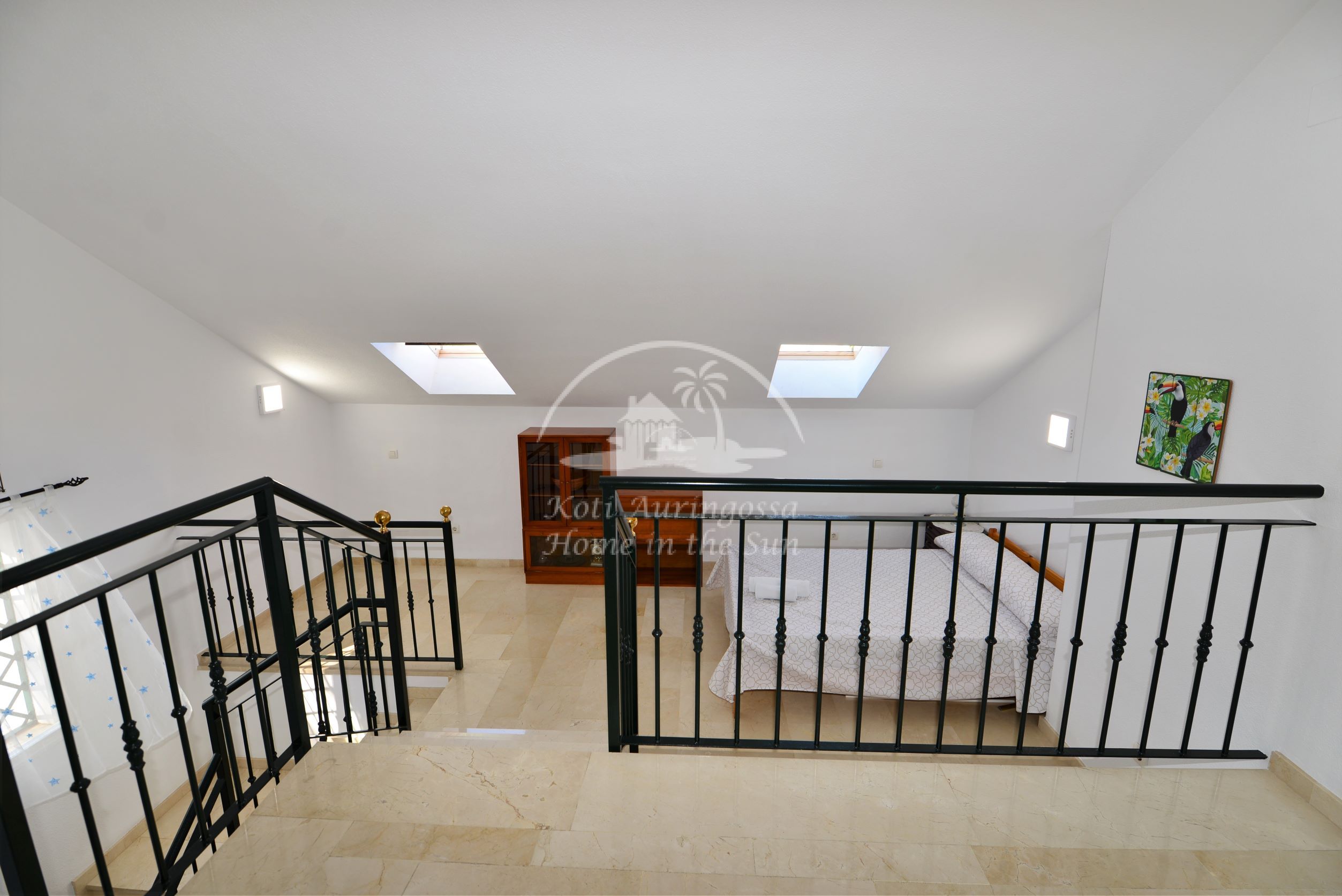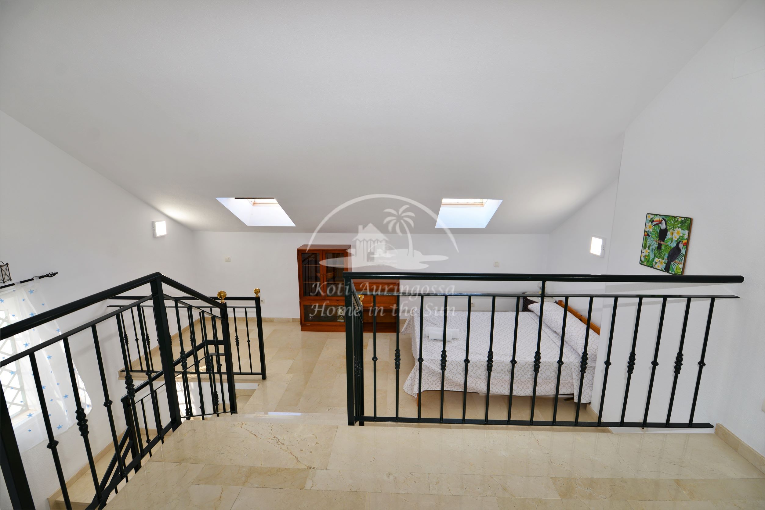 Talossa on 4 kerrosta, katutasossa on suuri 54m2 auton autotalli johon mahtuu hyvin kaksi autoa + varastotilaa. 1 kerroksessa on avara valoisa olohuone ja ruokailutila takalla. Olohuoneesta on käynti suurelle länteen päin olevalle terassille, jossa voi grillata. 1 wc. Erillinen reilun kokoinen keittiö, jossa on myös astianpesukone. Toisessa kerroksessa on 3 makuuhuonetta ja 2 kylpyhuonetta. Kolmannessa kerroksessa on 1 todella avara makuuhuone ja oleskelutila + 1 kylpyhuone. Valmiina nopea valokuitu wifi internet yhteys, joka sisältyy vuokraan. Ilmastointi lämpöpumppu olohuoneessa ja makuuhuoneessa. Taloyhtiössä on uima-allas vehreän puutarhan ympäröimänä, sekä padel pelikenttä. Merenrantaan noin 150 metriä.
