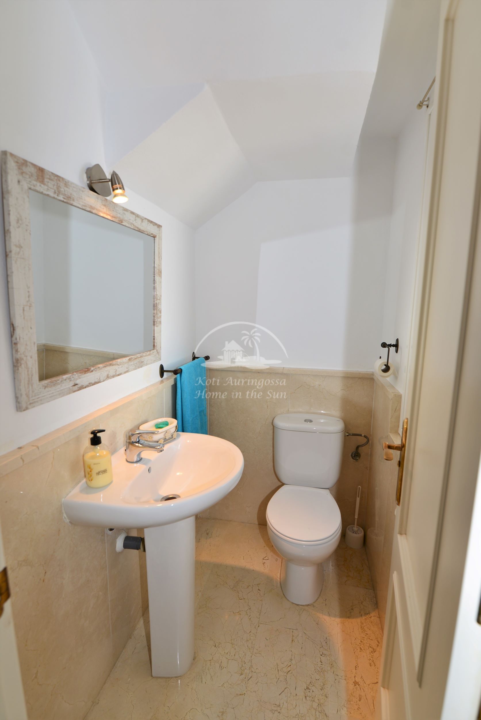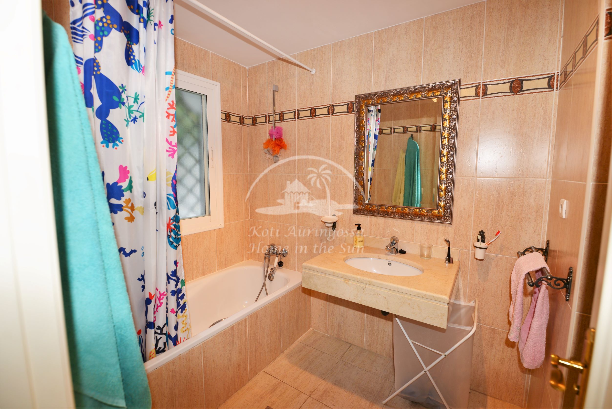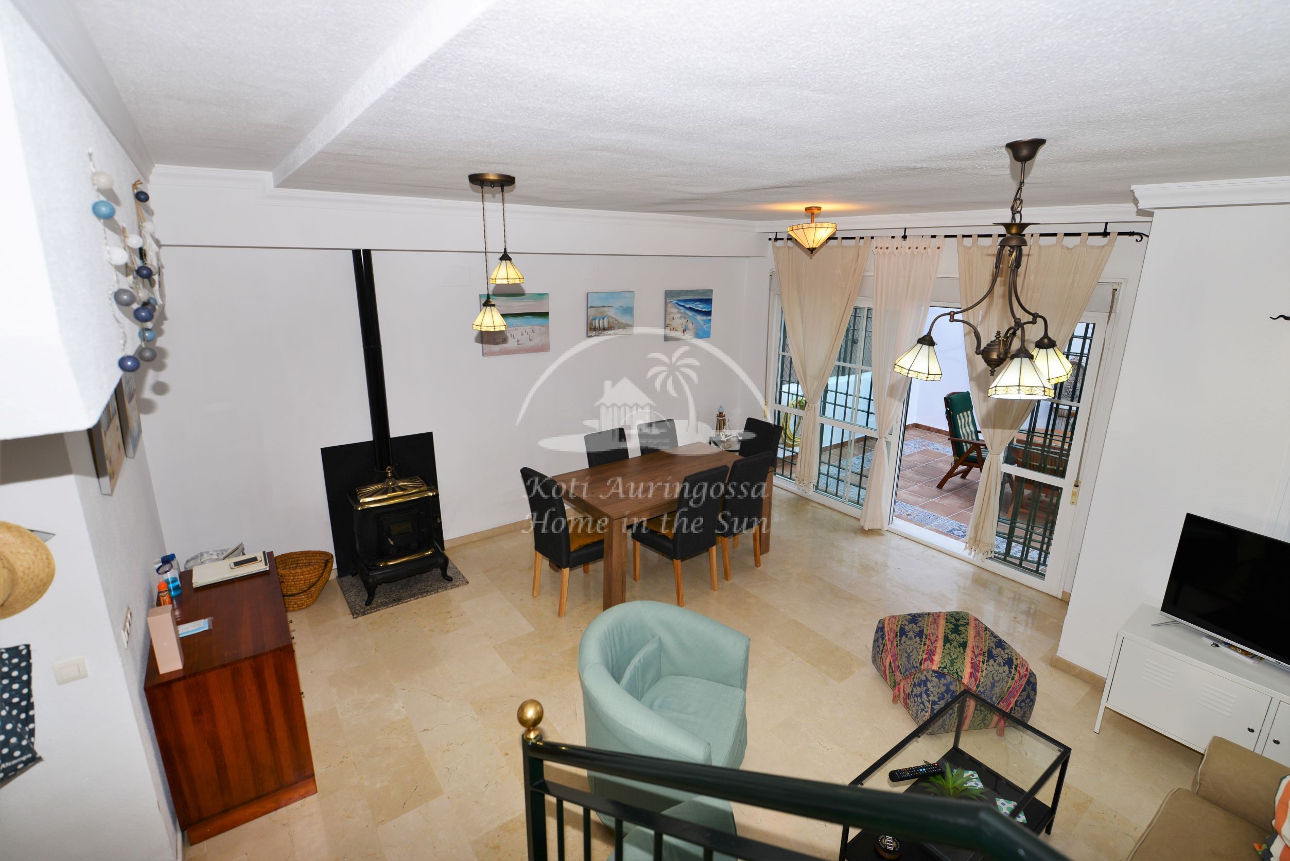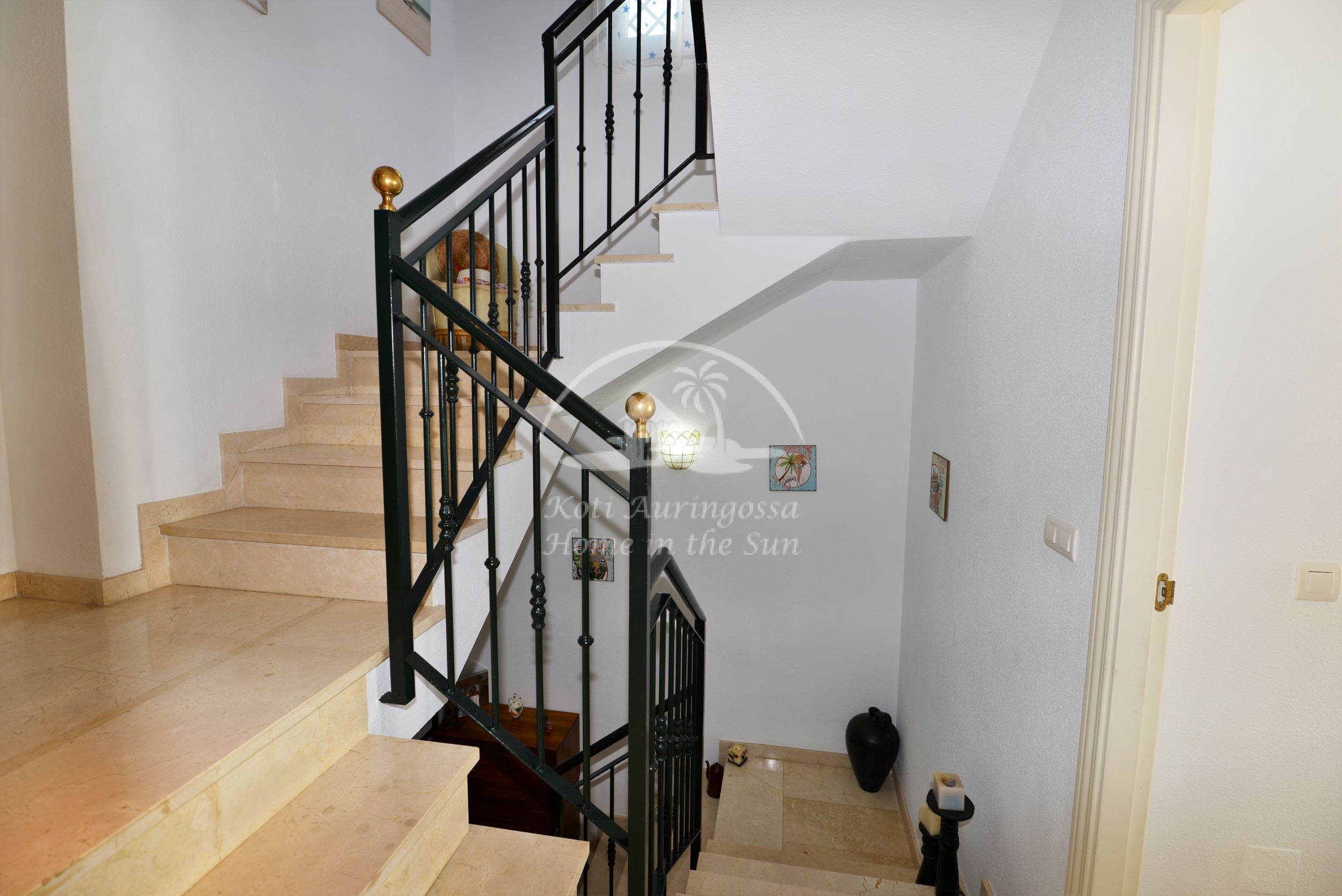 Talossa on 4 kerrosta, katutasossa on suuri 54m2 auton autotalli johon mahtuu hyvin kaksi autoa + varastotilaa. 1 kerroksessa on avara valoisa olohuone ja ruokailutila takalla. Olohuoneesta on käynti suurelle länteen päin olevalle terassille, jossa voi grillata. 1 wc. Erillinen reilun kokoinen keittiö, jossa on myös astianpesukone. Toisessa kerroksessa on 3 makuuhuonetta ja 2 kylpyhuonetta. Kolmannessa kerroksessa on 1 todella avara makuuhuone ja oleskelutila + 1 kylpyhuone. Valmiina nopea valokuitu wifi internet yhteys, joka sisältyy vuokraan. Ilmastointi lämpöpumppu olohuoneessa ja makuuhuoneessa. Taloyhtiössä on uima-allas vehreän puutarhan ympäröimänä, sekä padel pelikenttä. Merenrantaan noin 150 metriä.