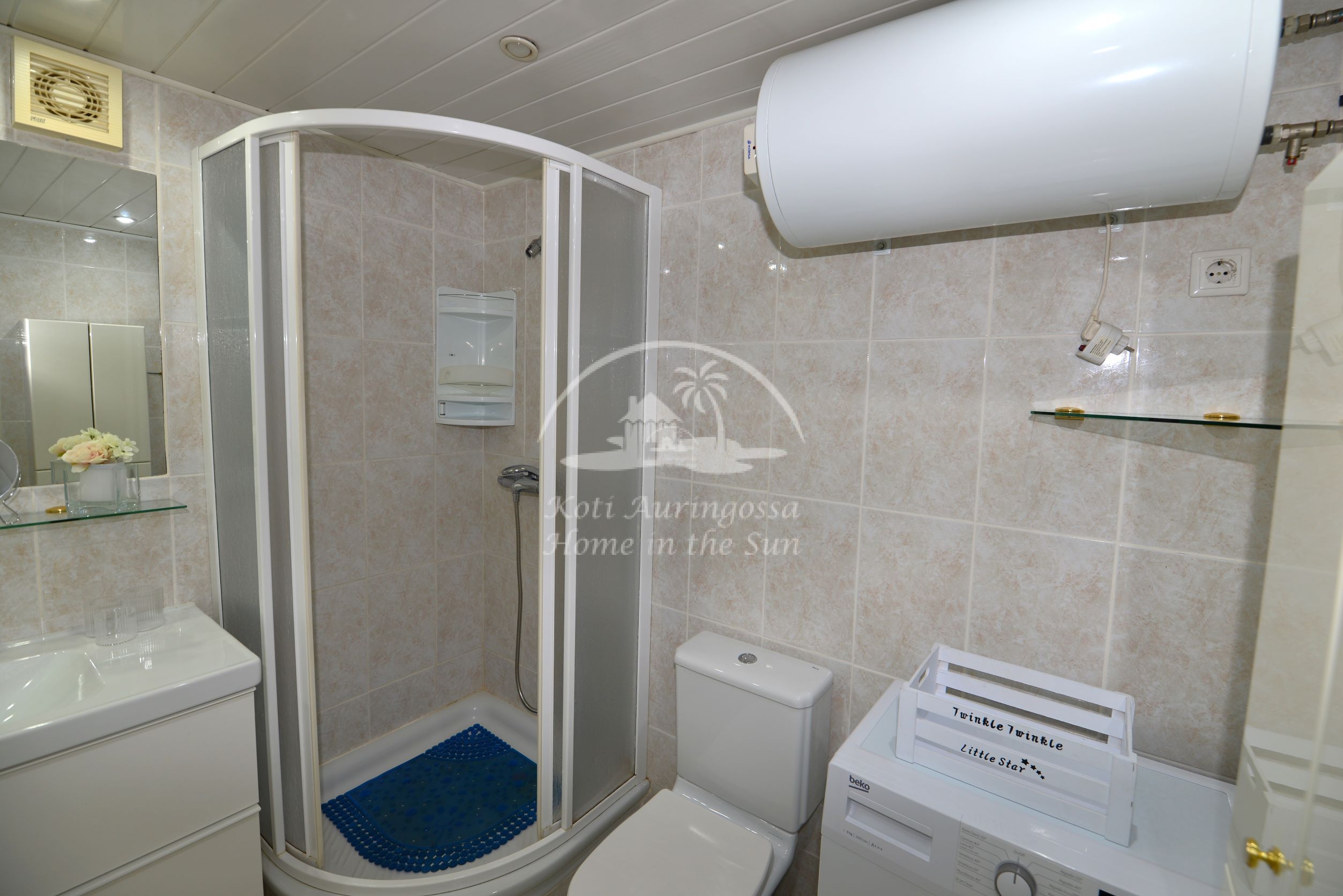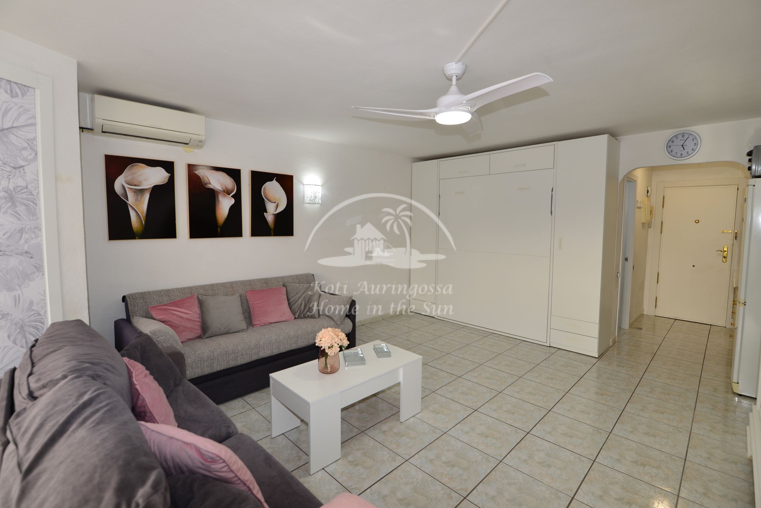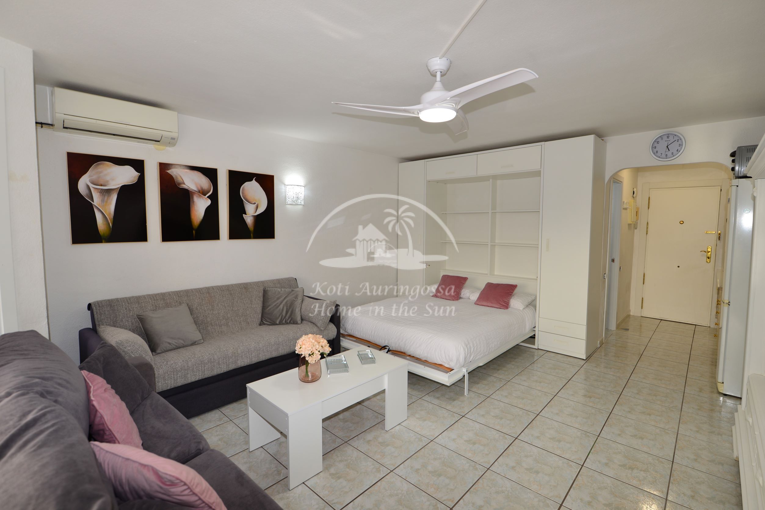 Avara olohuone, jossa komerosta alas laskettava leveä parivuode. Olohuoneessa kaksi vuodesohvaa. Reilun kokoinen länteen päin oleva aurinkoinen lasitettu terassi. Moderni avokeittiö, jossa myös astianpesukone. 1 Kylpyhuone suihkulla. Nopea valokuitu wifi internet yhteys valmiina, joka sisältyy vuokraan. Taloyhtiössä on ympäri vuoden auki oleva uima-allas. Uima-allas alueelta pääsee suoraan merenrannalle ja rantakadulle, jota pitkin voi kävellä Marbellaan asti.