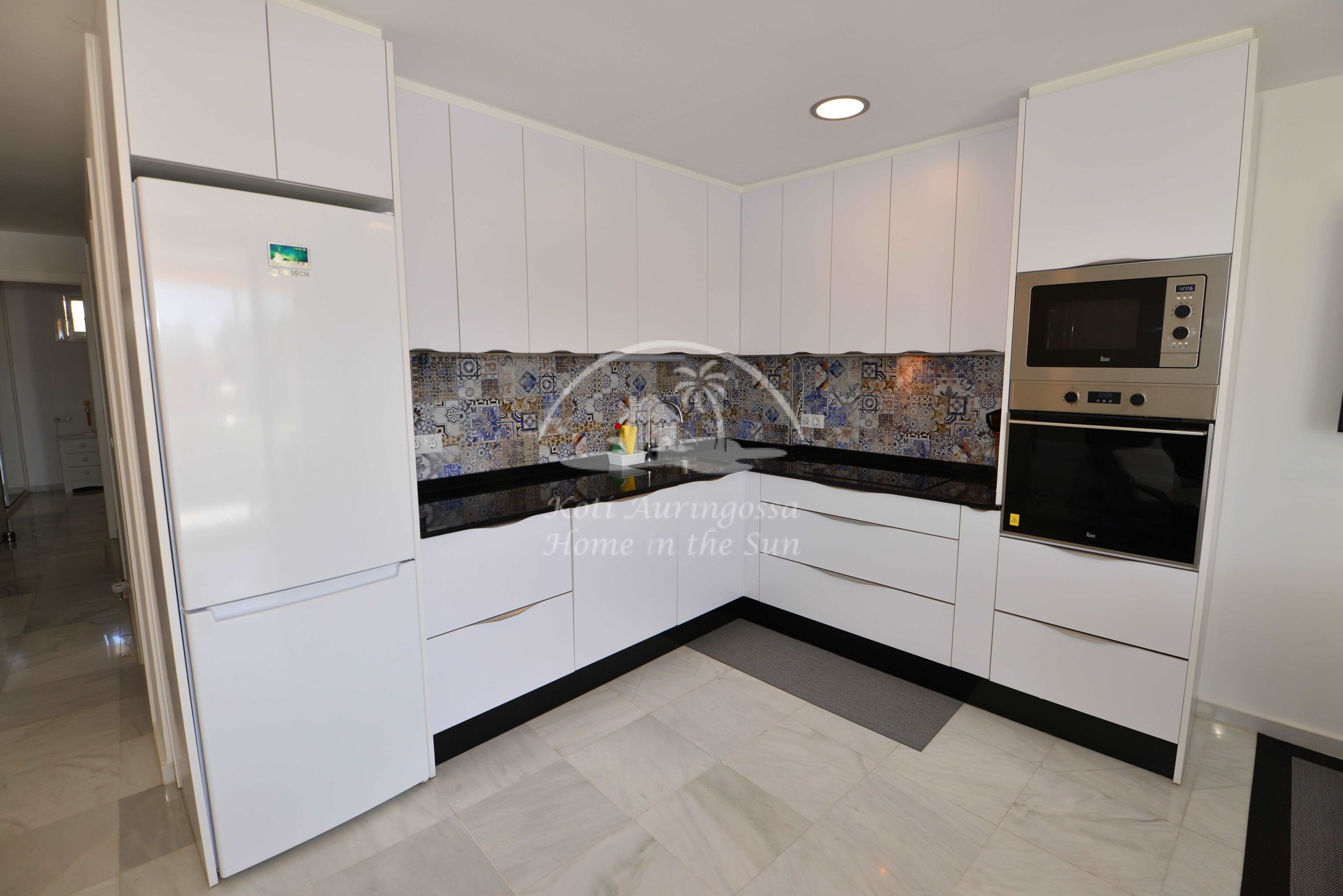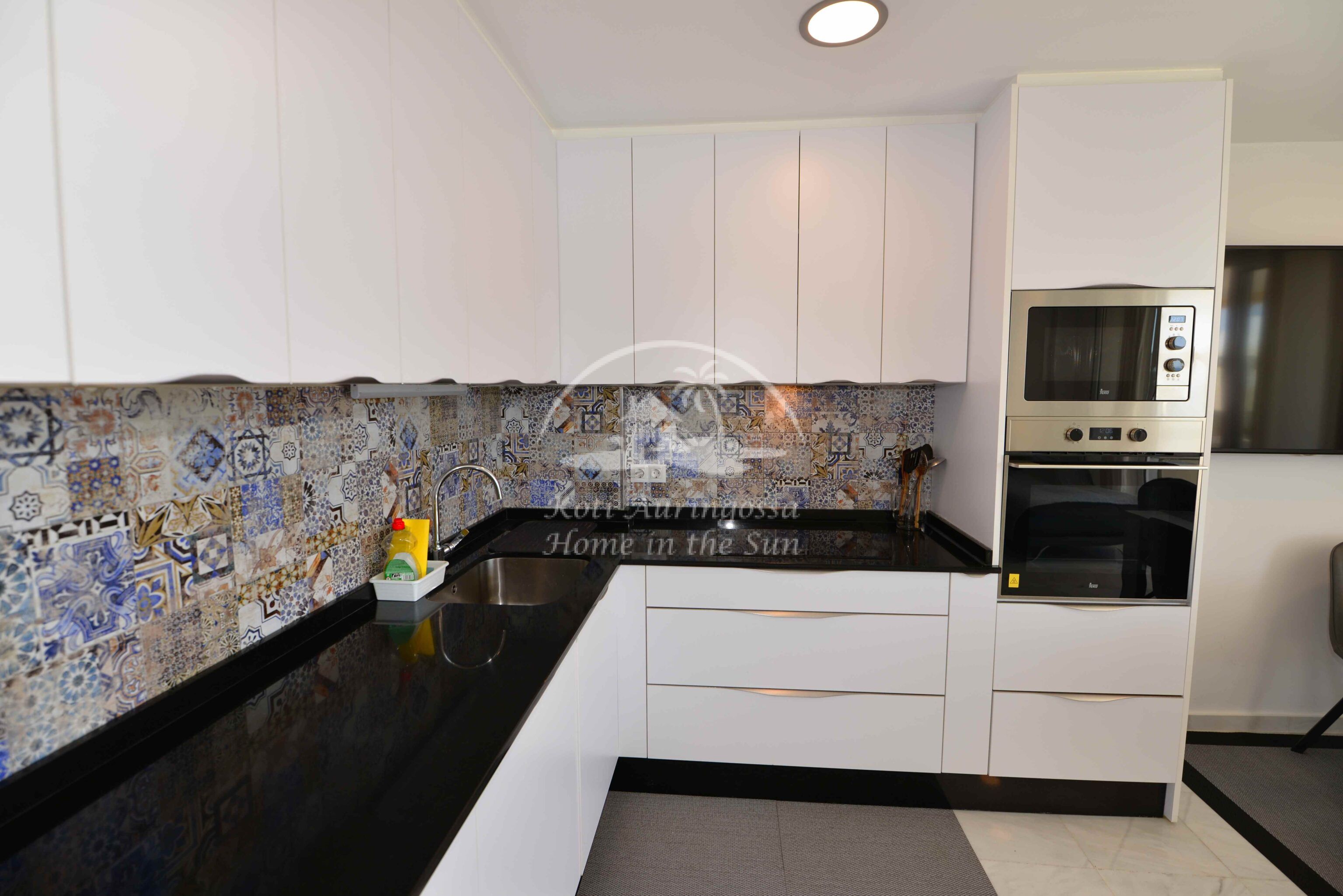 Asunto on kauttaaltaan uusittu ja sen on kodikkaasti kalustettu ja sisustettu vaalein kevein värein, pohjoismaalaiseen makuun. Valoisa olohuone ja ruokailutila. Moderni avokeittiö jossa on myös astianpesukone. Olohuoneesta on käynti aurinkoiselle etelään päin olevalle lasitetulle terassille, jossa on myös kiva kesäkeittiö. Terassilta on todella kauniit avarat näkymät merelle ja rannikolle.