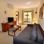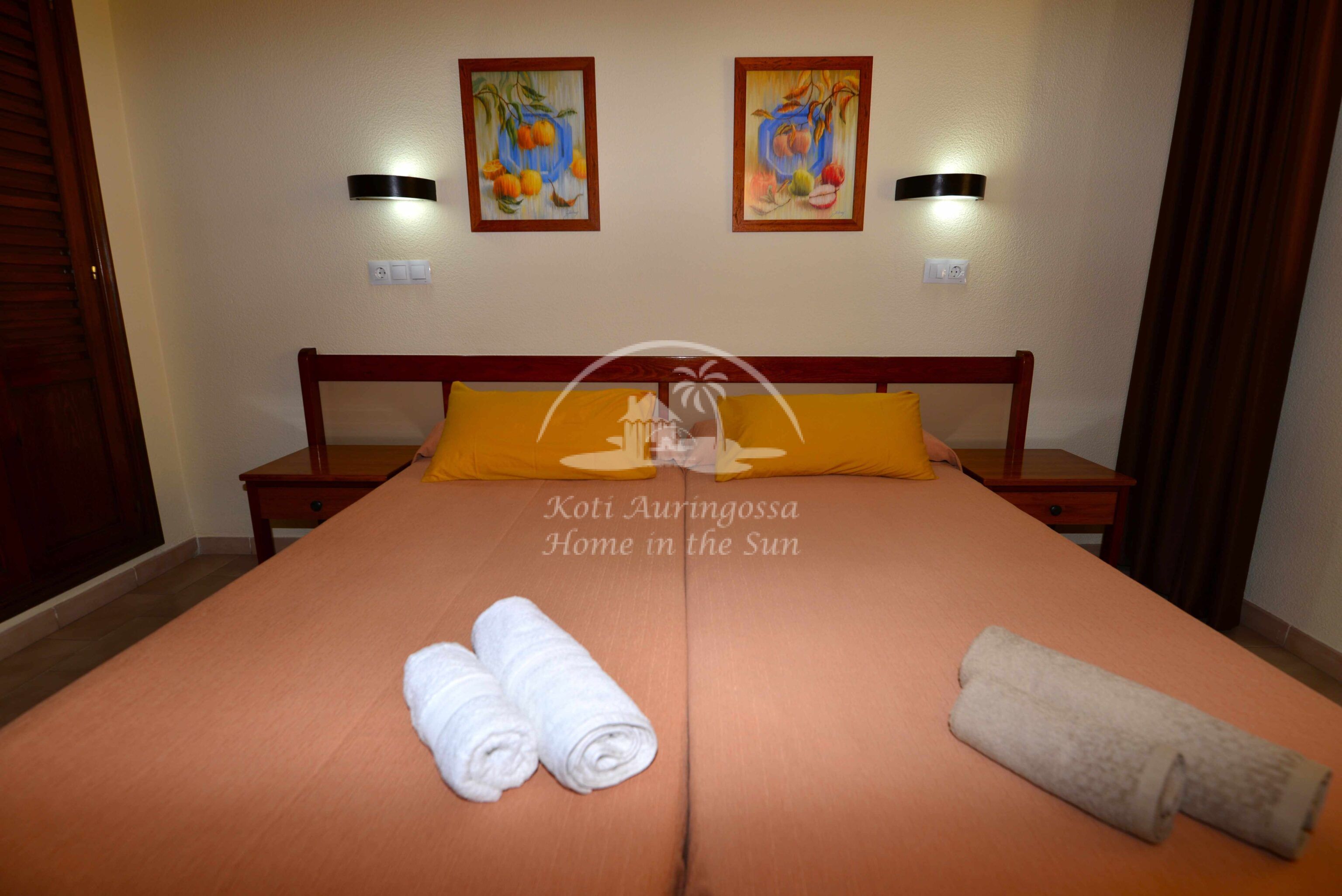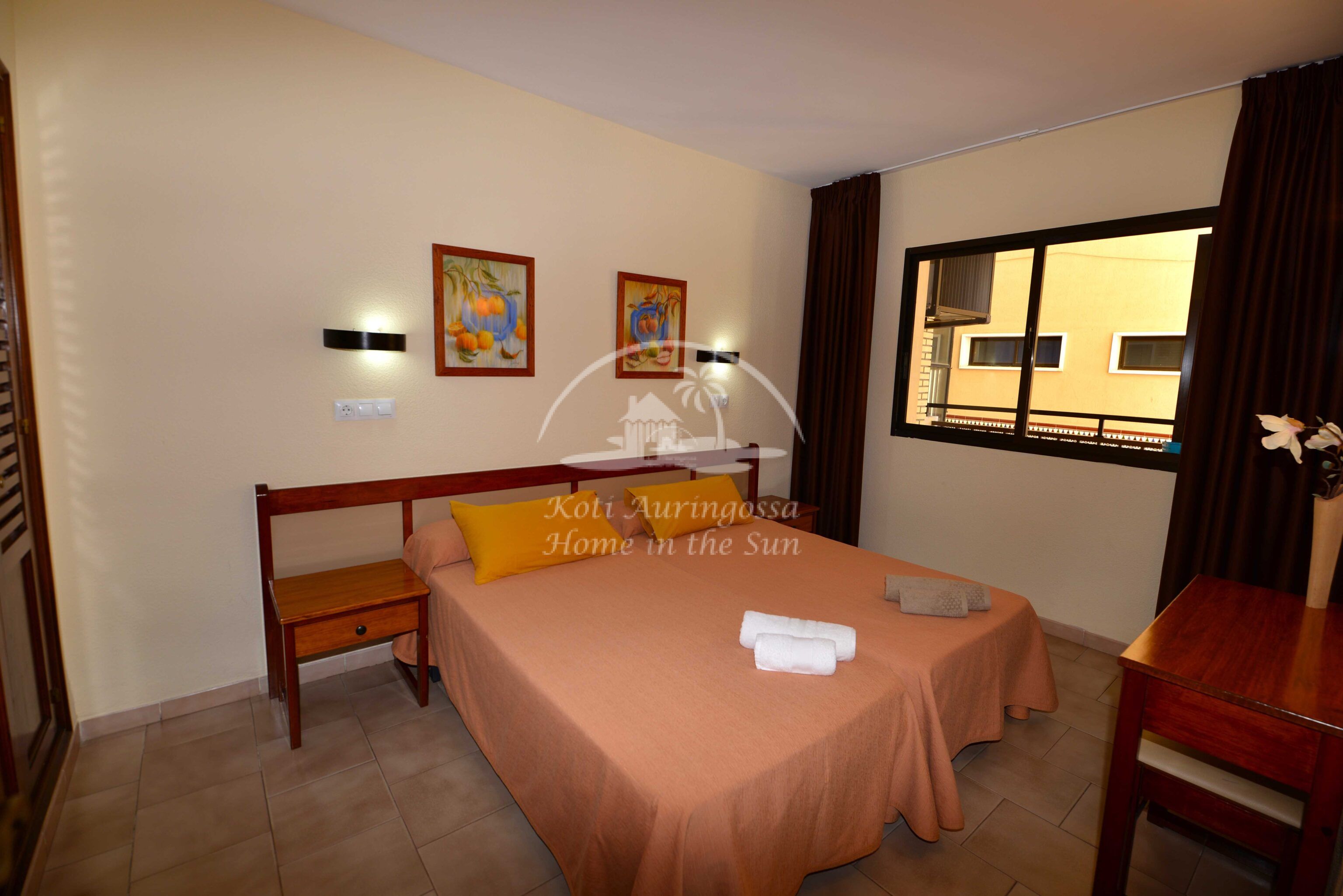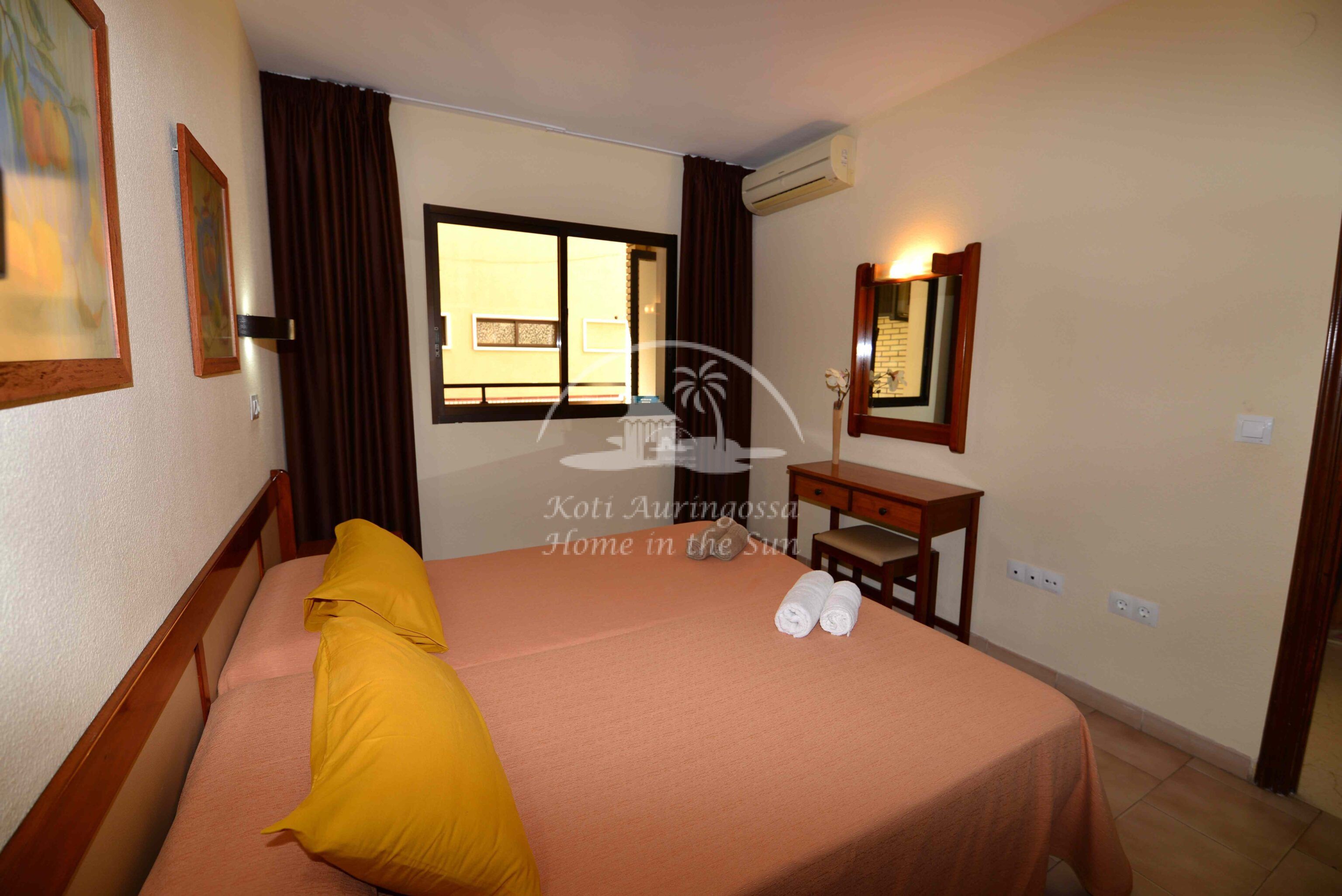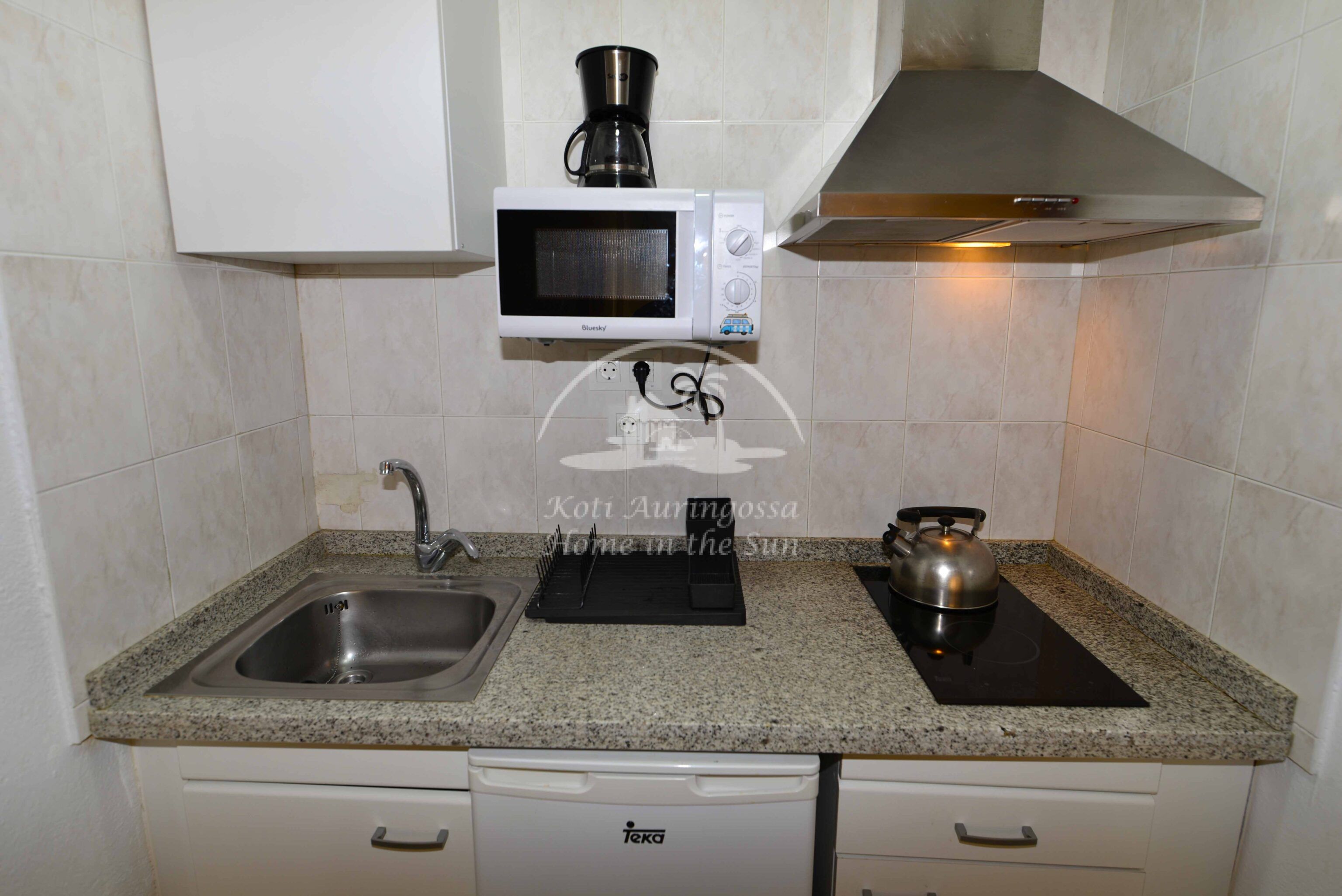 Asunto on kodikkaasti kalustettu ja sisustettu. Valoisa olohuone ja ruokailutila. Olohuoneesta on käynti länteen päin olevalle terassille, josta on kivat näkymät taloyhtiön suurelle uima-altaalle. Pieni avokeittiö, 1 makuuhuone. 1 kylpyhuone. Ilmastointi lämpöpumppu olohuoneessa ja makuuhuoneessa. Nopea valokuitu wifi internet yhteys valmiina, joka sisältyy vuokraan. Taloyhtiön uima-allas on auki 15.5.2025 – 30.9.2025. ( Varattu 1.6.2026 – 31.8.2026 )
