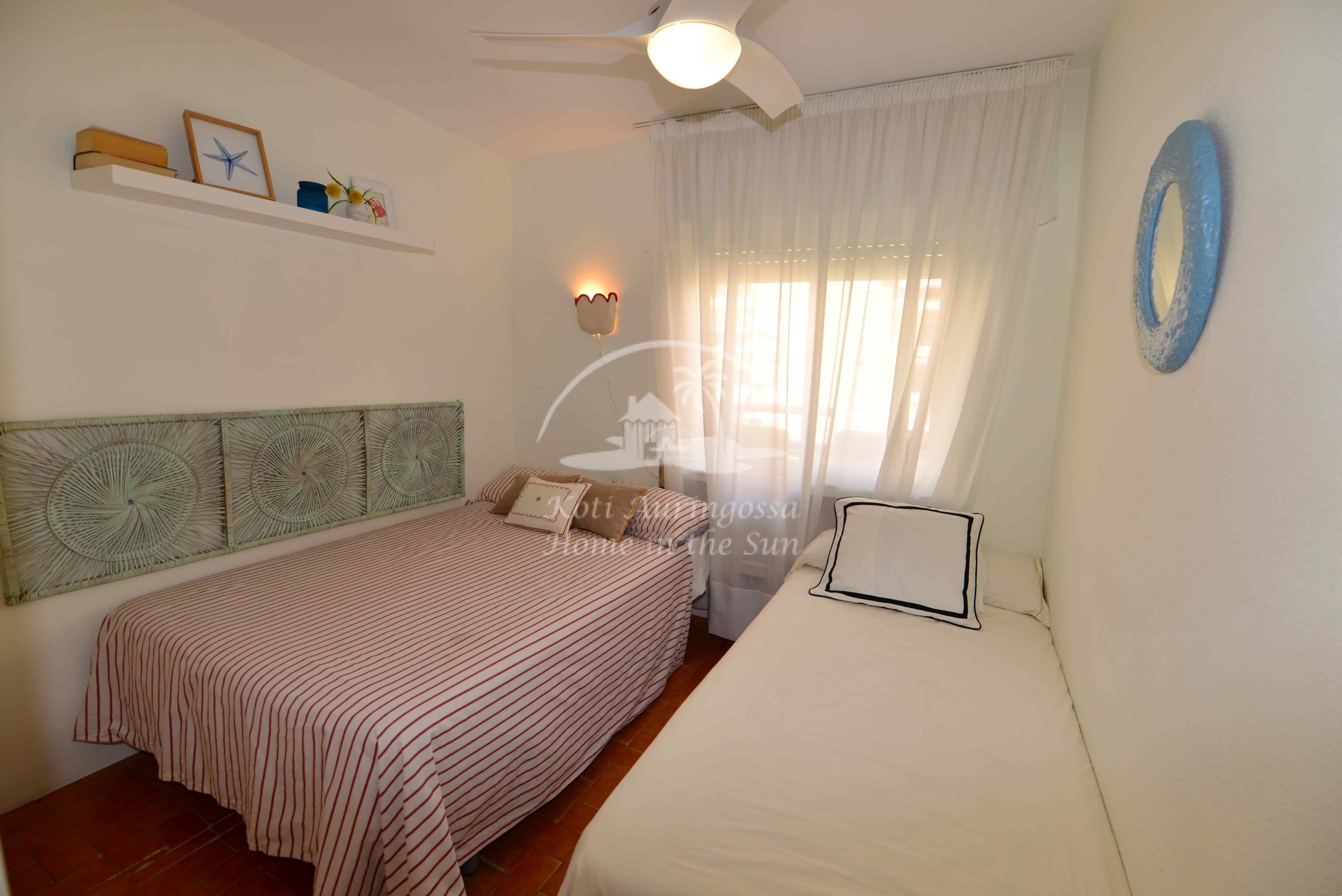 2 makuuhuonetta. 1 kylpyhuone. 1 wc. Olohuoneessa ja olohuoneessa on sähköllä toimivat lämmittimet. Nopea valokuitu wifi internet yhteys valmiina, joka sisältyy vuokraan. Taloyhtiössä on padel peikenttä ja 3 uima-allasta vehreitten nurmikko puutarhojen ympäröiminä. Uima-altaat ovat auki vain kesä kuukausina. Kaikki keskustan palvelut lähellä. Merenrantaan 300 metriä.