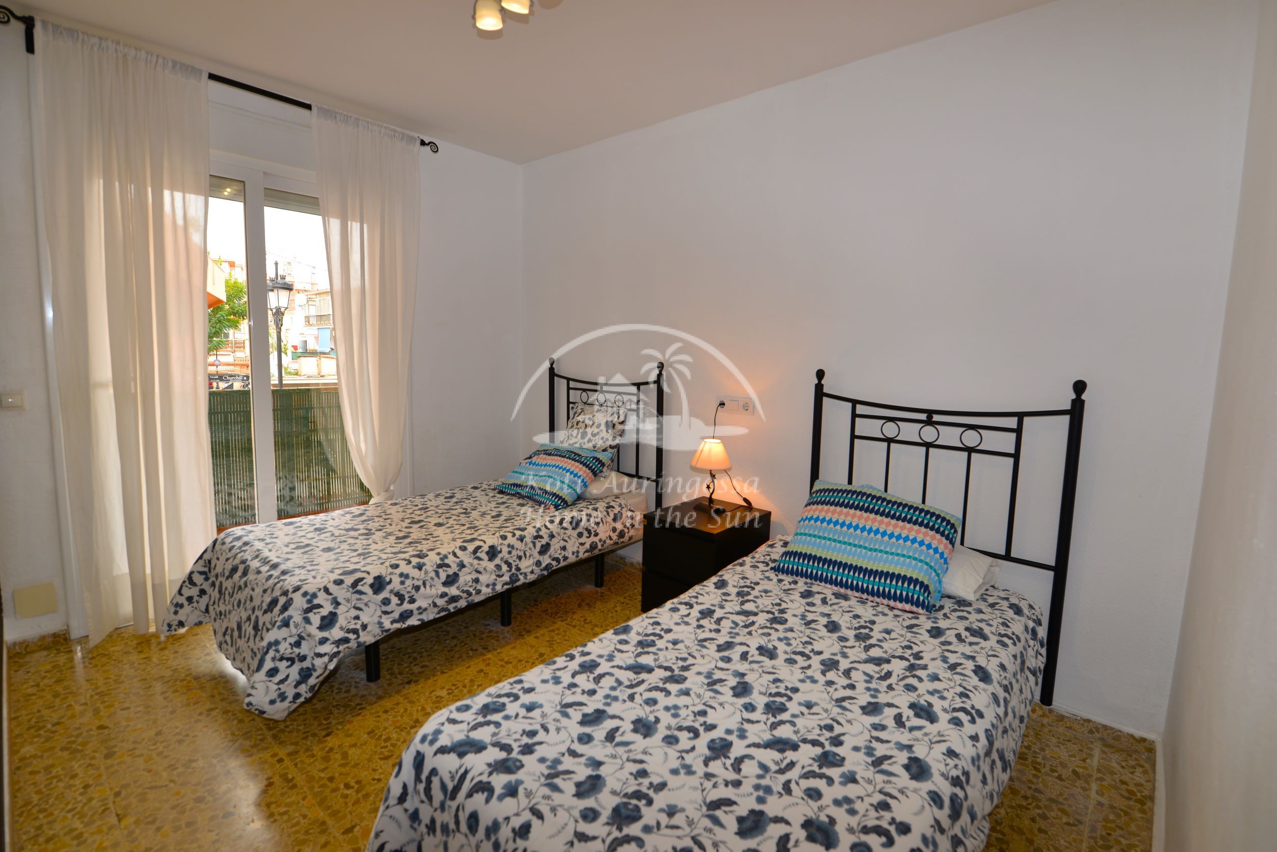 Valoisa tilava asunto Los Bolichesin keskustassa. Avara olohuone ja ruokailutila. Olohuoneesta on käynti suurelle L muotoiselle länsi / pohjoissuuntaiselle aurinkoiselle terassille, joka kiertää asunnon. Erillinen keittiö jossa kaikki toimii sähköllä. Vesi lämpenee kaasulla. 3 makuuhuonetta, kahdesta pohjoiseen päin olevasta makuuhuoneesta on käynti terassille. 2 kylpyhuonetta. Olohuoneessa on ilmastointi lämpöpumppu. Nopea valokuitu wifi internet yhteys valmiina, joka sisältyy vuokraan.