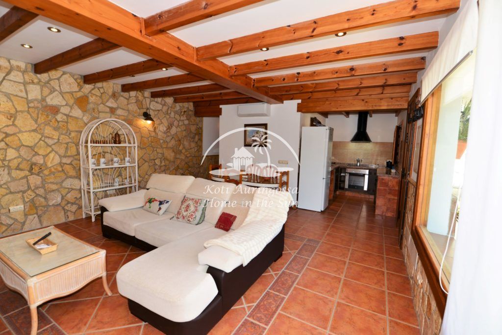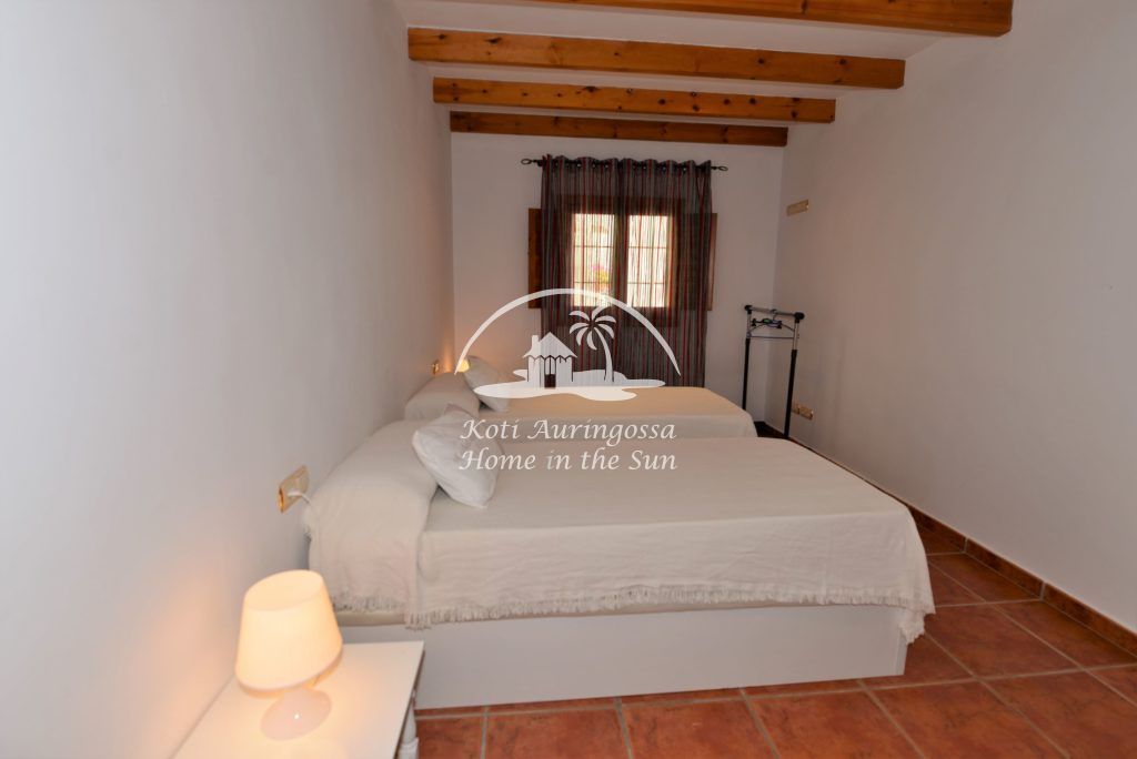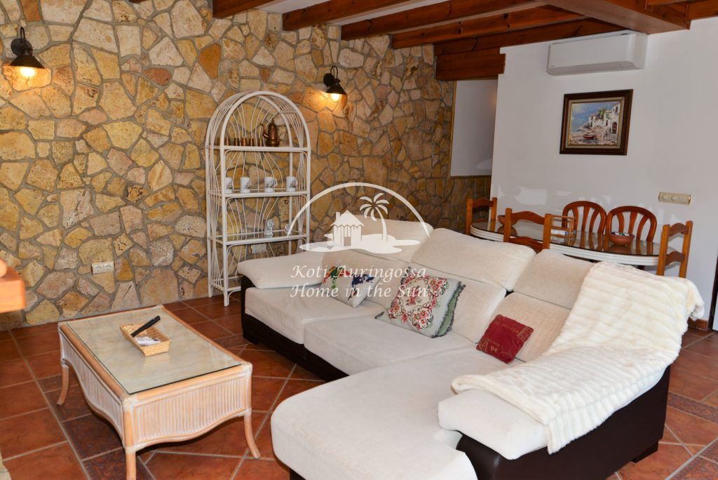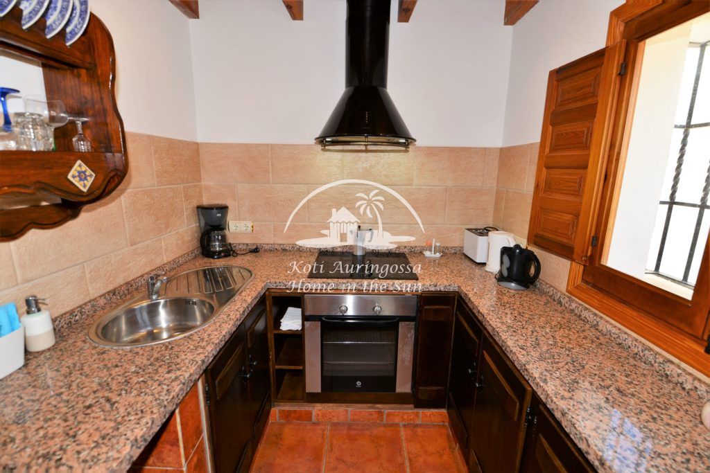 Valoisa olohuone ja ruokailutila takalla. 2 makuuhuonetta. 1 kylpyhuone. Erillinen maalaishenkinen moderni keittiö jossa kaikki toimii sähköllä. Asunnon edessä on suuri aurinkoinen terassi.