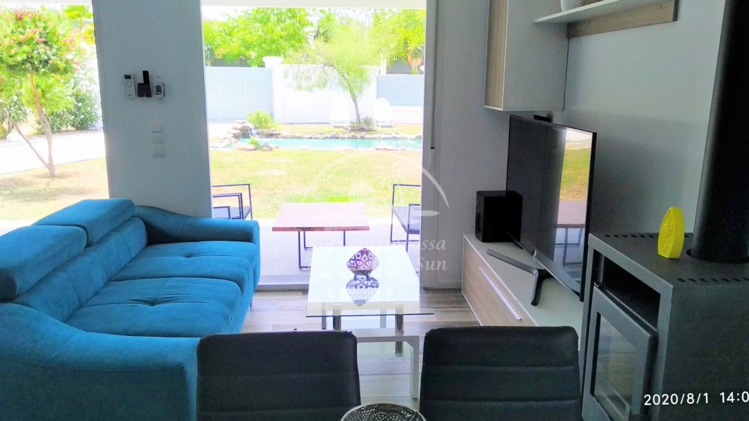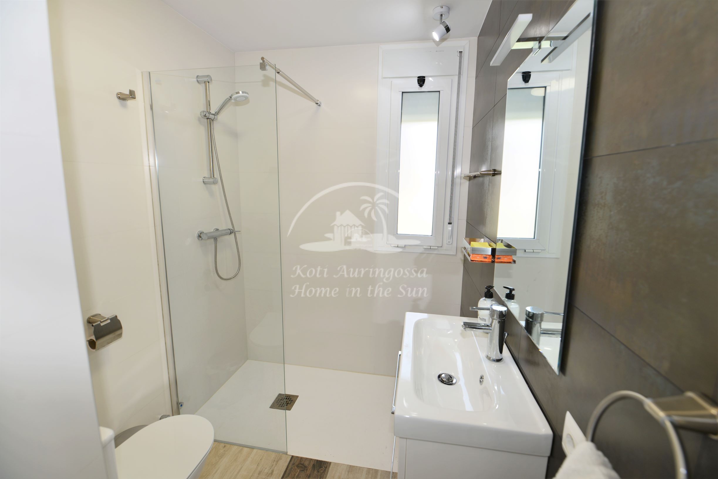 2 makuuhuonetta, 1 kylpyhuone reilun kokoisella suihkulla. Kylpyhuoneen päällä on parvi, jota voi käyttää kolmantena makuuhuoneena. Sinne tosin on hiukan vaikea kiivetä. Olohuoneessa on ilmastointi lämpöpumppu. Nopea valokuitu wifi internet yhteys valmiina, joka sisältyy vuokraan. Talon sisäänkäynnin yhteydessä on suuri katettu terassi, josta kivat näkymät luontoon ja uima-altaalle. Uima-altaassa on hauska kivipohja, niin kuin järvessä. Kiva muurattu grillauspiste. Reilusti paikoitustilaa talon sivulla olevalla paikoitusalueella.