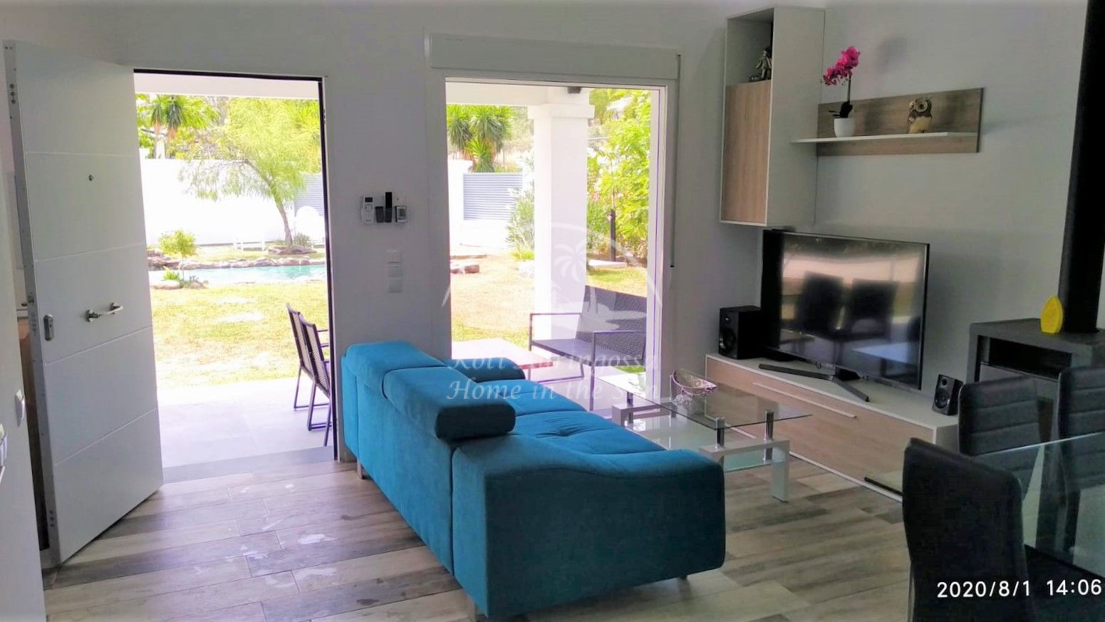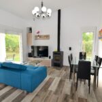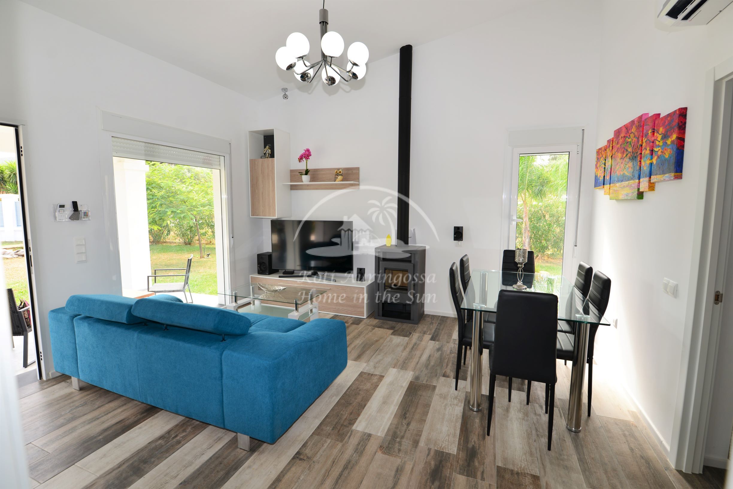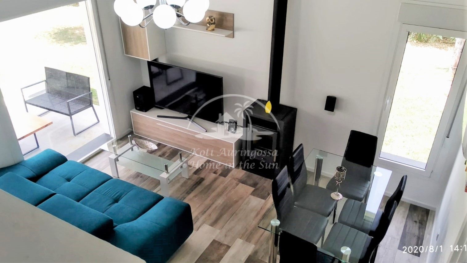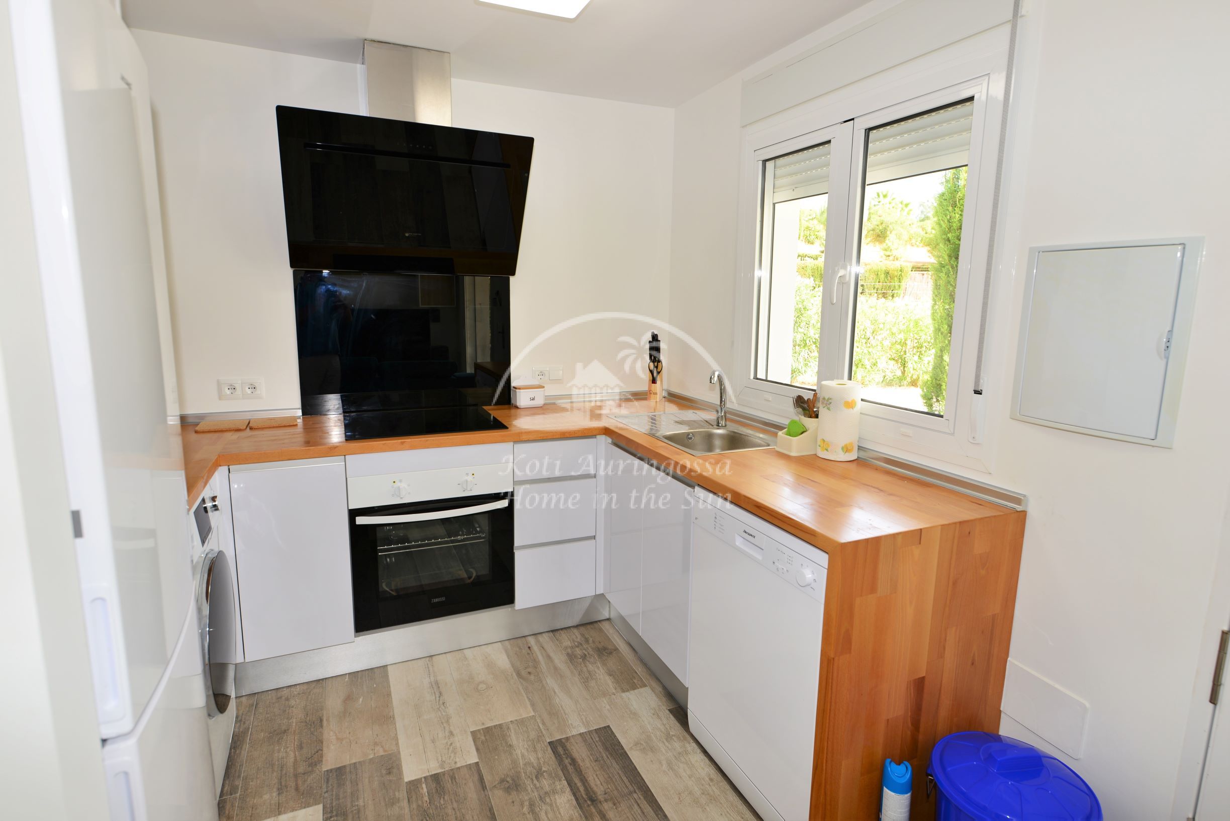 Talo sijaitsee rauhallisessa maalaismiljöössä, keskellä suurta vehreää tonttia, joka on kokonaan aidattu. Valoisa olohuone ja ruokailutila takalla. Moderni keittiö, jossa astianpesukone ja hyvä integroitu uuni.