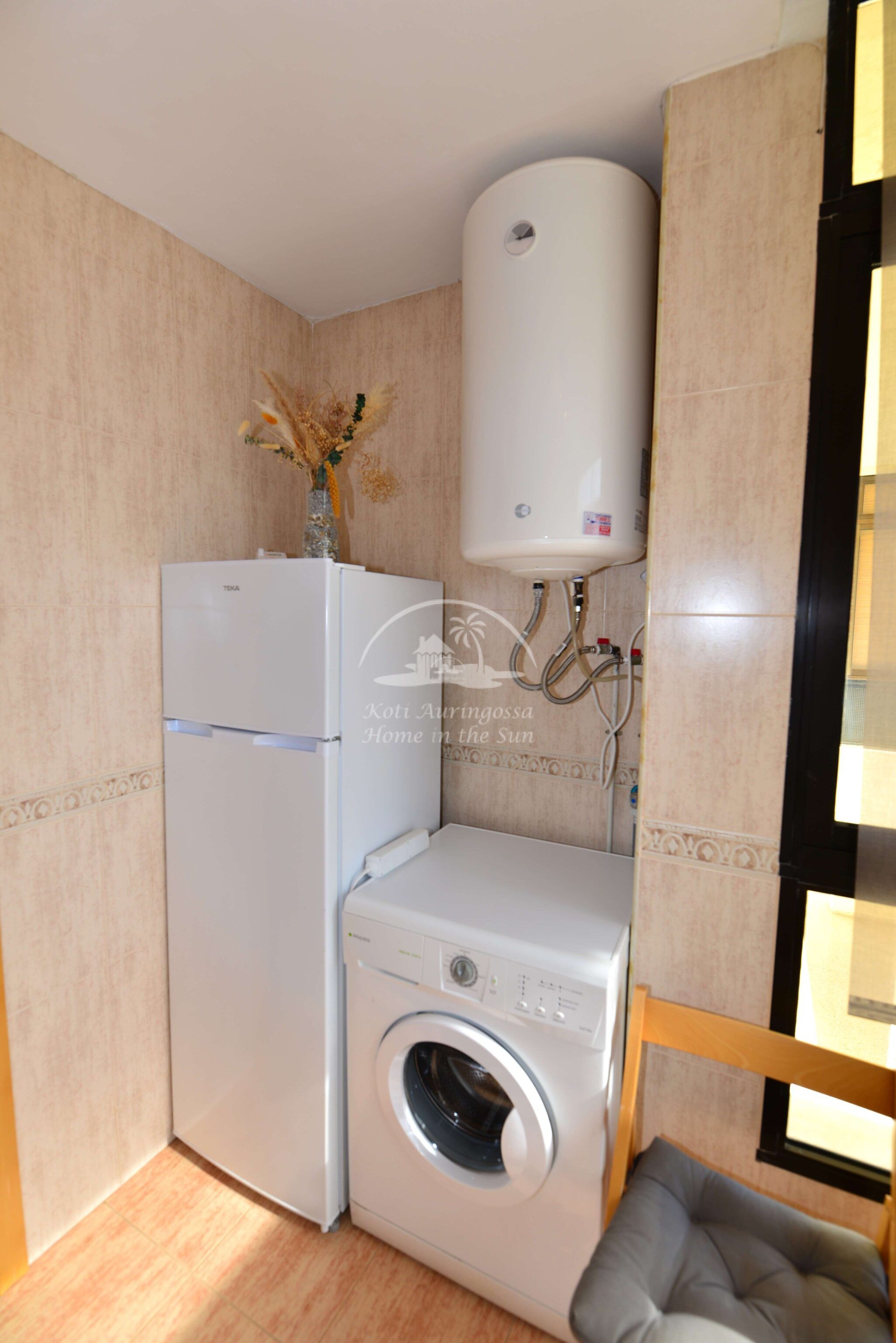 Asunto on kodikkaasti kalustettu ja sisustettu. Valoisa olohuone ja ruokailutila. Olohuoneesta on käynti itään päin olevalle aamu aurinkoiselle terassille. Terassilta on kauniit avarat näkymät merelle ja taloyhtiön uima-allas alueelle. Avokeittiö, jossa kaikki toimii sähköllä. 1 makuuhuone. 1 kylpyhuone. Ilmastointi lämpöpumppu. Nopea valokuitu wifi internet yhteys valmiina. Taloyhtiön uima-allas on auki ja käytettävissä ympäri vuoden. Parkkipaikkoja taloyhtiön suljetulla paikoitus alueella.