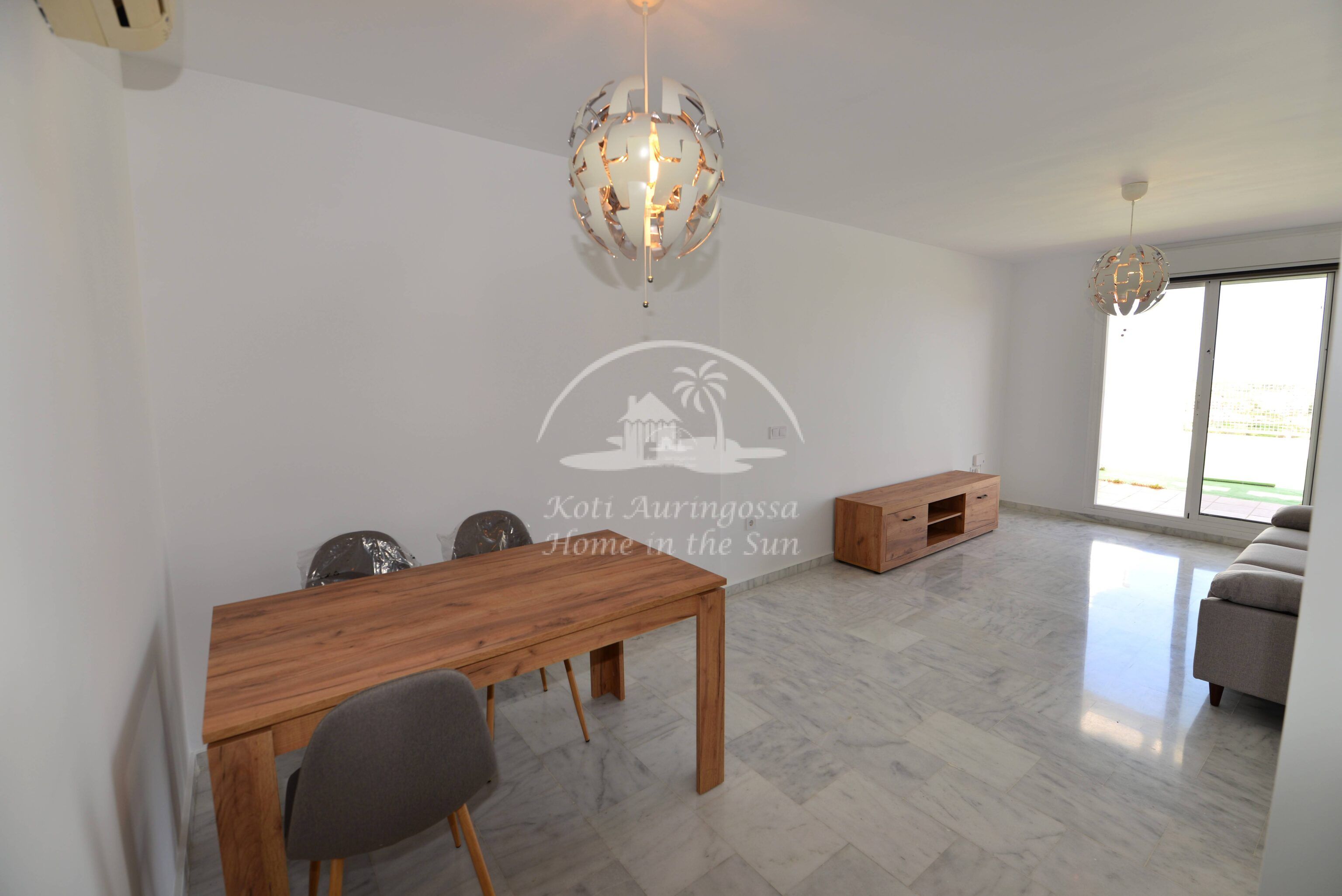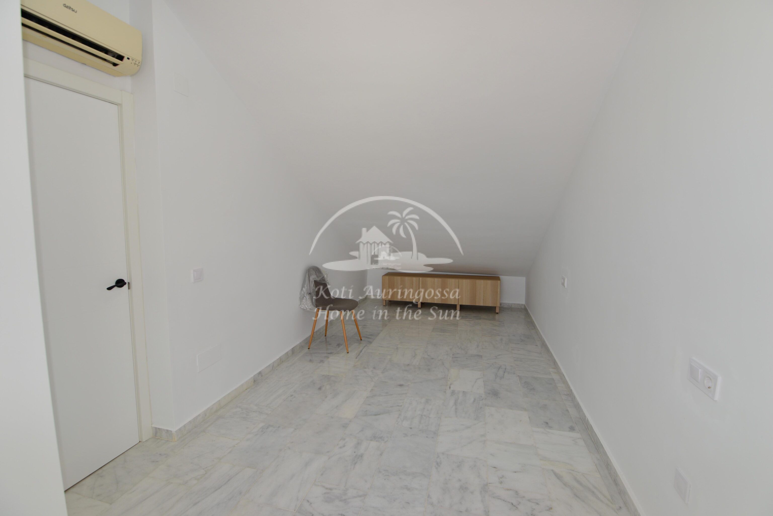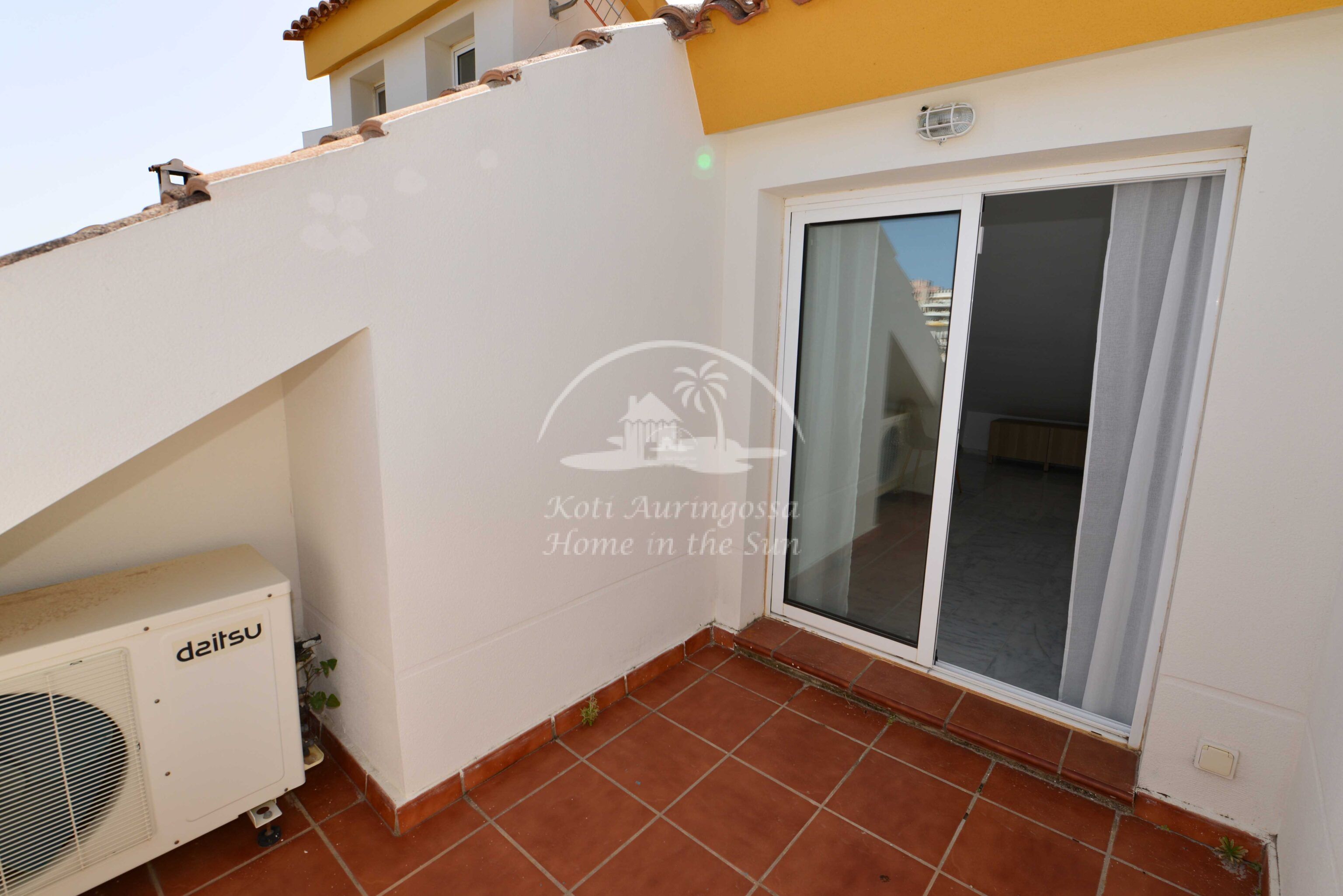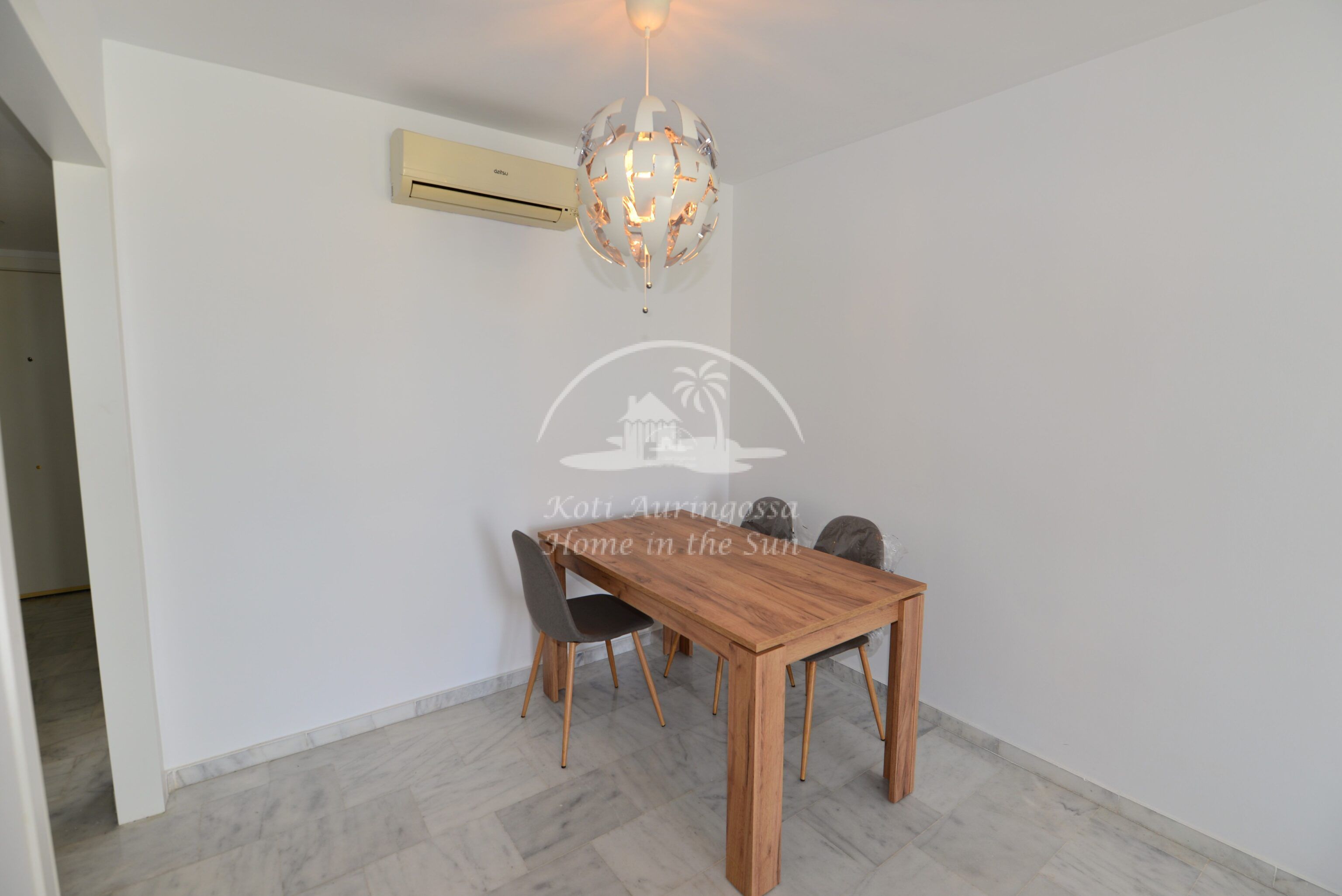 Tämä kolme kerroksinen valoisa paritalo, on osittain kalustettu. Omistaja kalustaa sen vuokralaisen toiveitten ja tarpeen mukaan. Sisään tulon yhteydessä on kiva pikku puutarha, jossa mandariini ja viikuna puut. Keskikerroksessa on avara valoisa olohuone ja ruokailutila. Olohuoneesta on käynti aurinkoiselle etelään päin olevalle terassille. Terassilla on kiva pieni allas. Erillinen tilava keittiö.