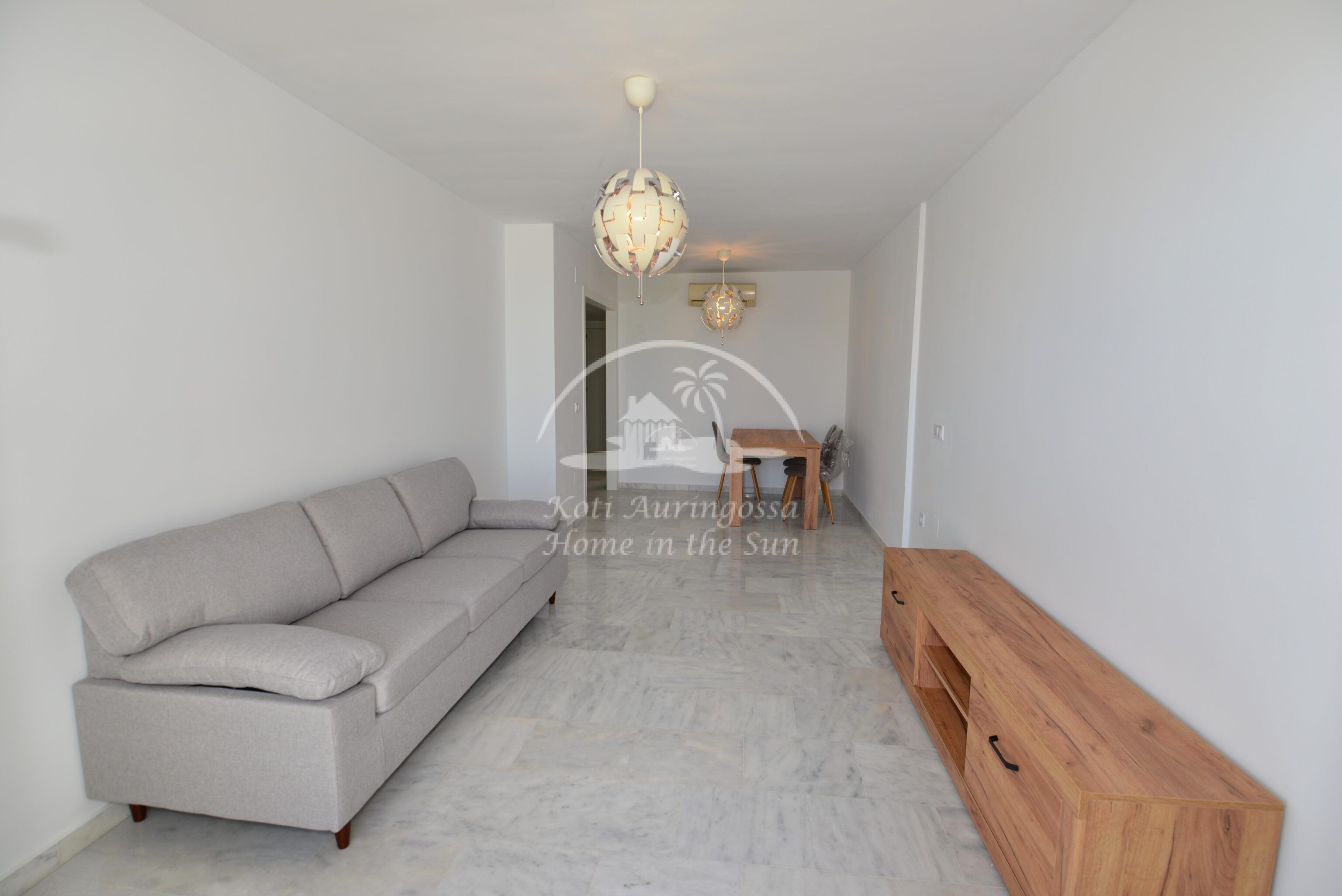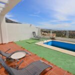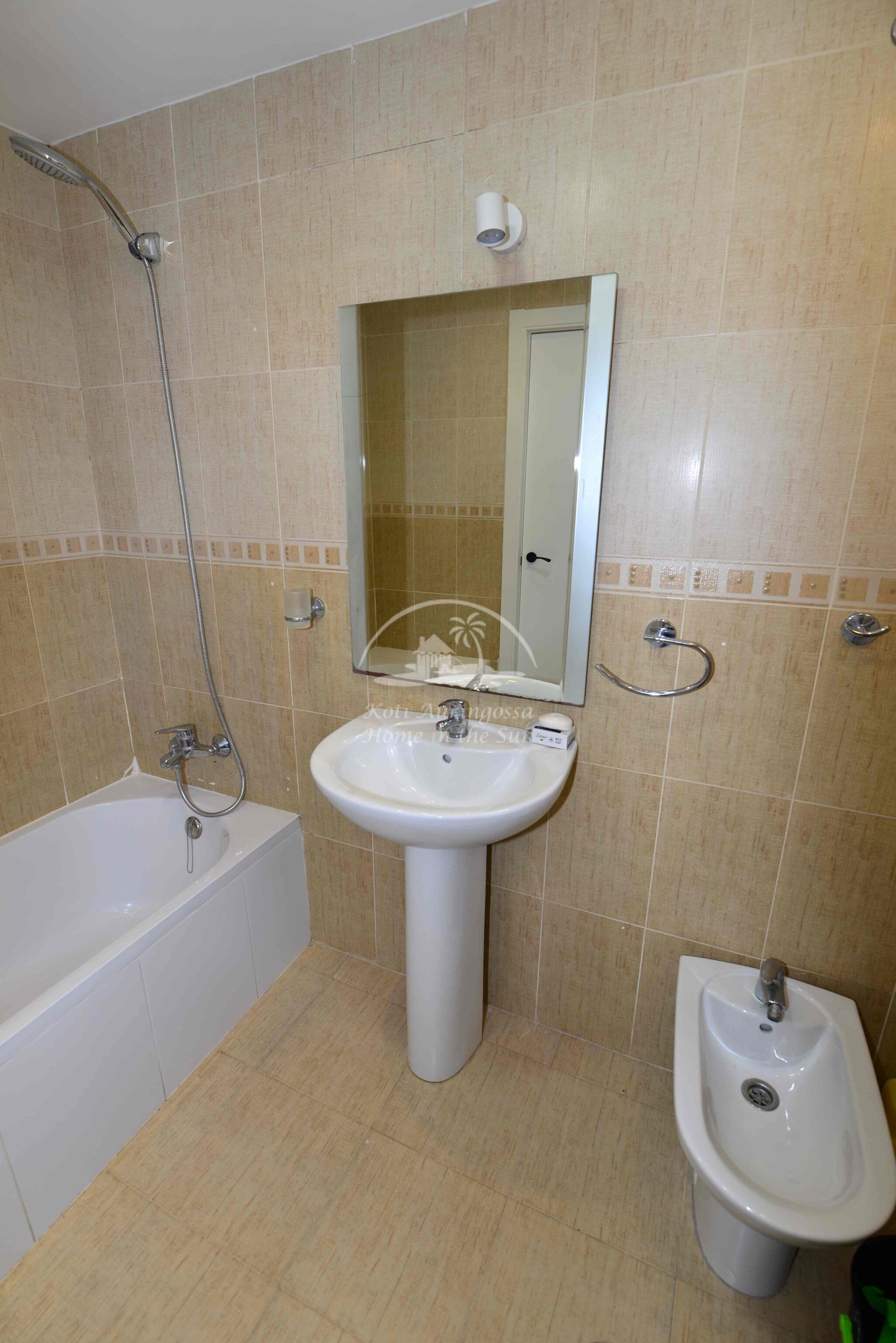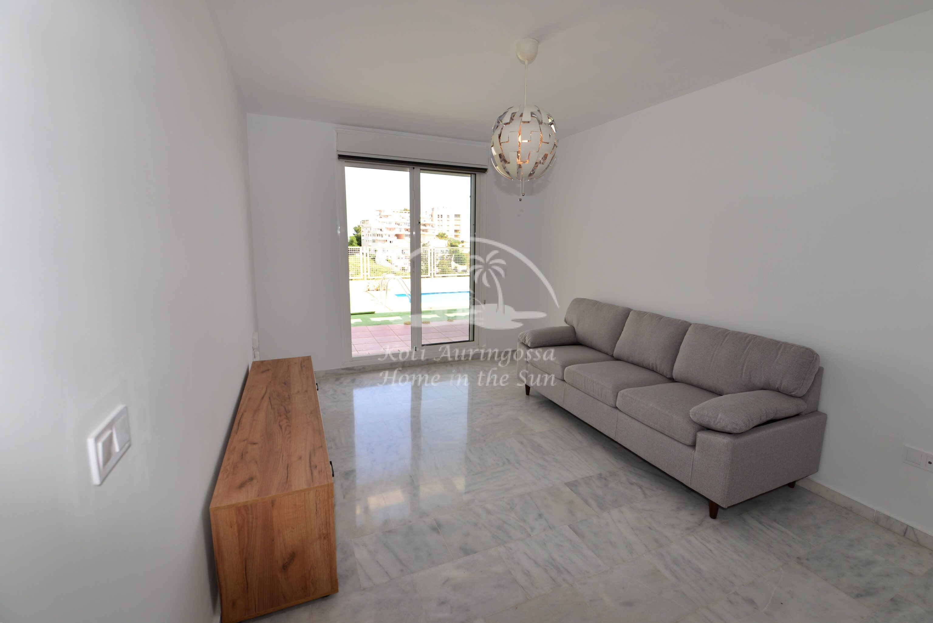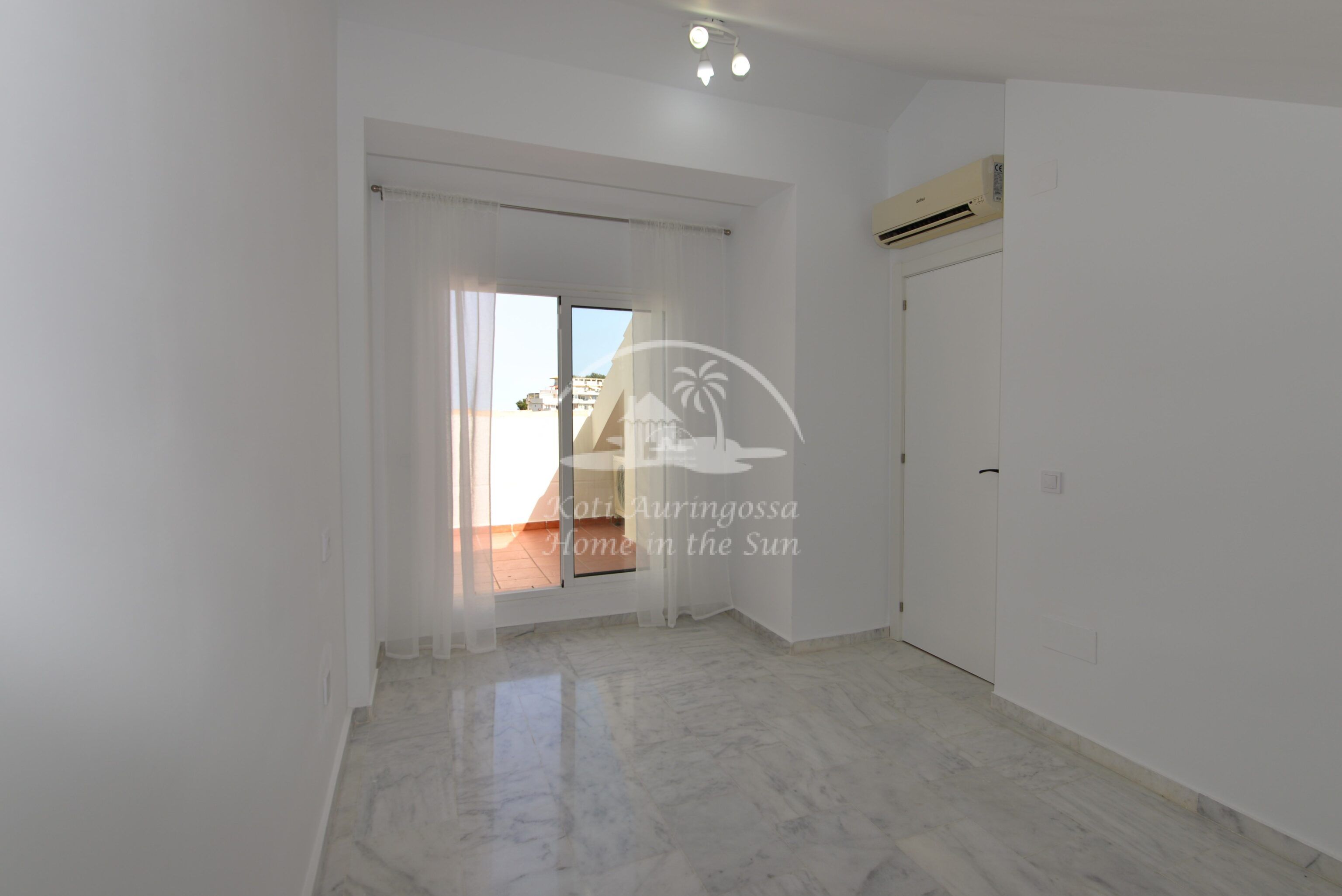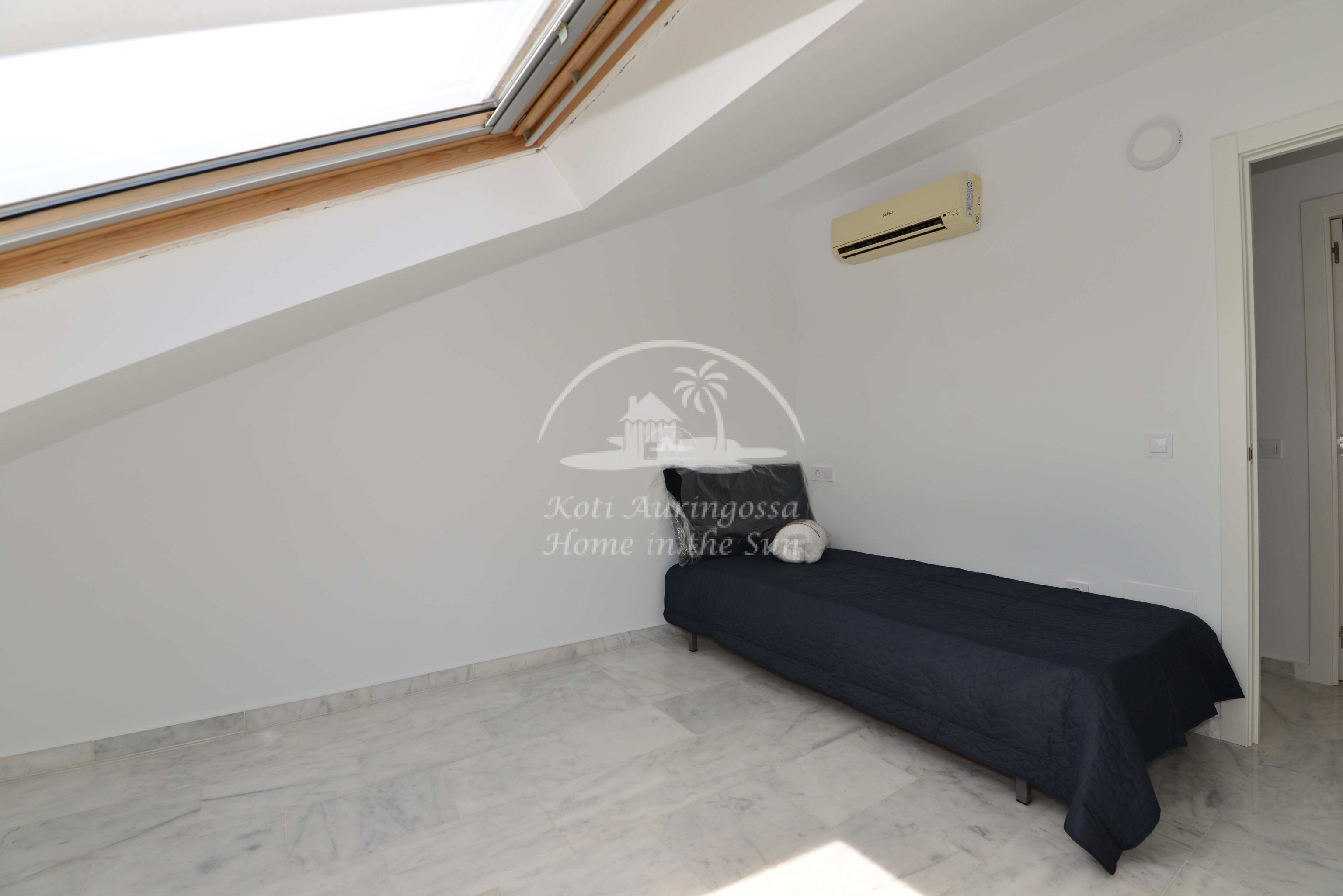 Tämä kolme kerroksinen valoisa paritalo, on osittain kalustettu. Omistaja kalustaa sen vuokralaisen toiveitten ja tarpeen mukaan. Sisään tulon yhteydessä on kiva pikku puutarha, jossa mandariini ja viikuna puut. Keskikerroksessa on avara valoisa olohuone ja ruokailutila. Olohuoneesta on käynti aurinkoiselle etelään päin olevalle terassille. Terassilla on kiva pieni allas. Erillinen tilava keittiö.