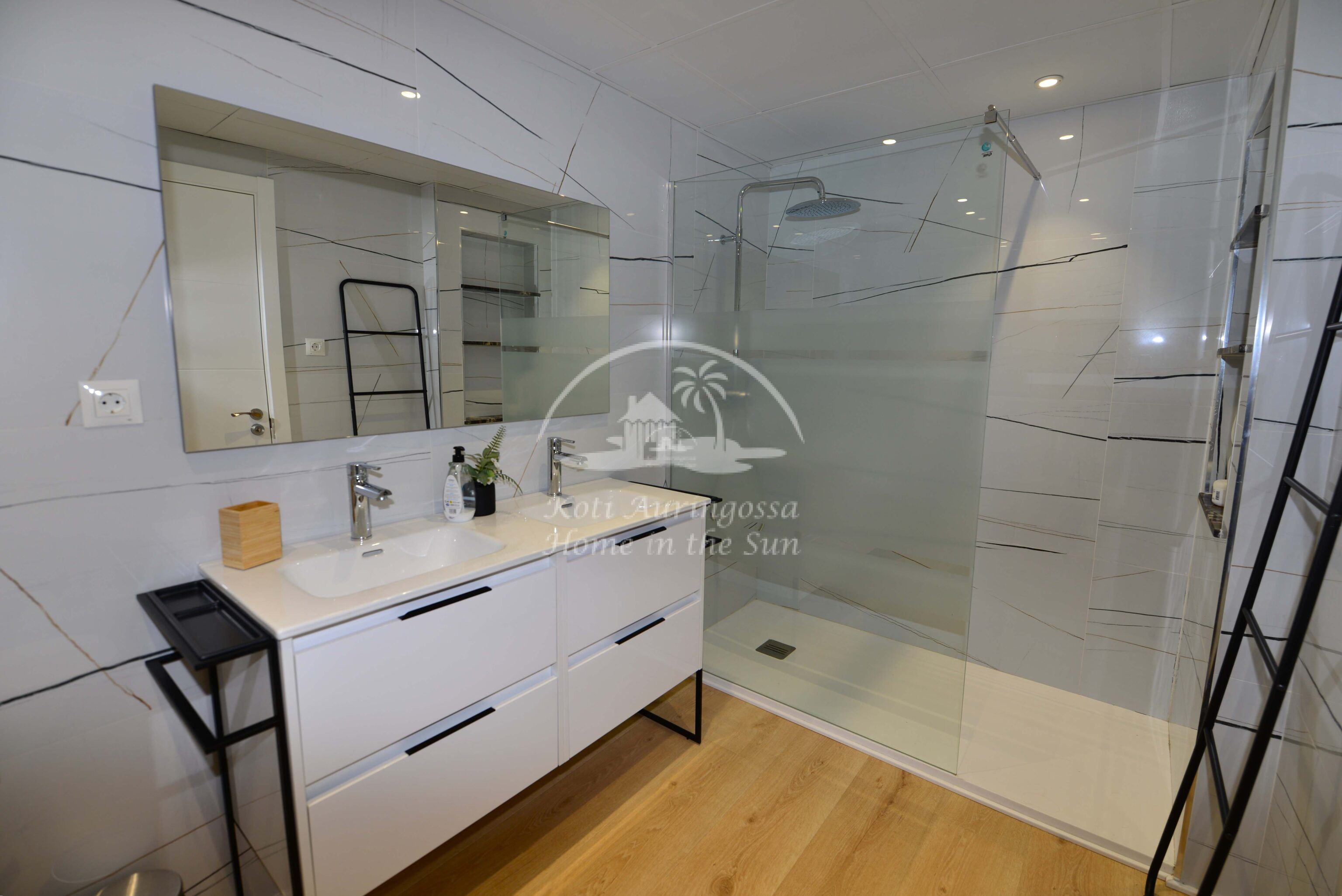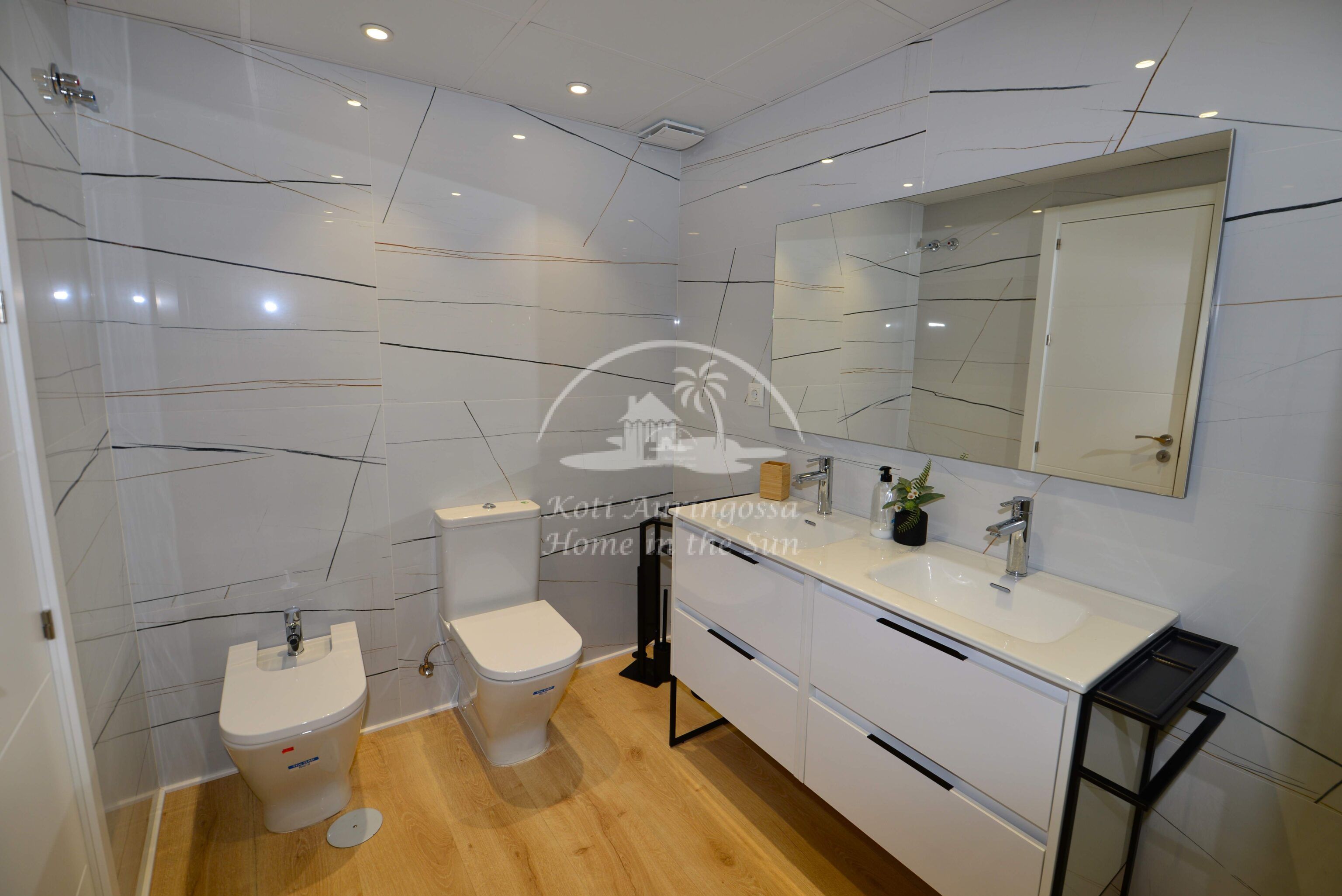 2 kylpyhuonetta. Ilmastointi lämpöpumppu kaikissa kolmessa makuuhuoneessa ja olohuoneessa.