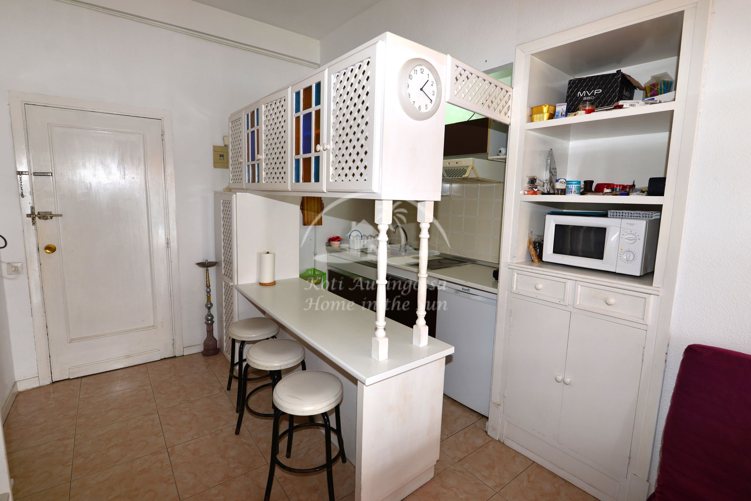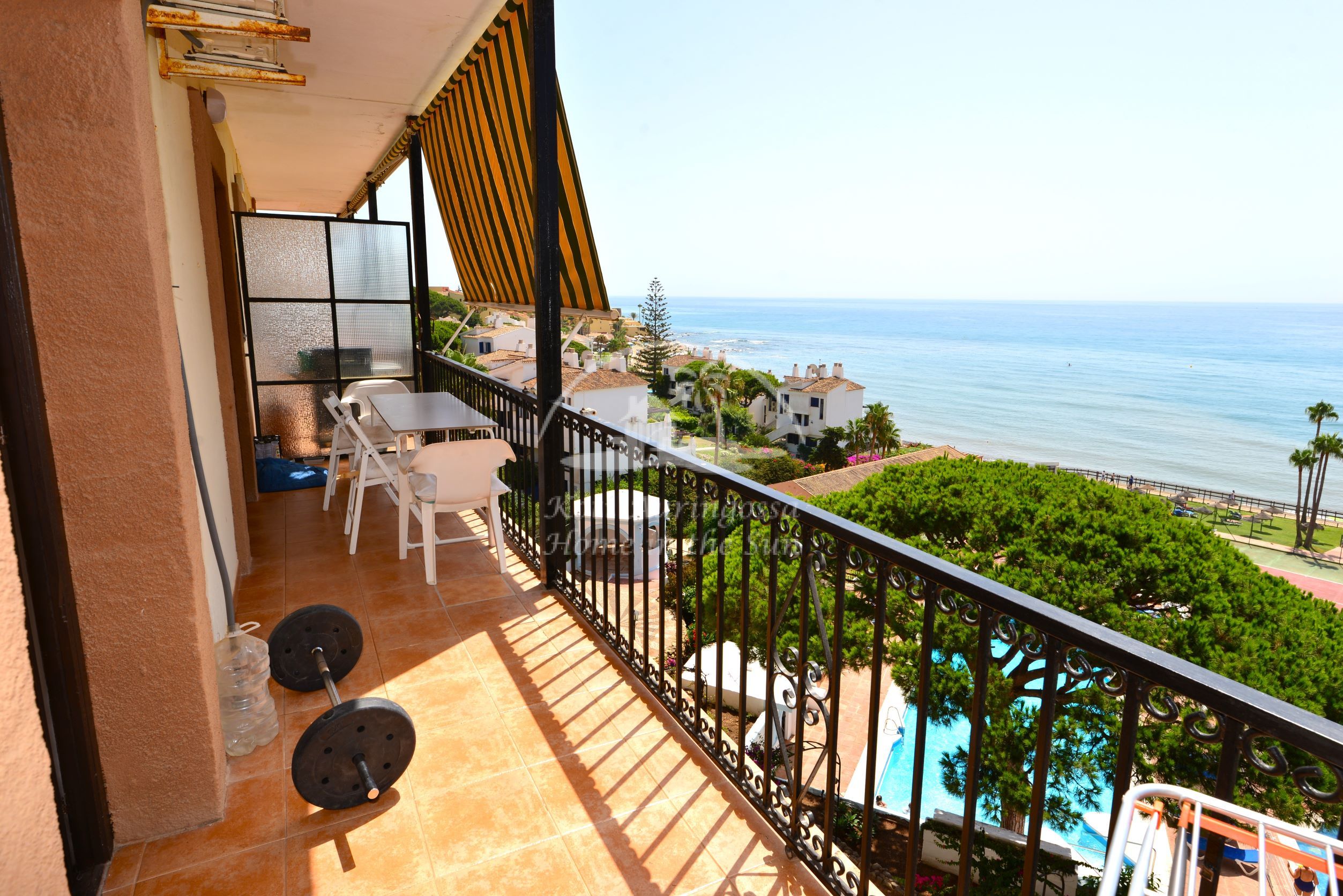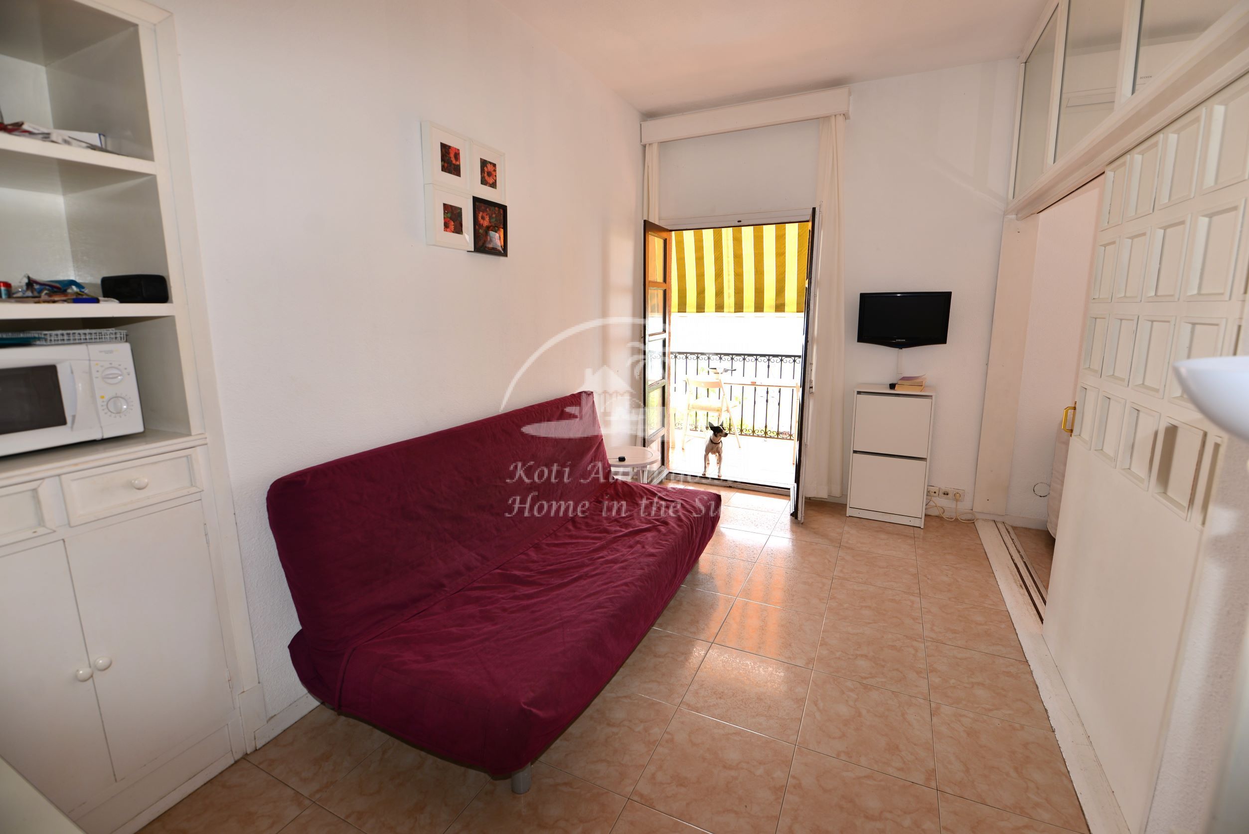 Valoisa olohuone, jossa vuodesohva. Olohuoneesta ja makuuhuoneesta on käynti etelään päin olevalle aamu aurinkoiselle terassille. Terassilta on harvinaisen kauniit näkymät merelle ja taloyhtiön uima-altaalle. Avokeittiö, jossa kaikki toimii sähköllä. 1 makuuhuone. 1 kylpyhuone. Taloyhtiössä on suuri aikuisten uima-allas ja pienempi lasten allas. Uima-altaat on auki ympäri vuoden. 2 tenniskenttää sekä kuntosali ja biljardihuone. Upeat oleskelutilat taloyhtiön alakerrassa. Aivan meren äärellä on kiva pikku ruokaravintola. Jonka edessä kulkee yli 6km pitkä kävelytie pitkin rantaa. Taloyhtiön alakerrassa on baari, jolla suuri aurinkoinen terassi. Kaunis vehreä puutarha, jossa vesiputouksia. Parkkipaikkoja taloyhtiön suljetulla paikoitus alueella. Bussipysäkit taloyhtiön vieressä. Ja vastapäätä tien toisella puolella on Calahondan ostoskekus josta läytyy kaikki palvelut.