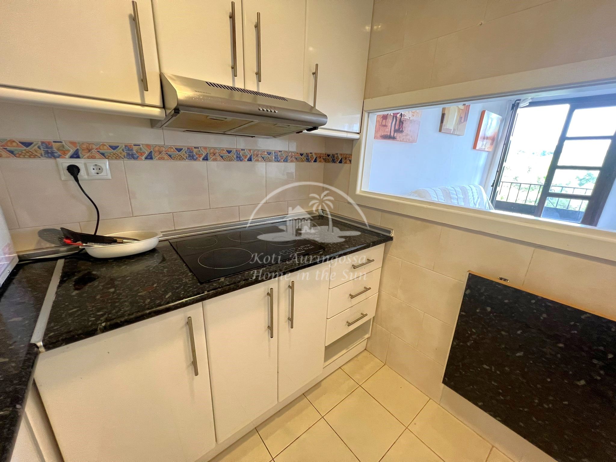 1 makuuhuone. 1 kylpyhuone. Ilmastointi lämpöpumppu olohuoneessa. Makuuhuoneessa on sähköllä toimiva lämmitin. Nopea valokuitu wifi internet yhteys valmiina. Taloyhtiössä on runsaasti paikotus tilaa autoille. Ympäri vuoden auki oleva aikuisten ja lasten uima-allas ja 2 tenniskenttää. Ihastuttava rauhallinen asuinpaikka. Calahondan ostoskeskus suoraan vastapäätä, tien toisella puolella. Osoite: Carretera de Cadiz km 197. Edif. Mansion Alhamar. 3 krs. Calahonda.