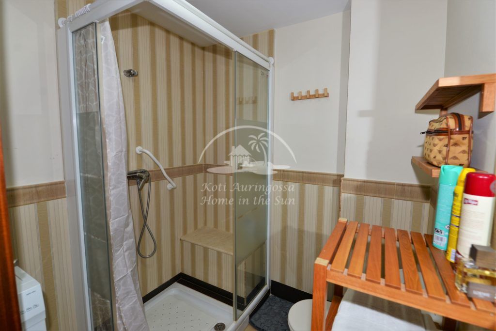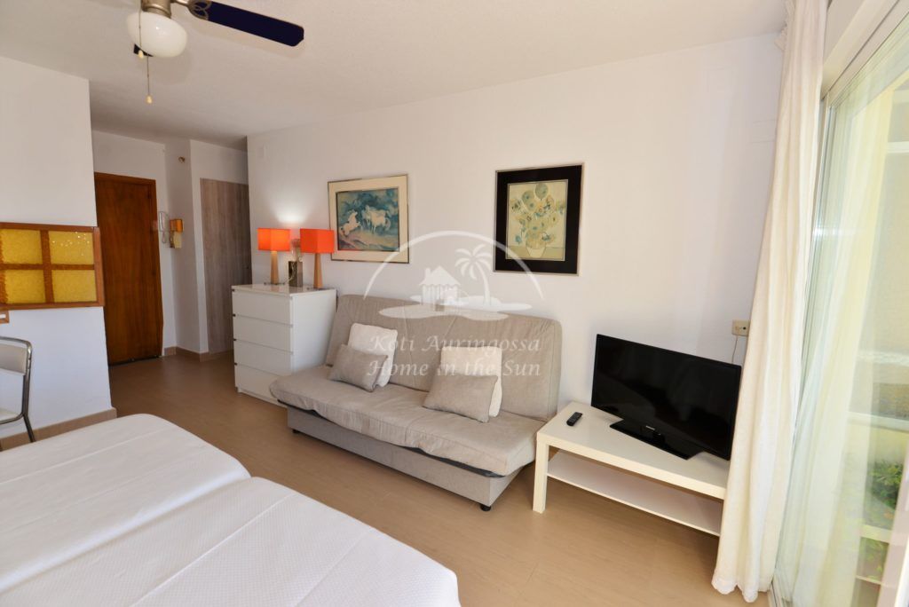 Asunto on kauniisti kalustettu ja sisustettu, kevein vaalein värein. Valoisa olohuone / makuuhuone jonka yhteydessä ruokailutila. Olohuoneesta on käynti aurinkoiselle länteen päin olevalle terassille. Terassilta on hienot näkymät taloyhtiön uima-altaalle sekä merelle. Amerikkalainen keittiö. 1 kylpyhuone suihkulla. Asunnossa on wifi internet yhteys. Olohuoneessa ilmastointi lämpöpumppu. Taloyhtiössä on valtavan kokoinen uima-allas, kauniin vehreän nurmikko puutarhan ympäröimänä.