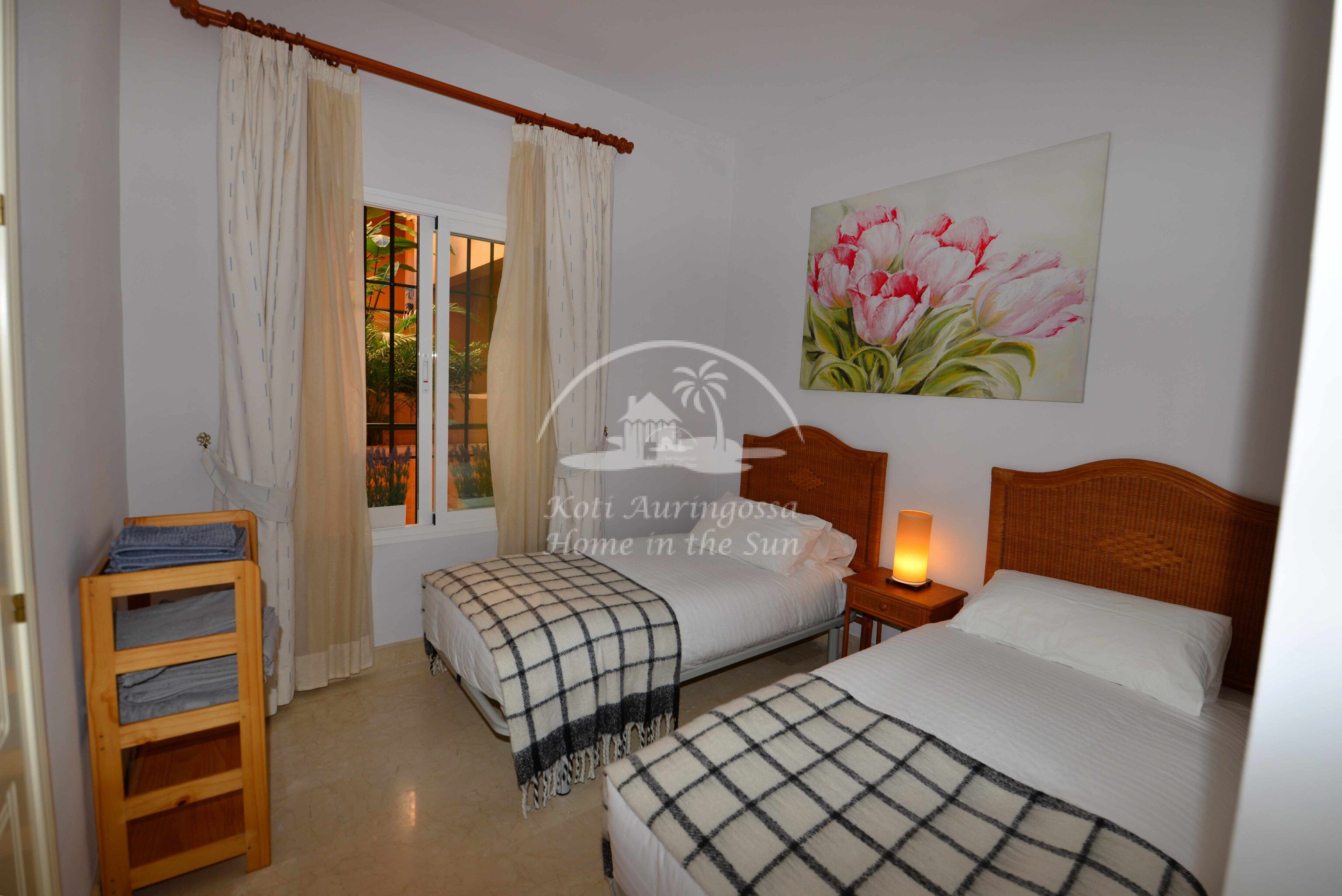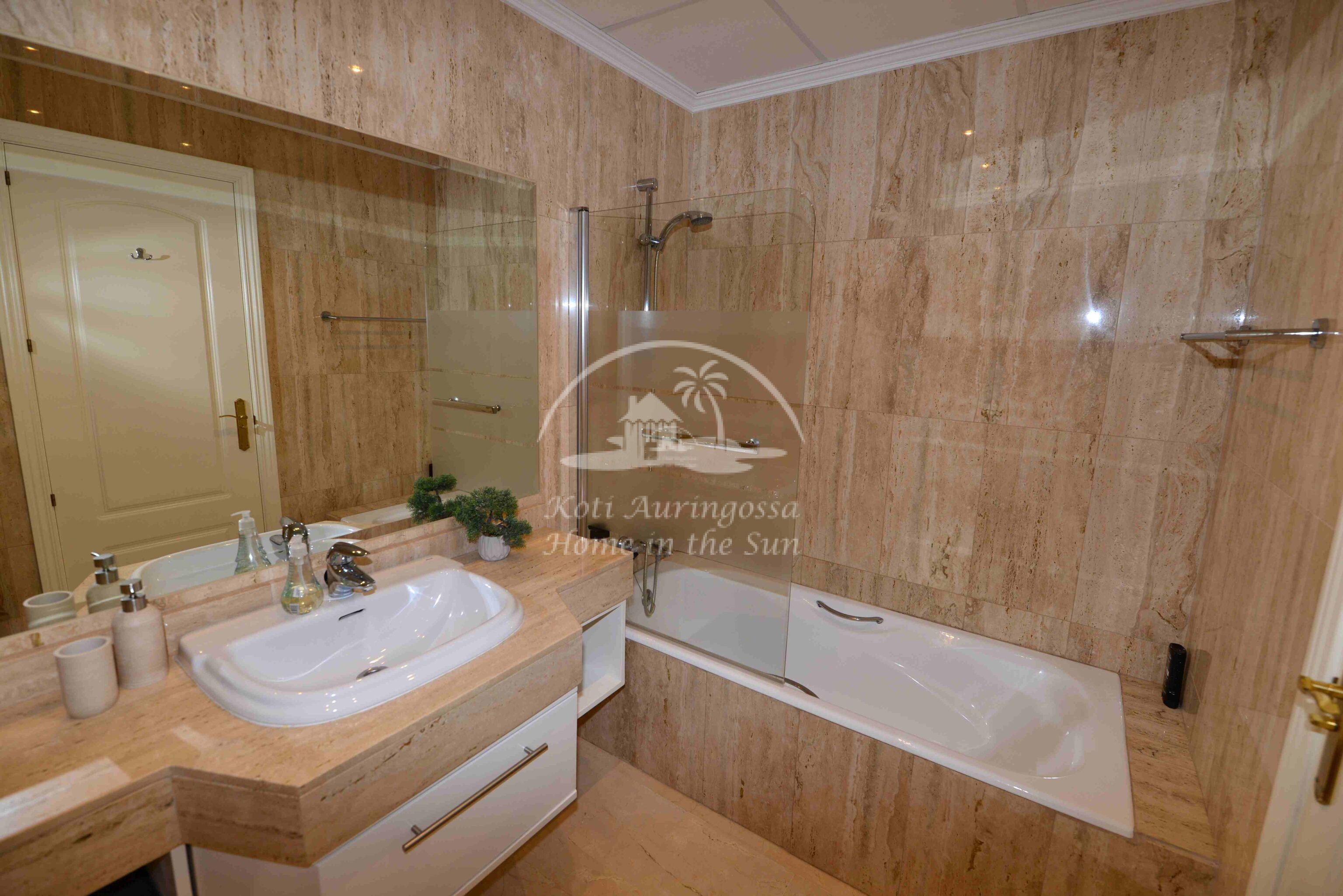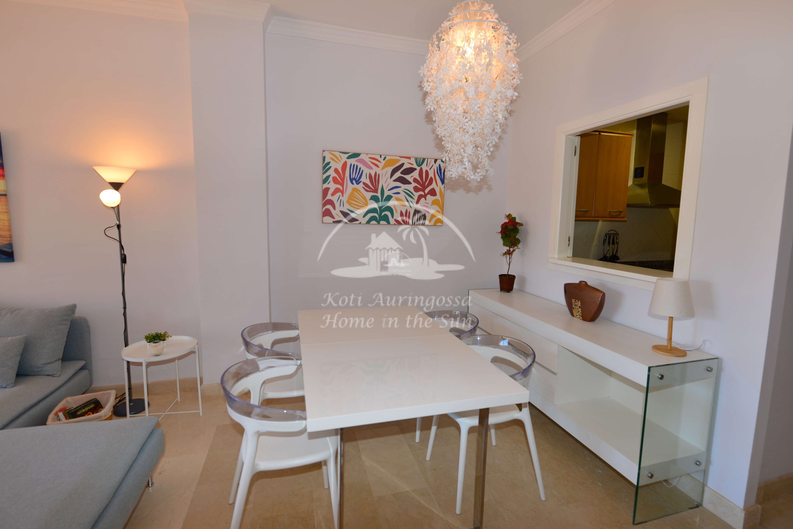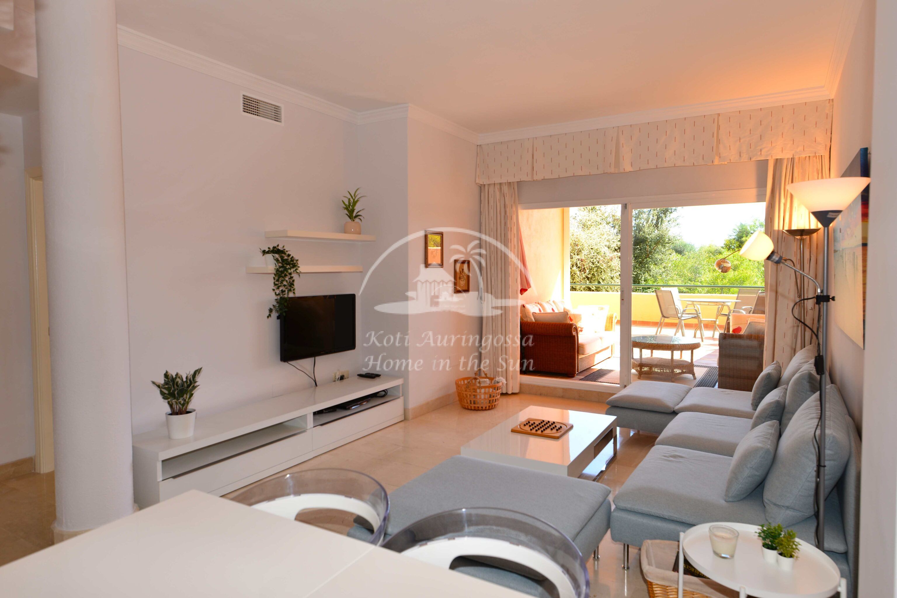 Avara laadukas asunto santa Maria Golf kentän vieressä. Asunto on kodikkaasti kalustettu ja sisustettu, siinä on kodin tuntua heti ensi näkemällä. Valoisa olohuone ja ruokailutila. Olohuoneesta ja päämakuuhuoneesta on käynti etelään päin olevalle aurinkoiselle todella suurelle terassille. Terassilta on kivat avarat näkymät vehreään ympäristöön. Erillinen keittiö, jossa on myös astianpesukone.