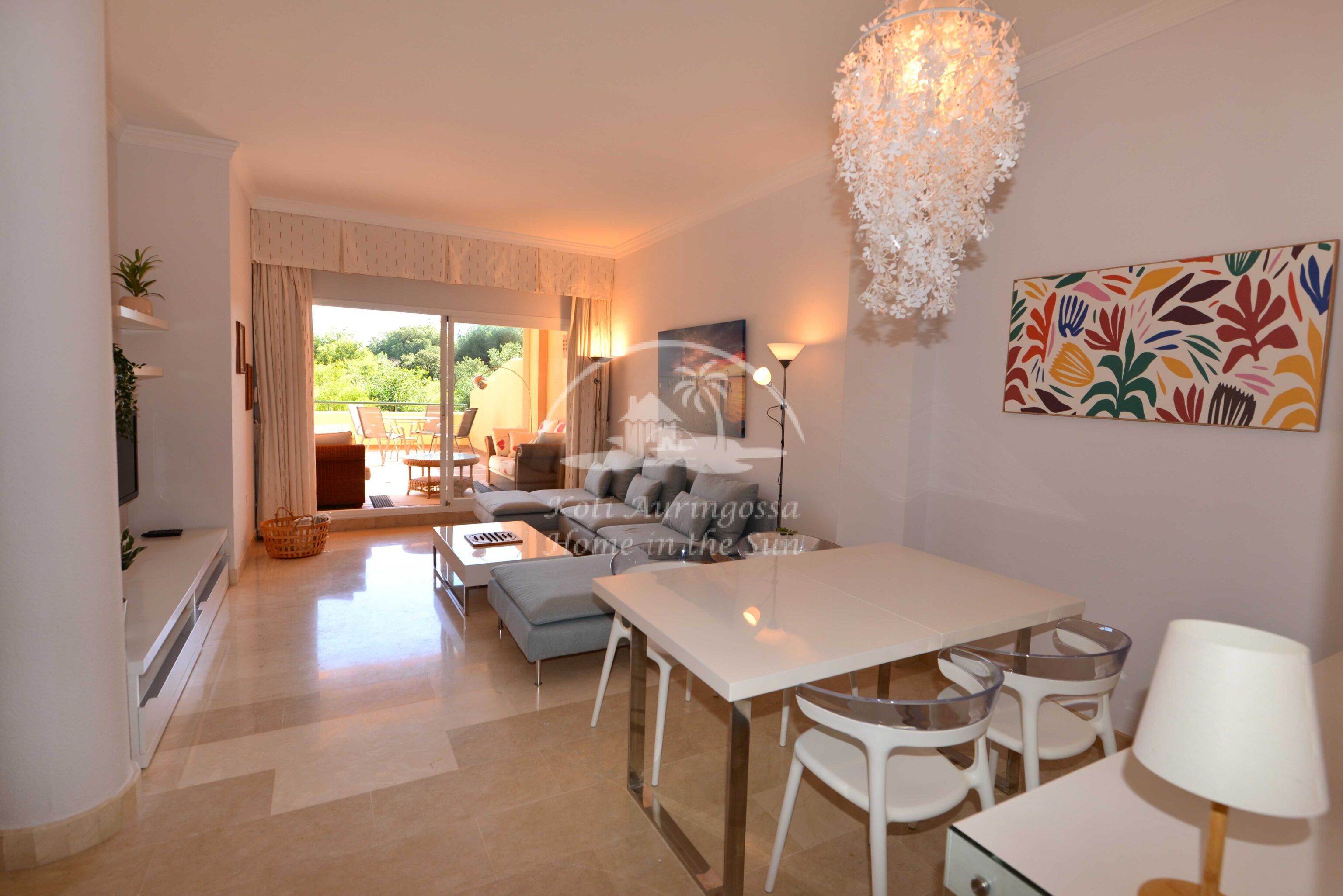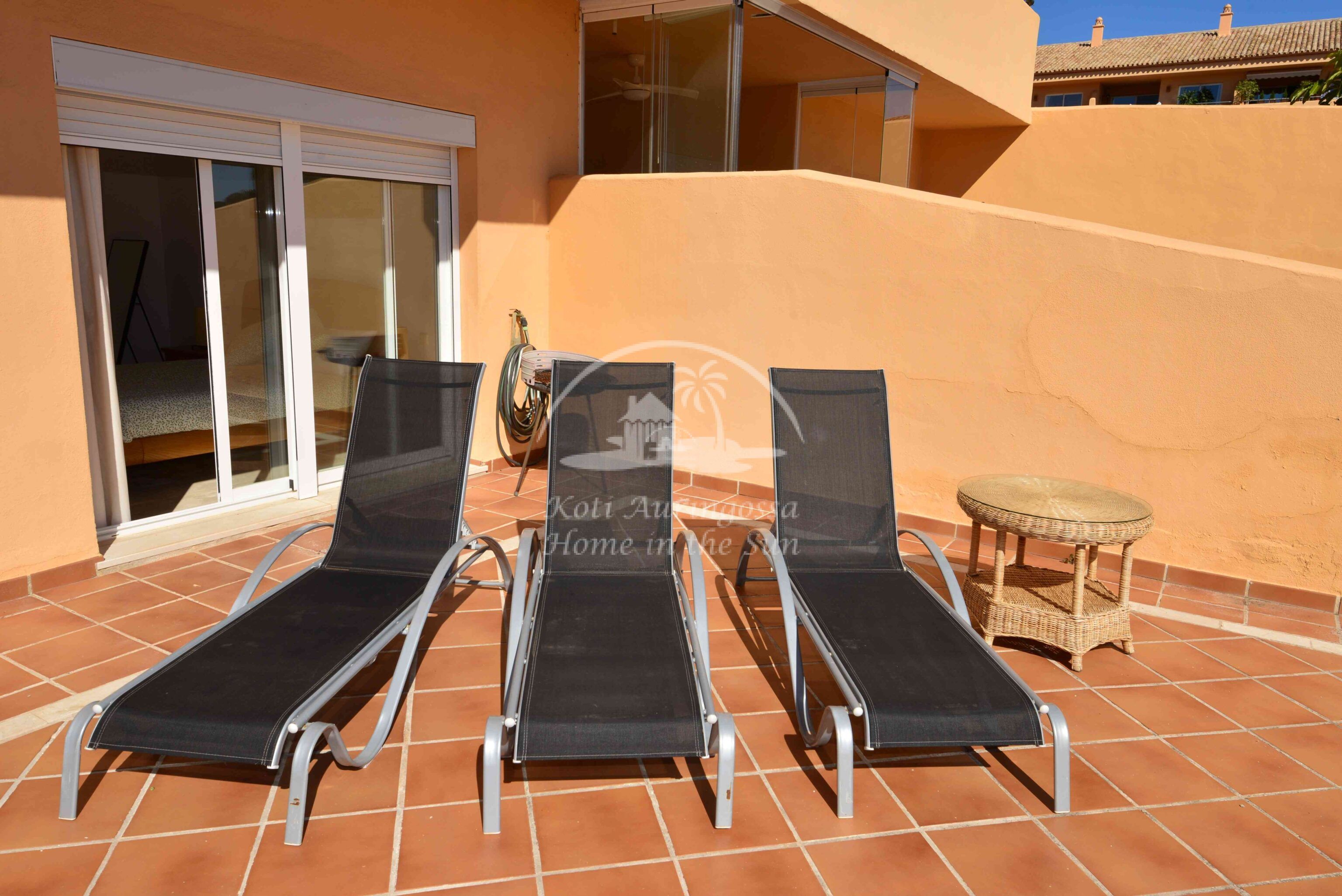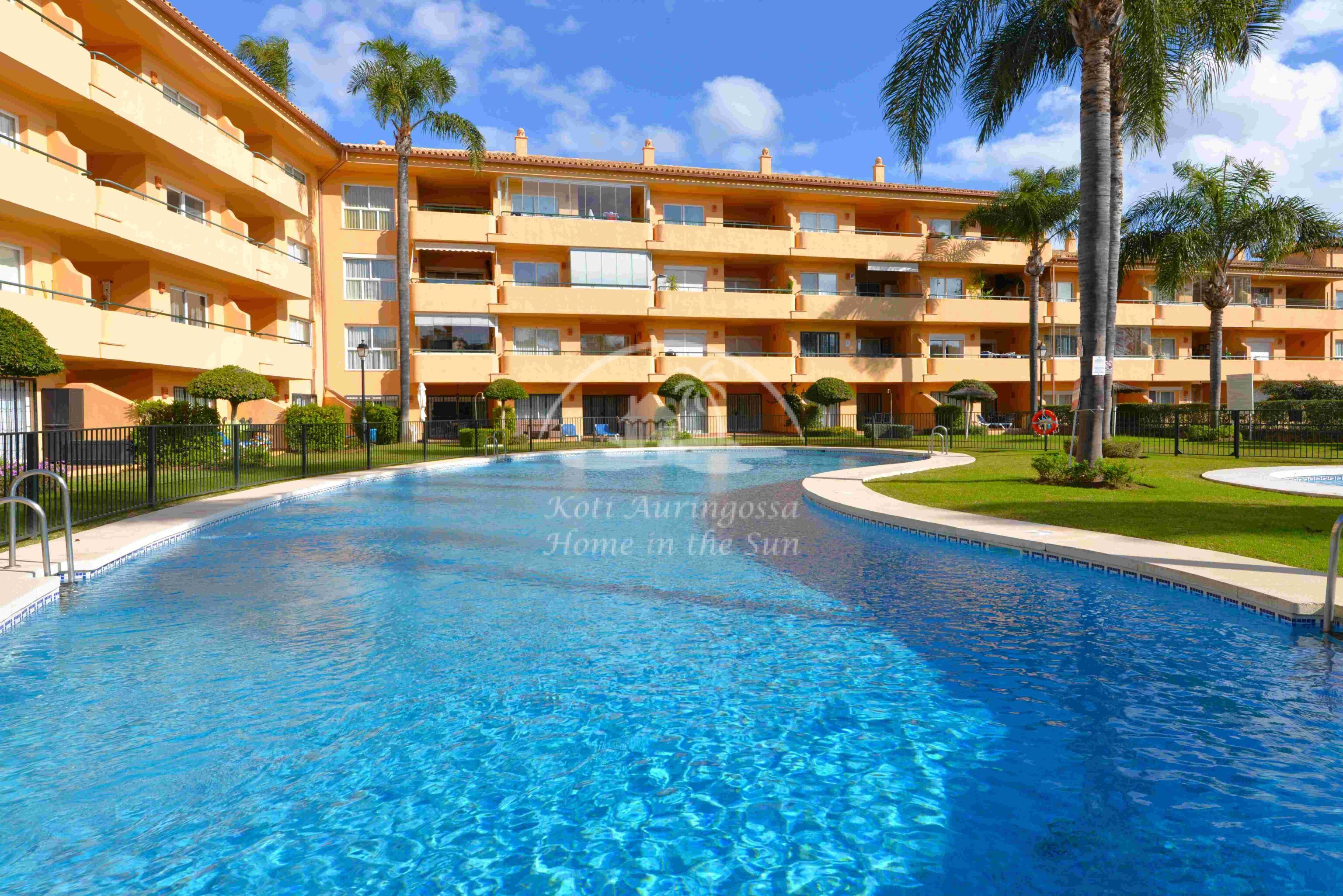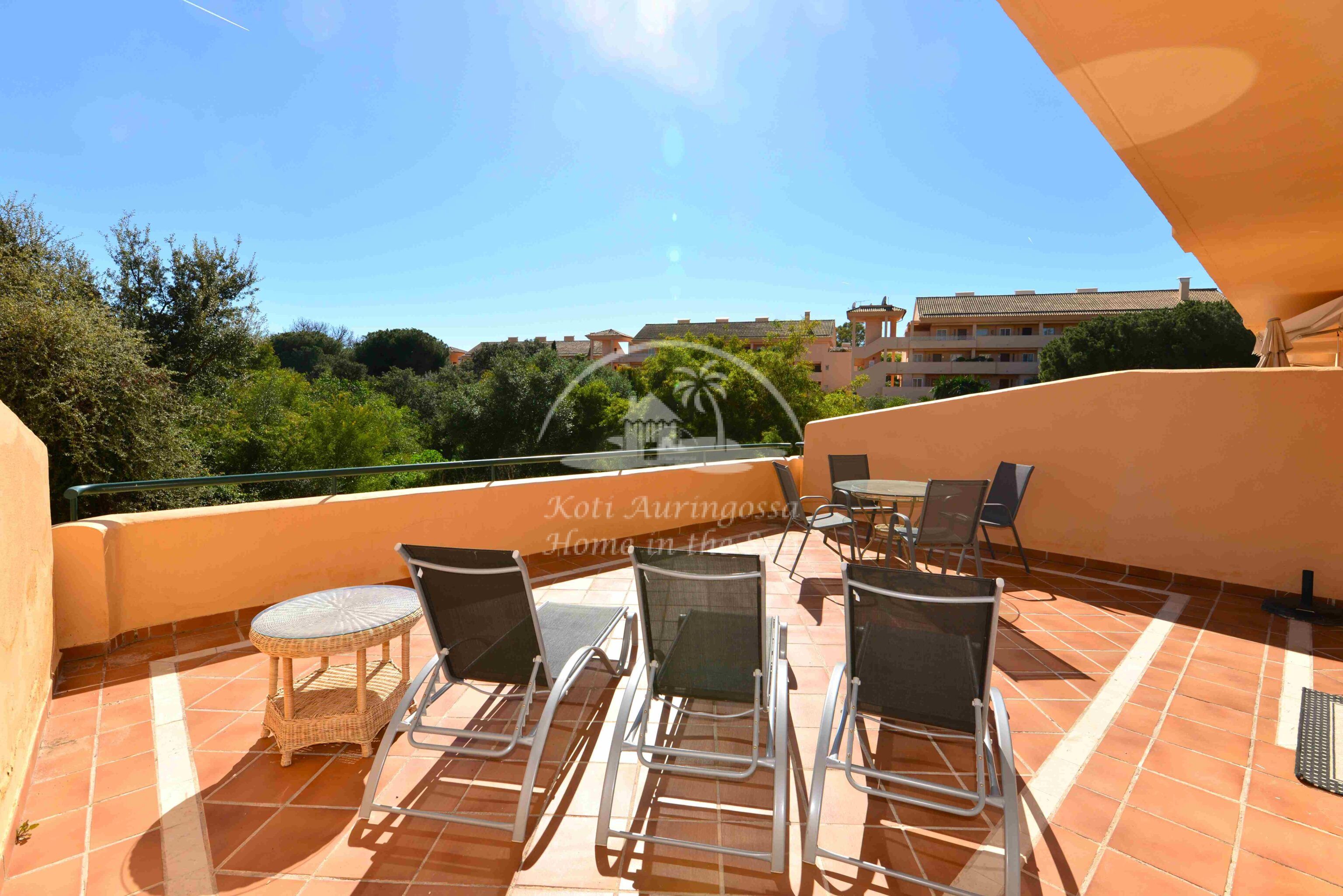 Avara laadukas asunto santa Maria Golf kentän vieressä. Asunto on kodikkaasti kalustettu ja sisustettu, siinä on kodin tuntua heti ensi näkemällä. Valoisa olohuone ja ruokailutila. Olohuoneesta ja päämakuuhuoneesta on käynti etelään päin olevalle aurinkoiselle todella suurelle terassille. Terassilta on kivat avarat näkymät vehreään ympäristöön. Erillinen keittiö, jossa on myös astianpesukone.