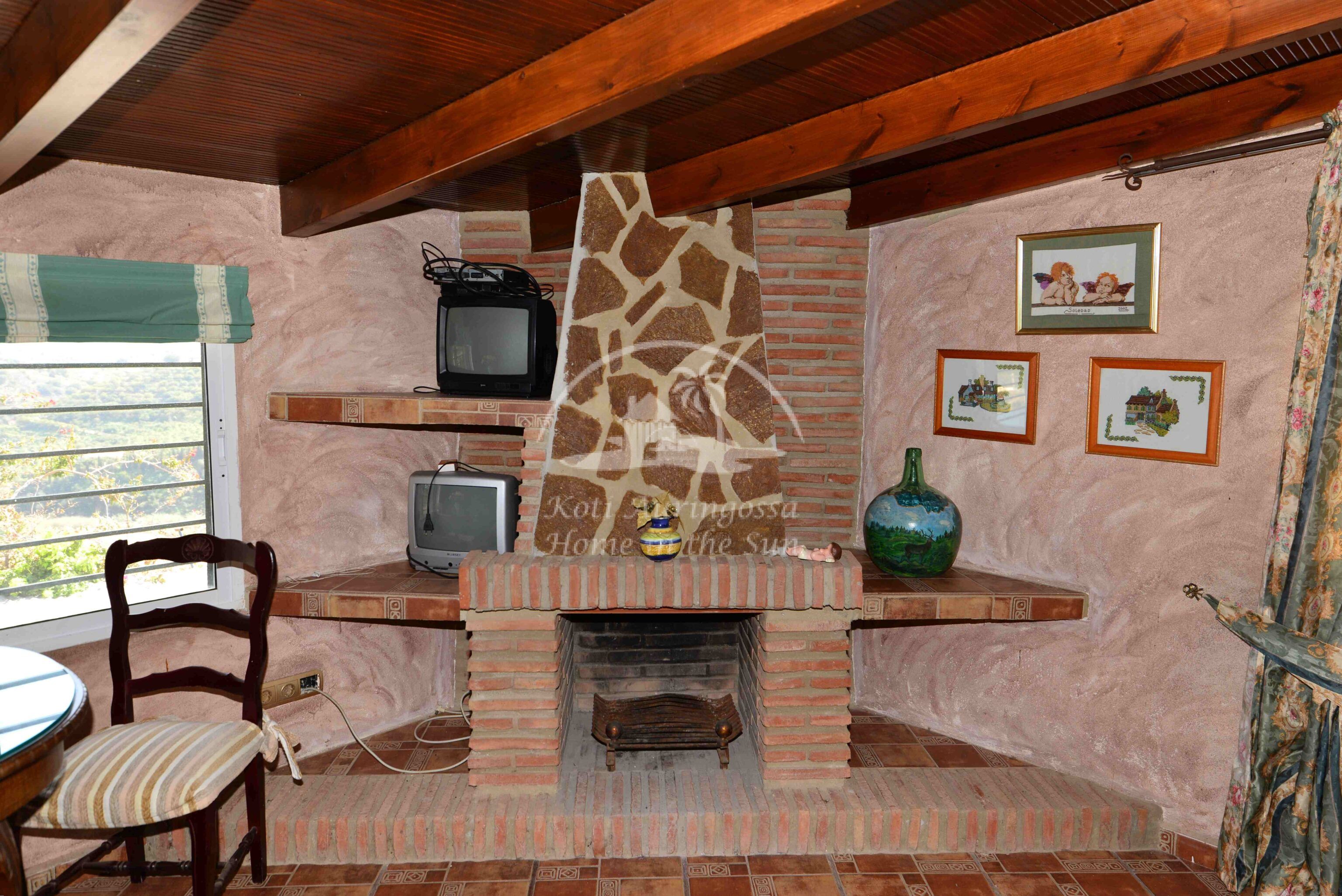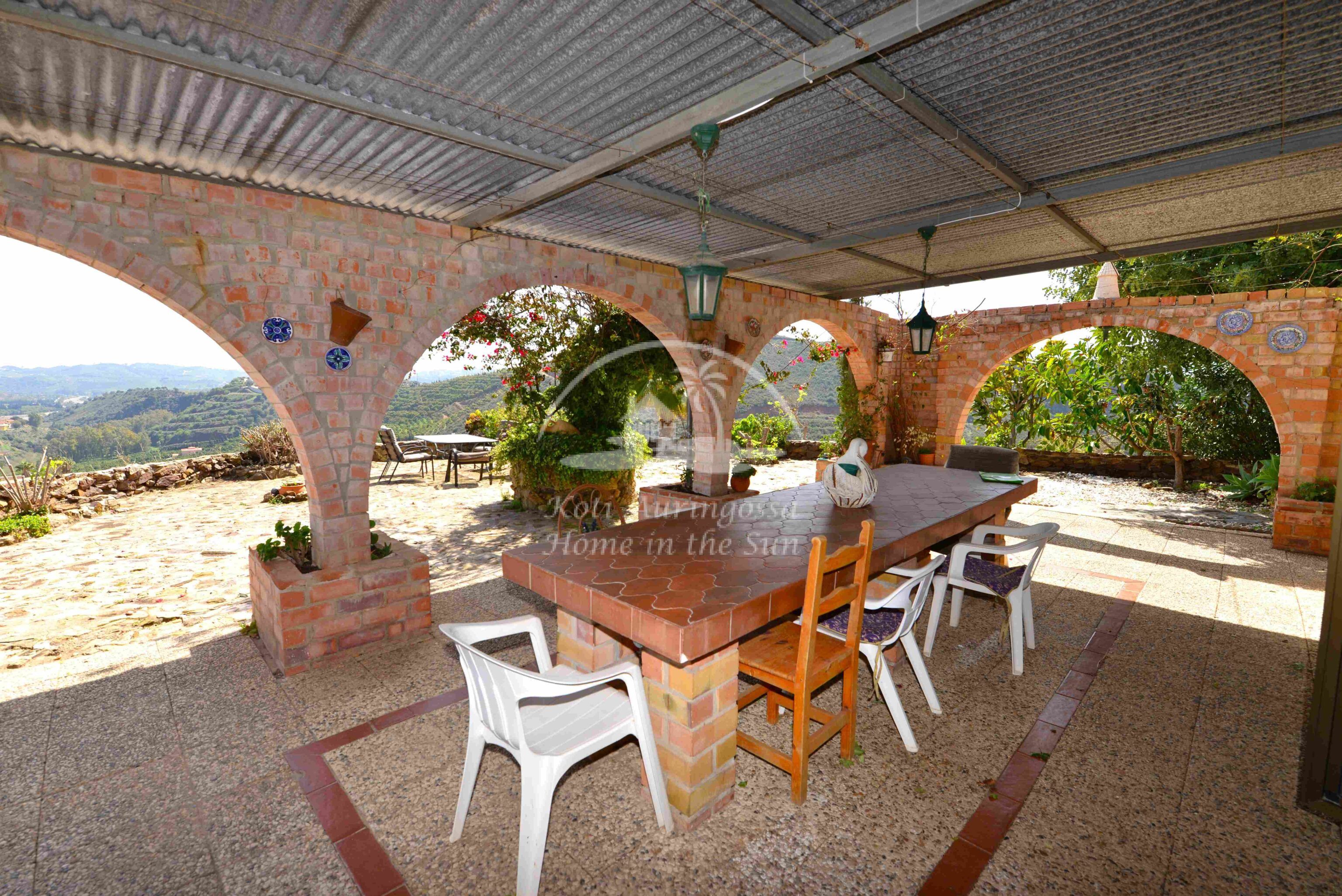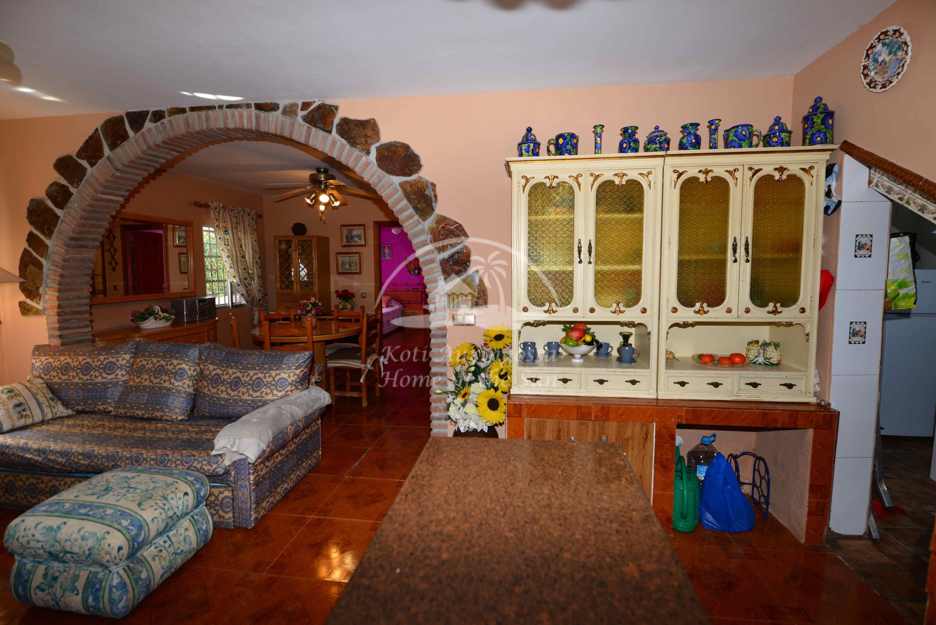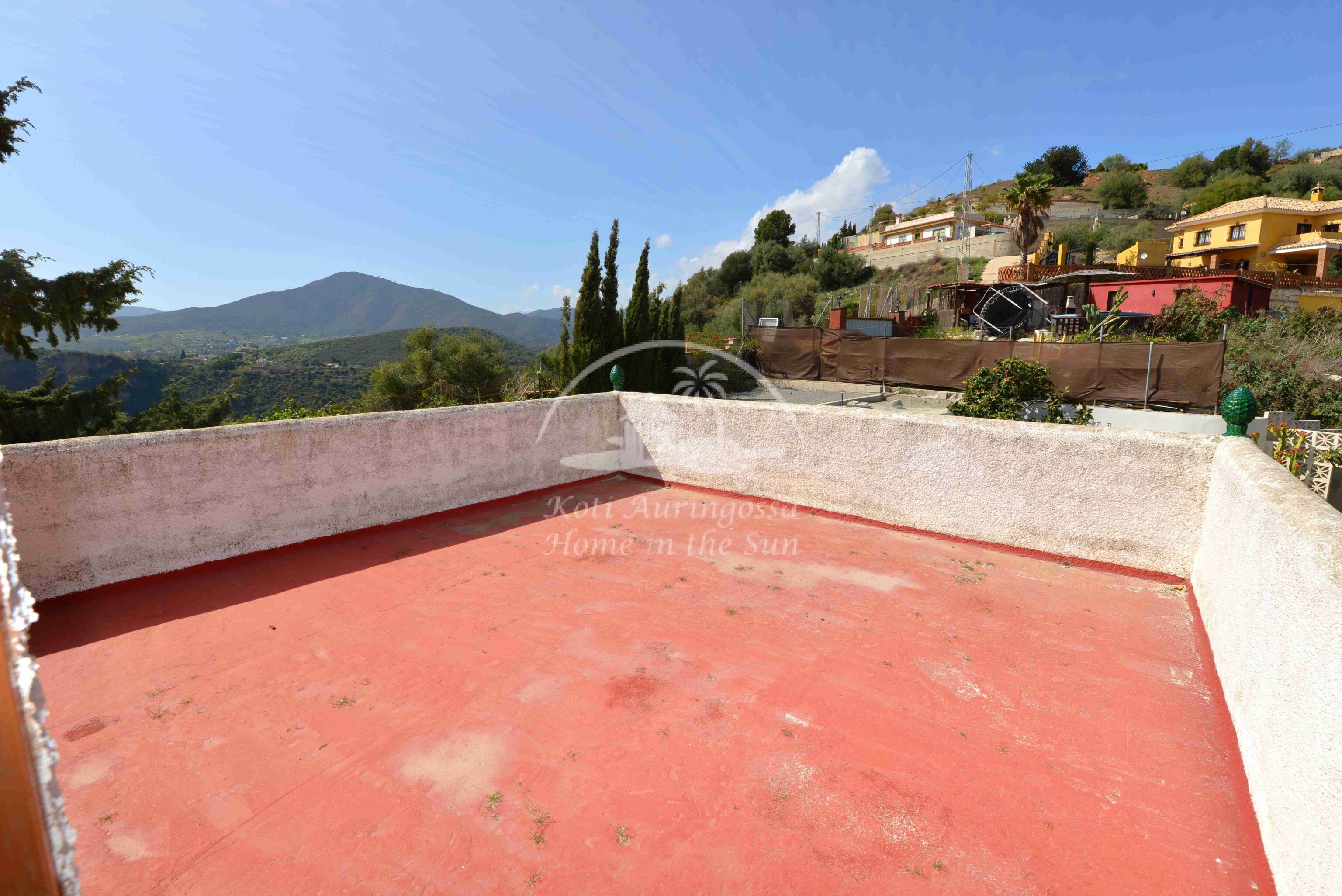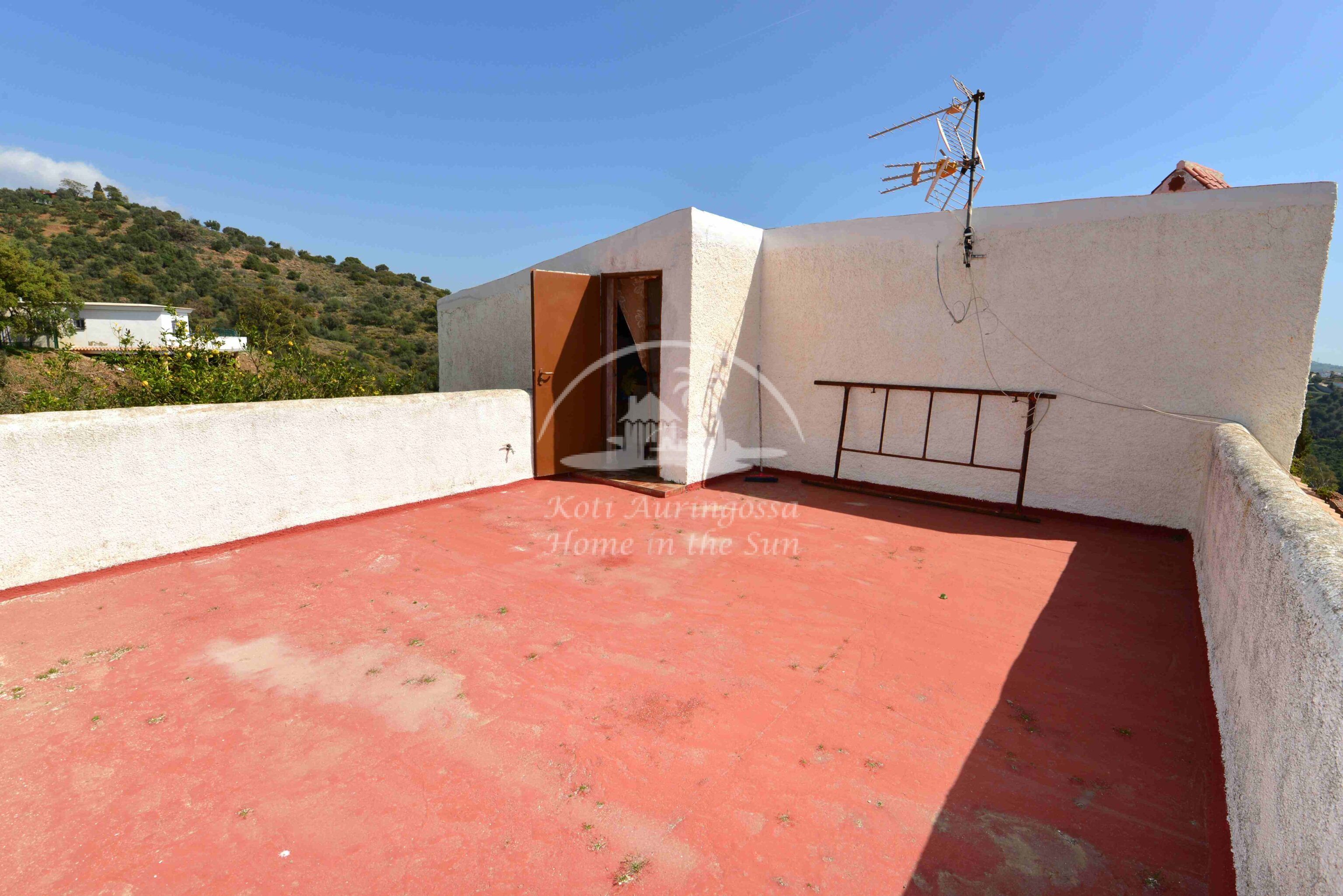 Talo on kodikkaasti kalustettu ja sisustettu. Talon pääoven edessä on kiva muurattu grilli ja suuri katettu terassi, josta pääsee valtavan kokoiselle aurinkoiselle terassille. Terassilta on kauniit esteettömät näkymät rannikoille asti. Talon takana tontin sisääntulon yhteydessä on autokatos sekä paikoitustilaa useammalle autolle, sekä pieni uima-allas. Talon alakerrassa avara olohuone takalla, sekä erillinen ruokailutila. Avokeittiö. 2 makuuhuonetta. 1 kylpyhuone. Talon yläkerrassa on erittäin suuri päämakuuhuone jossa on myös takka. Päämakuuhuoneesta on käynti reilun kokoiselle aurinkoiselle kattoterassille. Täysin aidatulla tontilla on appelsiini puita, sekä häkki esim. kanoille, reilusti tilaa omalle kasvimaalle. Rannikoille ajaa noin 20 minuutissa.