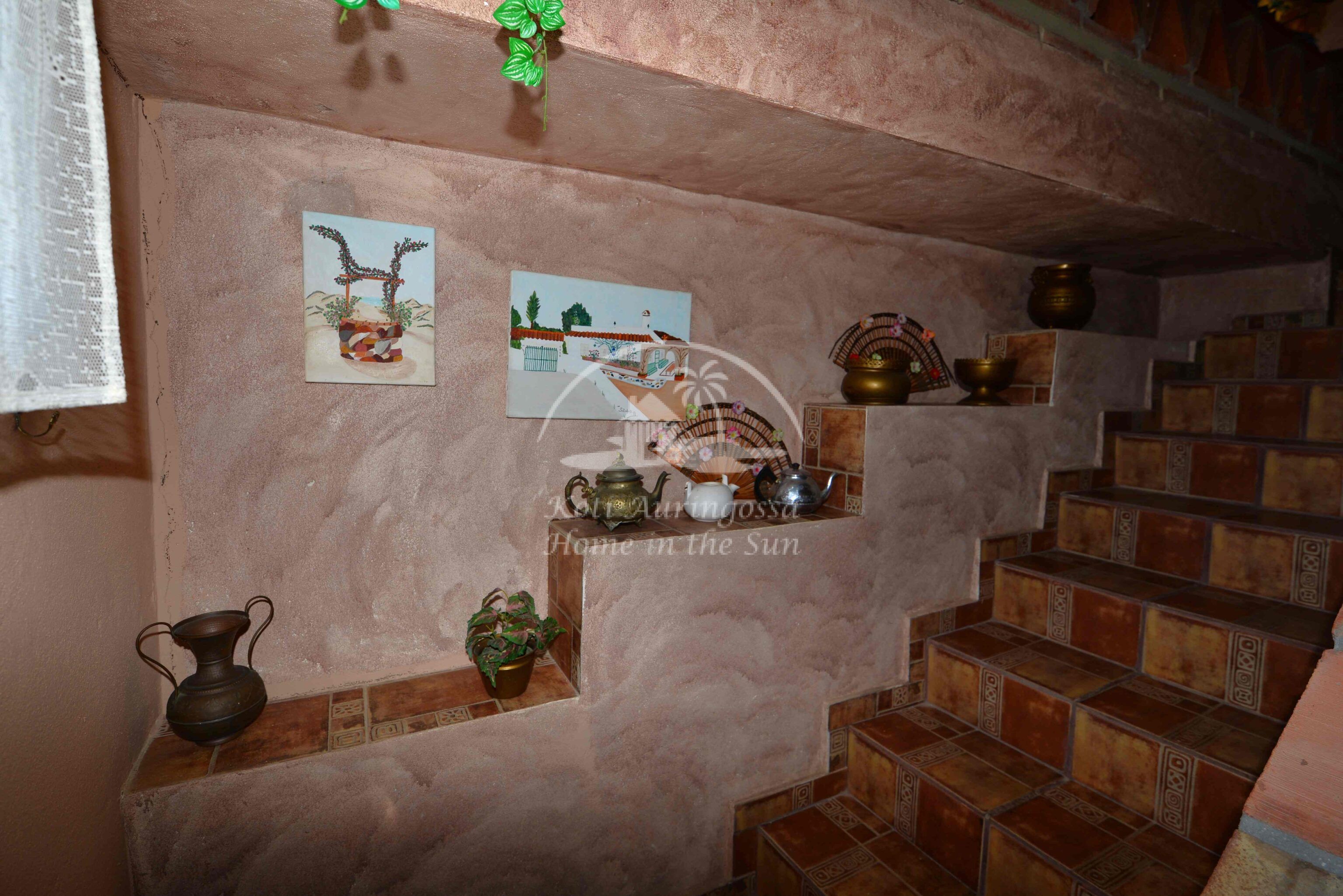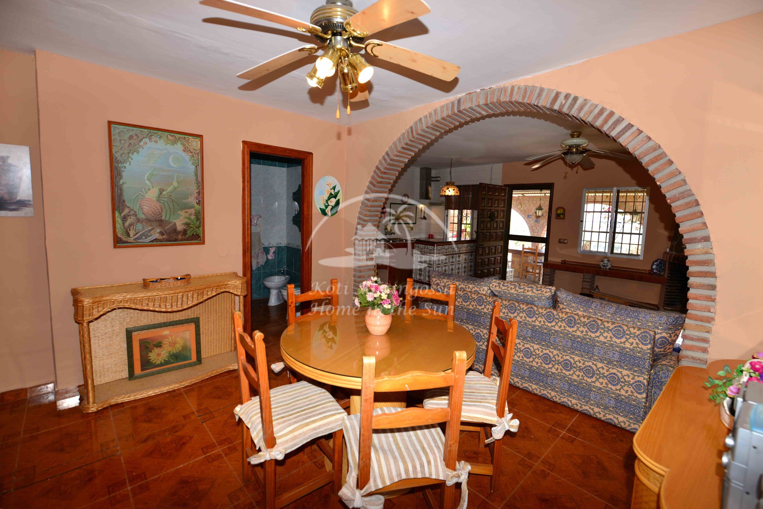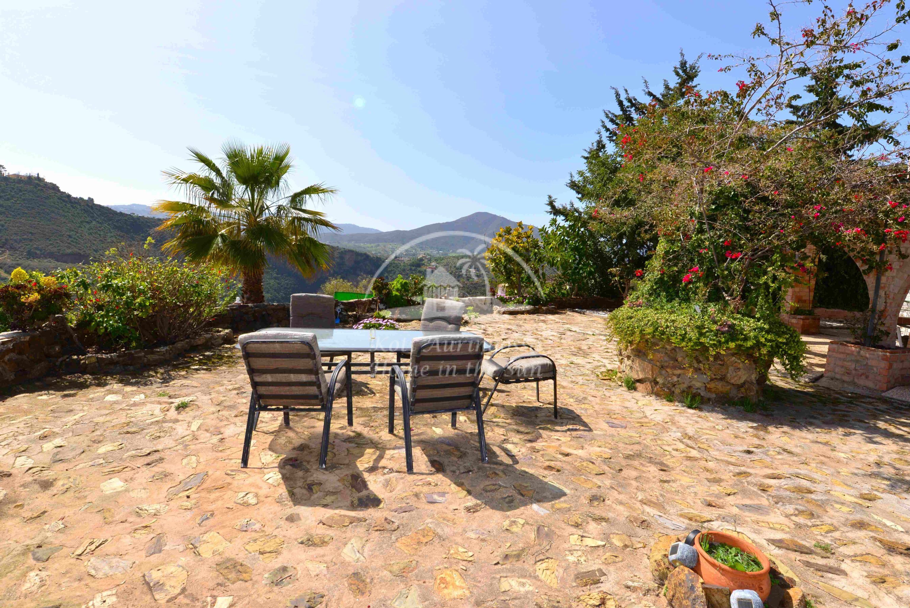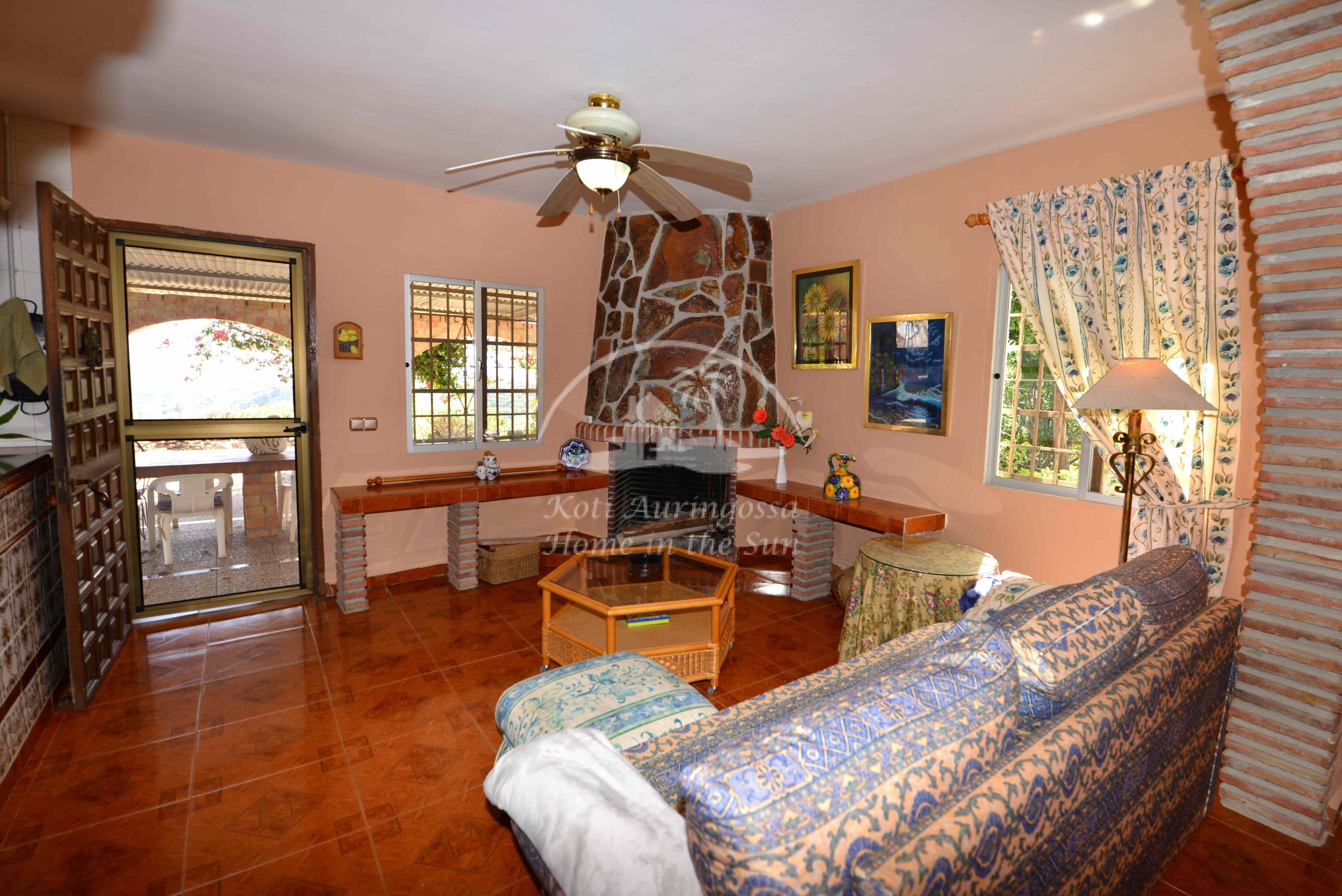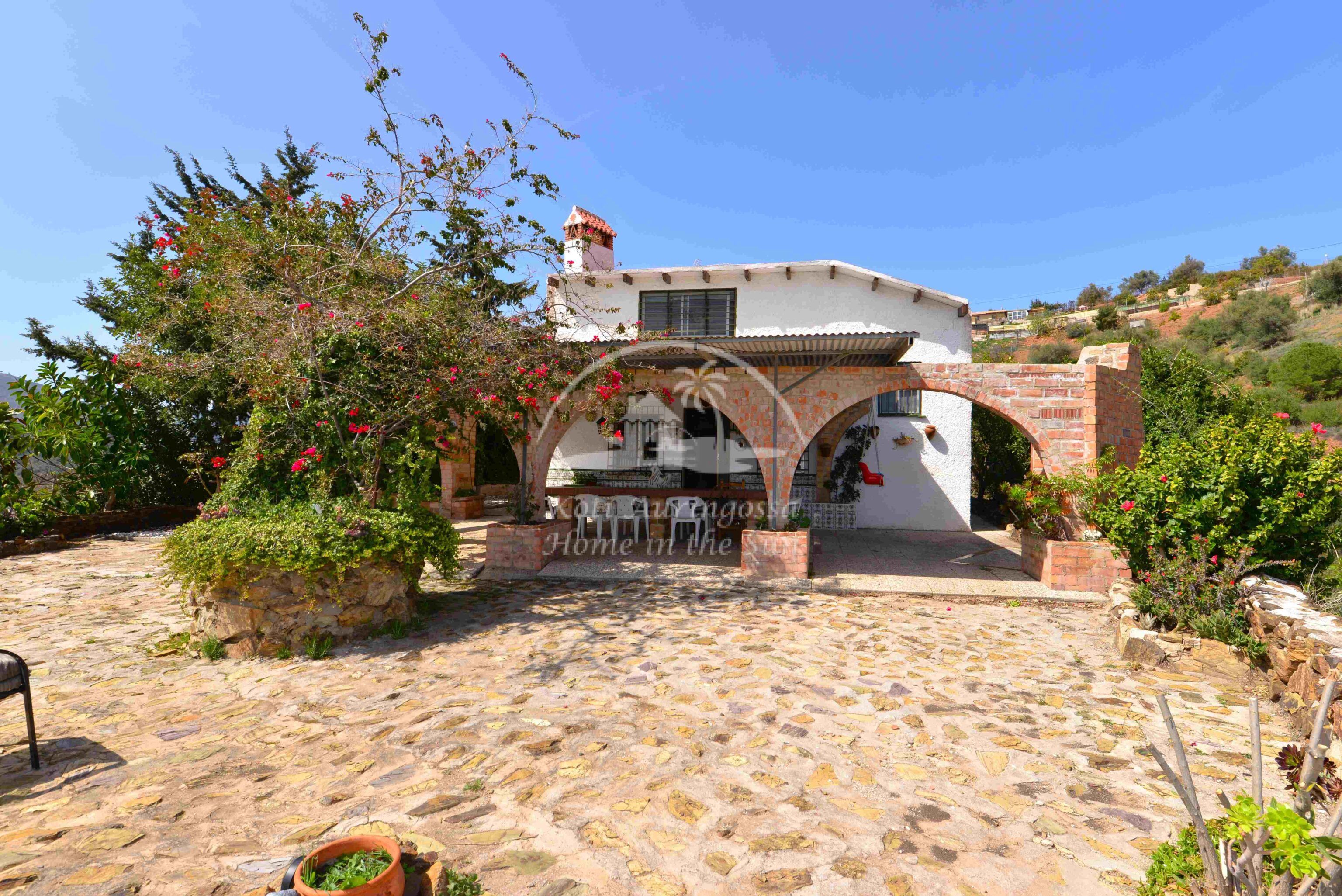 Talo on kodikkaasti kalustettu ja sisustettu. Talon pääoven edessä on kiva muurattu grilli ja suuri katettu terassi, josta pääsee valtavan kokoiselle aurinkoiselle terassille. Terassilta on kauniit esteettömät näkymät rannikoille asti. Talon takana tontin sisääntulon yhteydessä on autokatos sekä paikoitustilaa useammalle autolle, sekä pieni uima-allas. Talon alakerrassa avara olohuone takalla, sekä erillinen ruokailutila. Avokeittiö. 2 makuuhuonetta. 1 kylpyhuone. Talon yläkerrassa on erittäin suuri päämakuuhuone jossa on myös takka. Päämakuuhuoneesta on käynti reilun kokoiselle aurinkoiselle kattoterassille. Täysin aidatulla tontilla on appelsiini puita, sekä häkki esim. kanoille, reilusti tilaa omalle kasvimaalle. Rannikoille ajaa noin 20 minuutissa.
