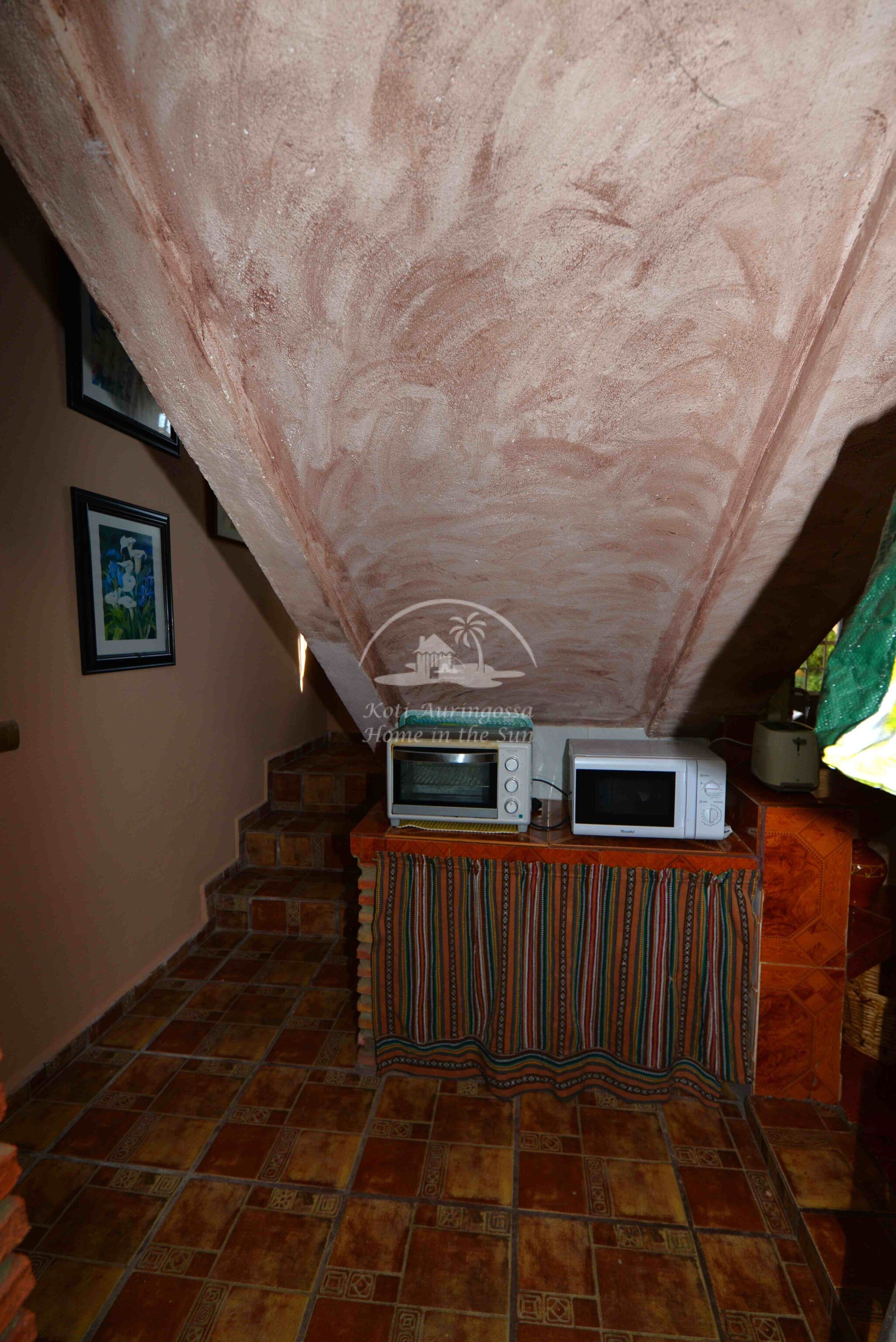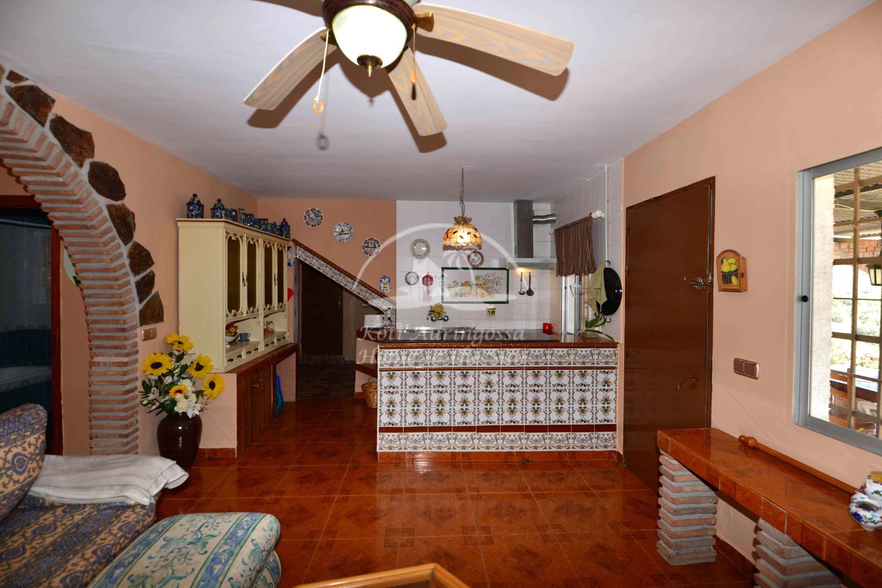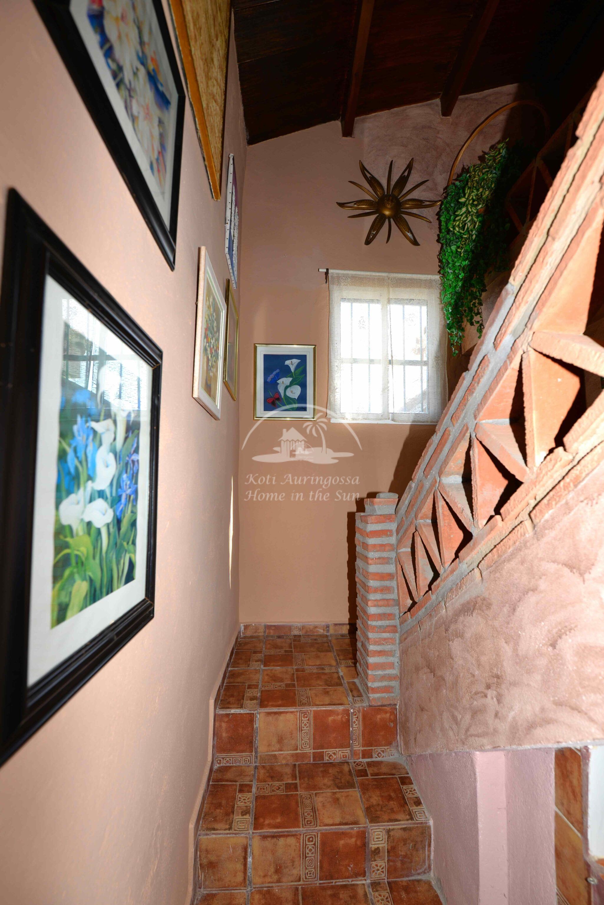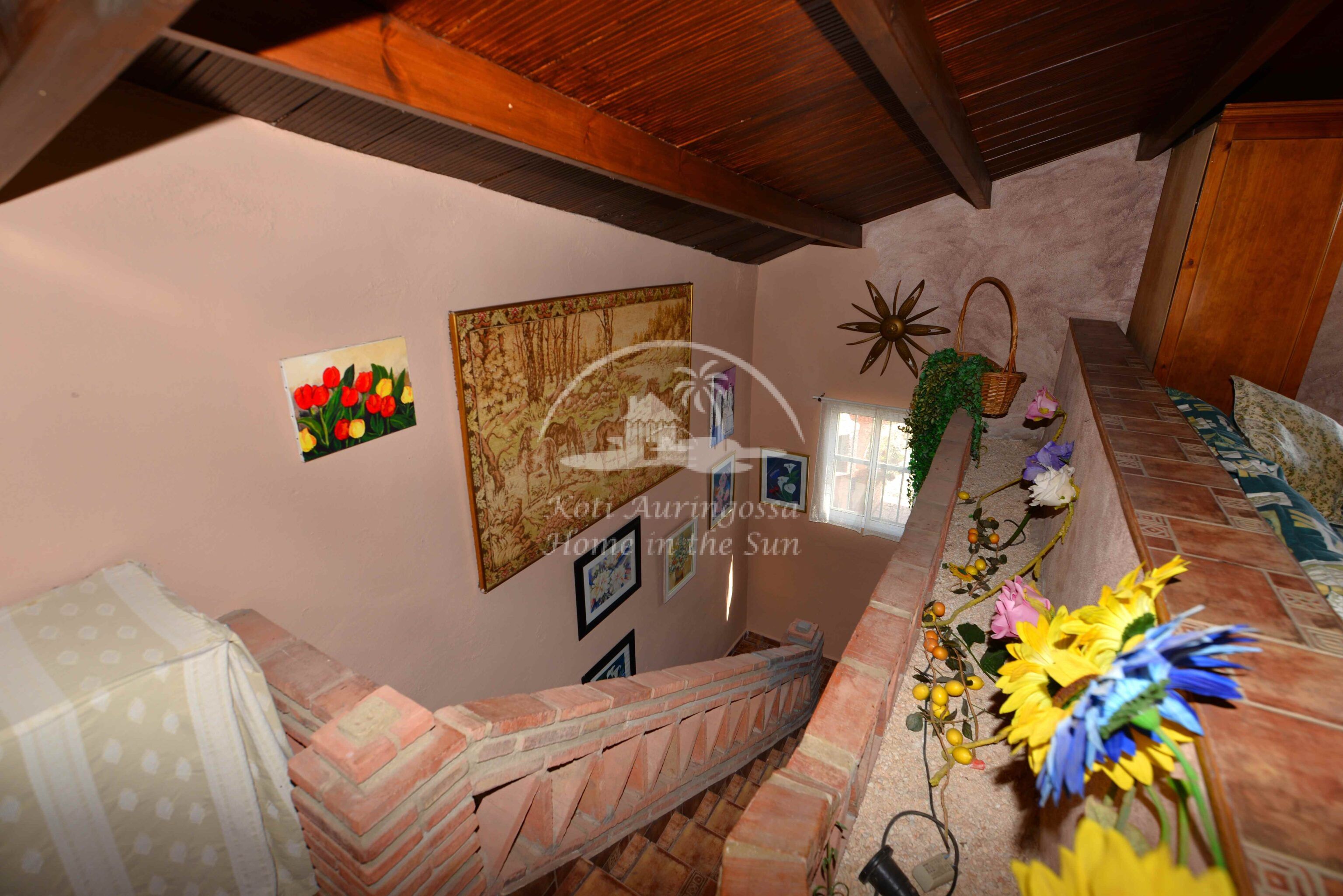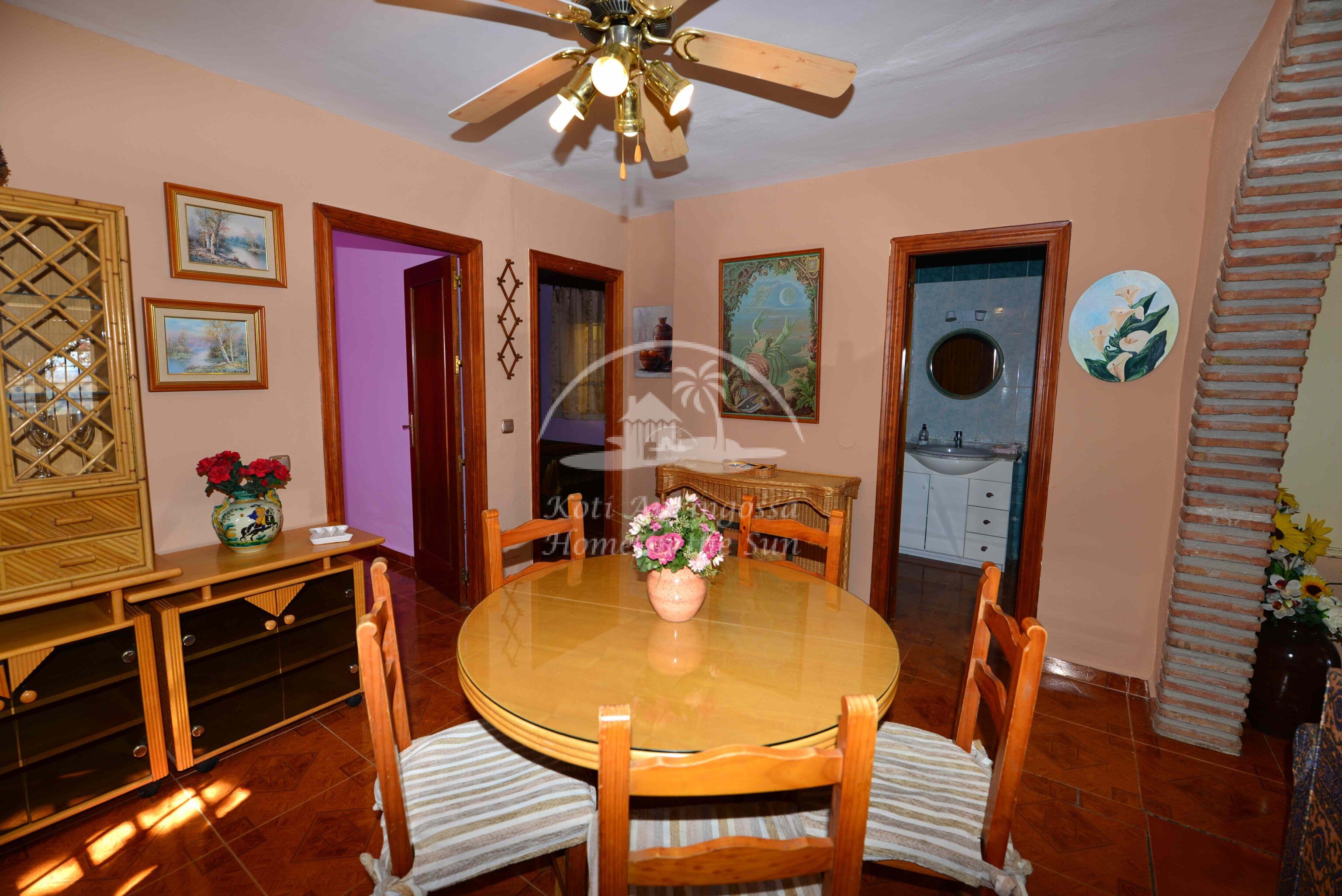 Talo on kodikkaasti kalustettu ja sisustettu. Talon pääoven edessä on kiva muurattu grilli ja suuri katettu terassi, josta pääsee valtavan kokoiselle aurinkoiselle terassille. Terassilta on kauniit esteettömät näkymät rannikoille asti. Talon takana tontin sisääntulon yhteydessä on autokatos sekä paikoitustilaa useammalle autolle, sekä pieni uima-allas. Talon alakerrassa avara olohuone takalla, sekä erillinen ruokailutila. Avokeittiö. 2 makuuhuonetta. 1 kylpyhuone. Talon yläkerrassa on erittäin suuri päämakuuhuone jossa on myös takka. Päämakuuhuoneesta on käynti reilun kokoiselle aurinkoiselle kattoterassille. Täysin aidatulla tontilla on appelsiini puita, sekä häkki esim. kanoille, reilusti tilaa omalle kasvimaalle. Rannikoille ajaa noin 20 minuutissa.