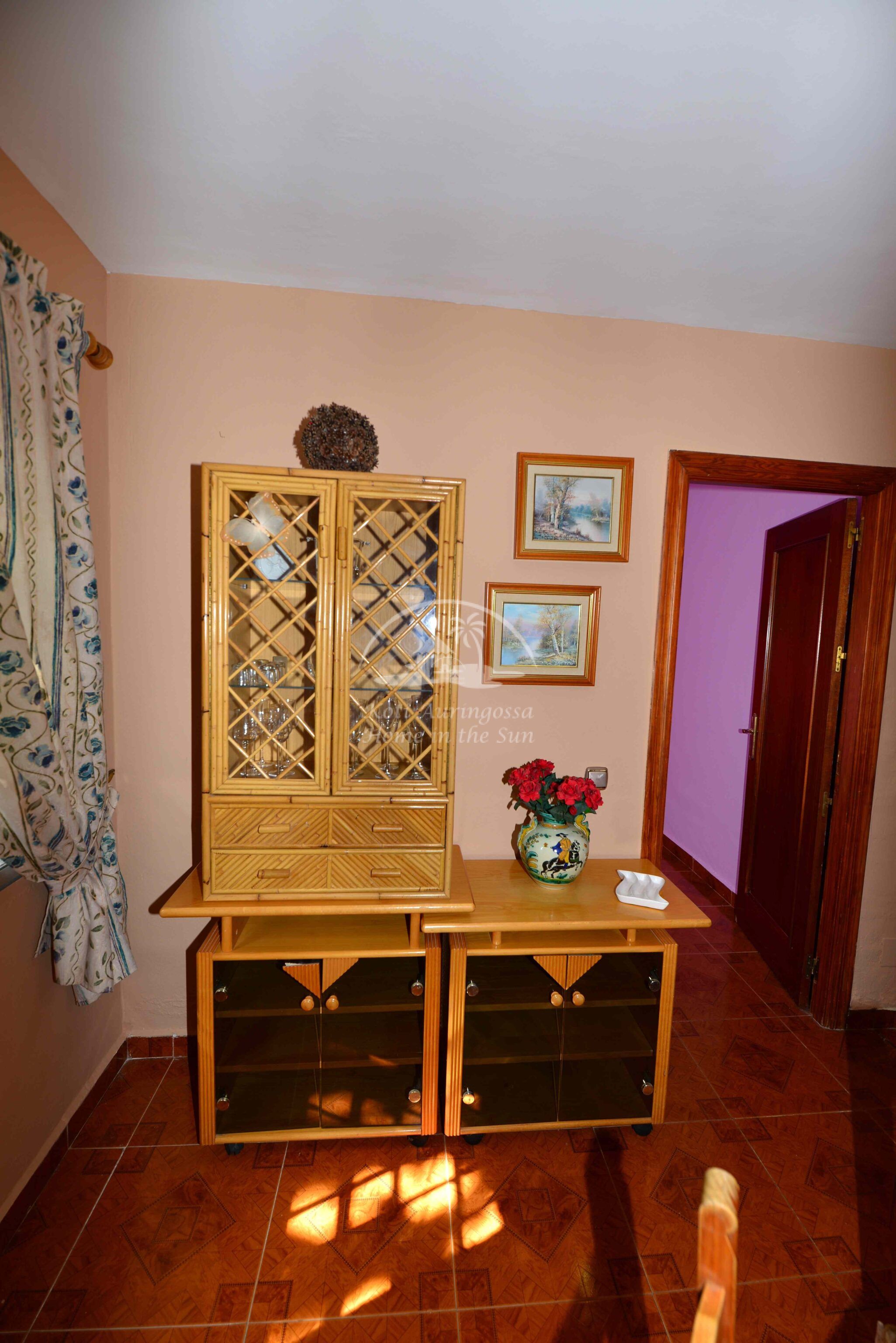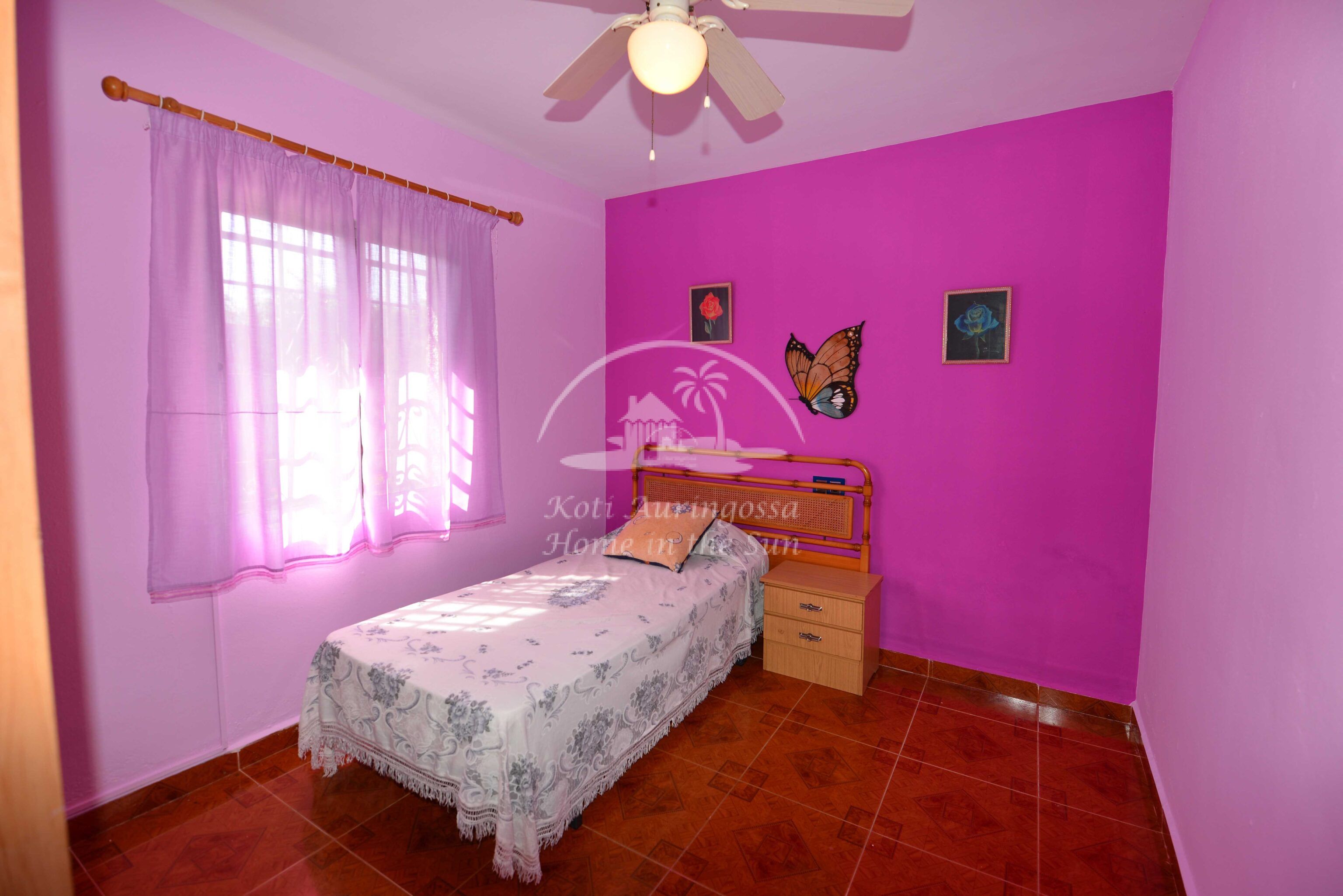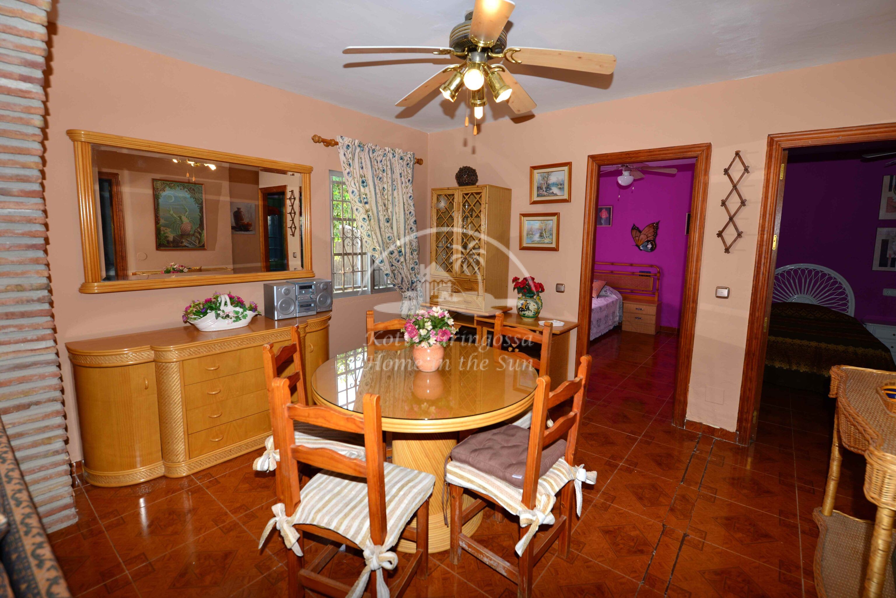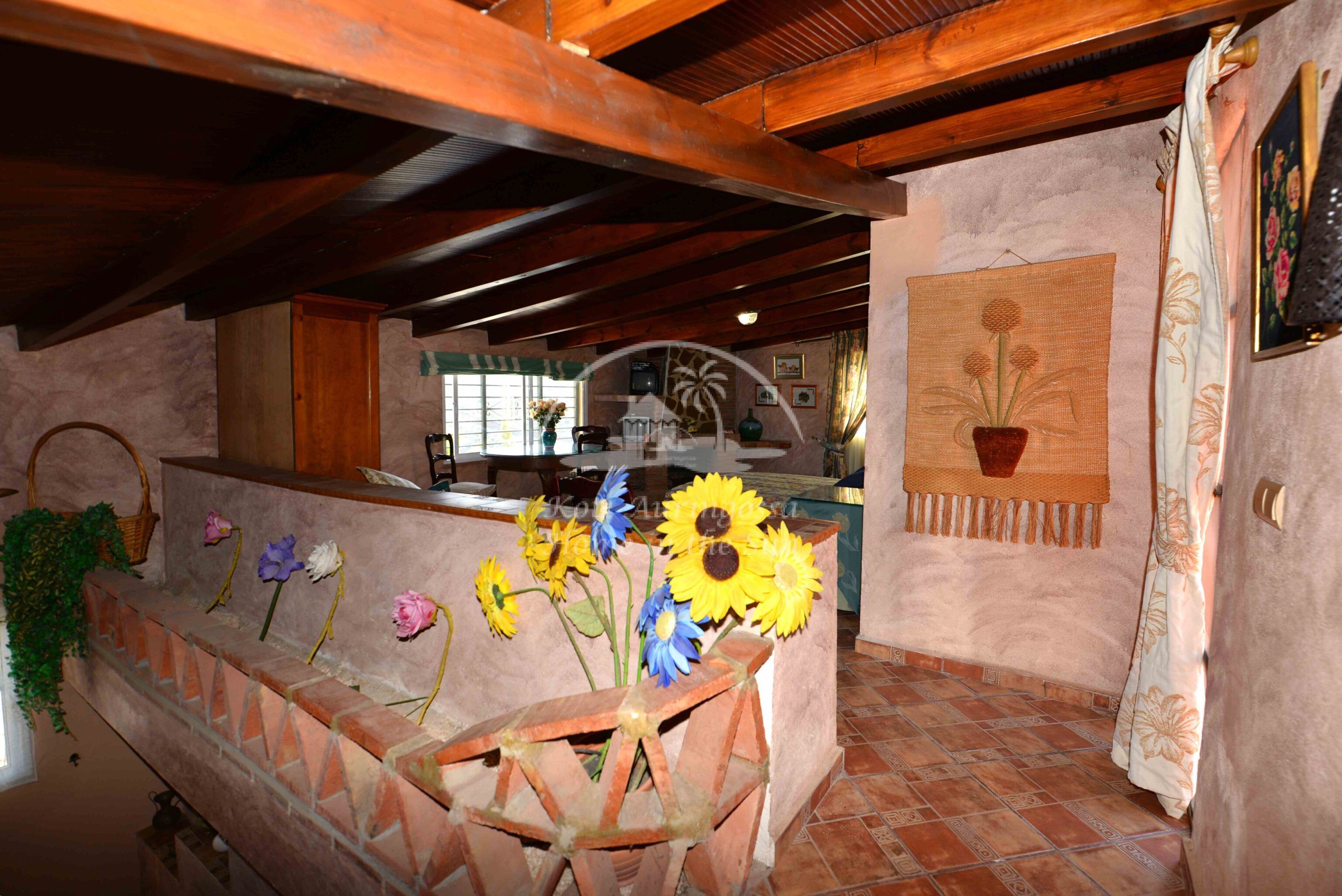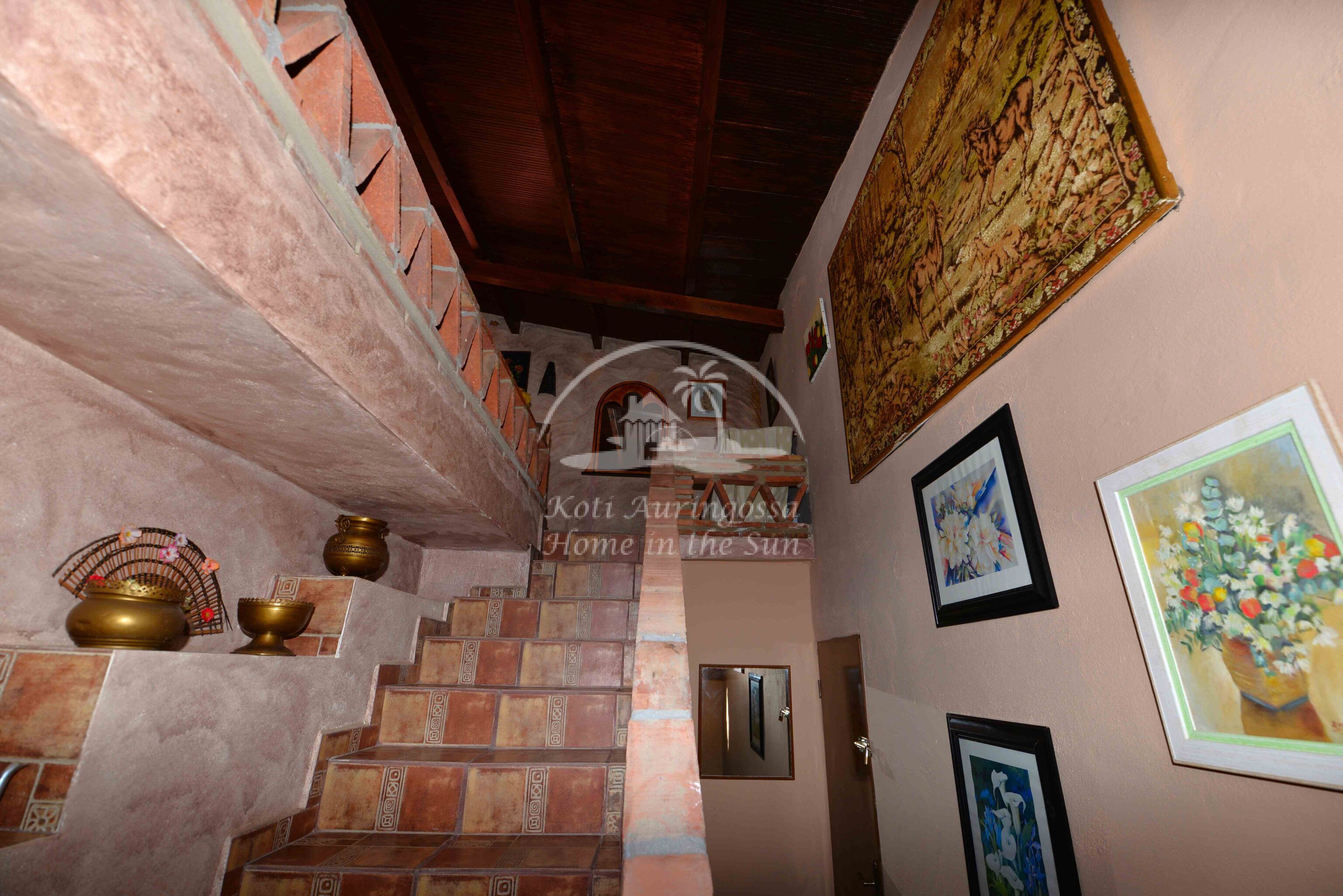 Talo on kodikkaasti kalustettu ja sisustettu. Talon pääoven edessä on kiva muurattu grilli ja suuri katettu terassi, josta pääsee valtavan kokoiselle aurinkoiselle terassille. Terassilta on kauniit esteettömät näkymät rannikoille asti. Talon takana tontin sisääntulon yhteydessä on autokatos sekä paikoitustilaa useammalle autolle, sekä pieni uima-allas. Talon alakerrassa avara olohuone takalla, sekä erillinen ruokailutila. Avokeittiö. 2 makuuhuonetta. 1 kylpyhuone. Talon yläkerrassa on erittäin suuri päämakuuhuone jossa on myös takka. Päämakuuhuoneesta on käynti reilun kokoiselle aurinkoiselle kattoterassille. Täysin aidatulla tontilla on appelsiini puita, sekä häkki esim. kanoille, reilusti tilaa omalle kasvimaalle. Rannikoille ajaa noin 20 minuutissa.