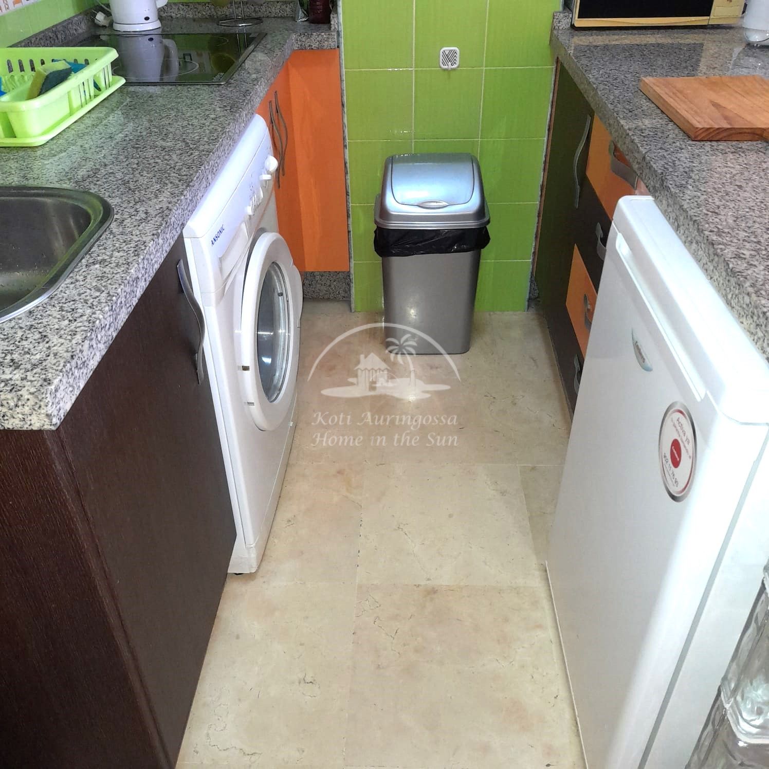 Valoisa olohuone ja ruokailutila. Olohuoneesta on käynti etelään päin olevalle aamu aurinkoiselle terassille. Avokeittiö, jossa kaikki toimii sähköllä. 1 makuuhuone. 1 kylpyhuone. Olohuoneessa ilmastointi lämpöpumppu. Merenrantaan ja Mercadonan ruokakauppaan noin 300 metriä.