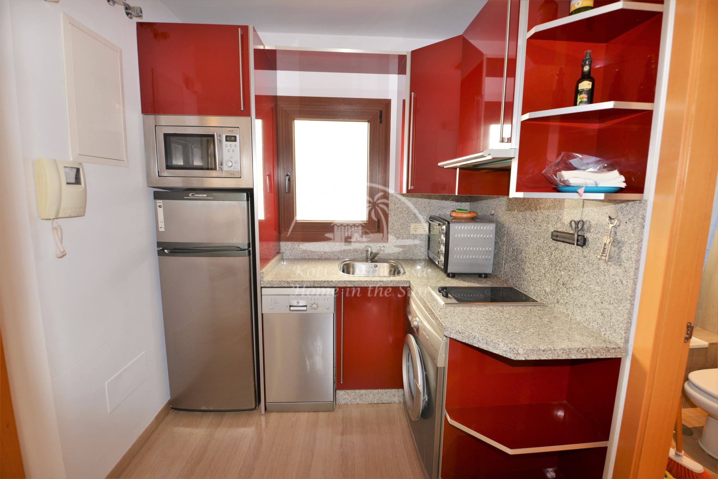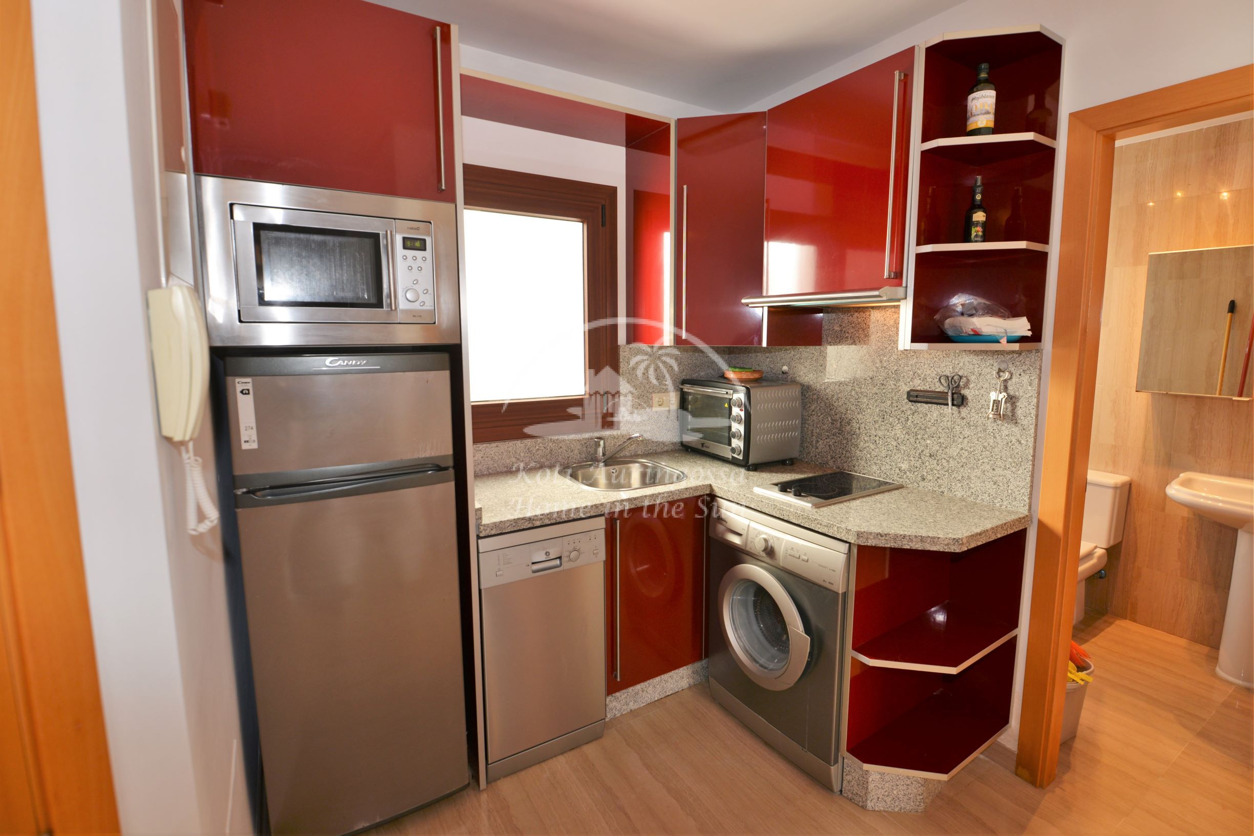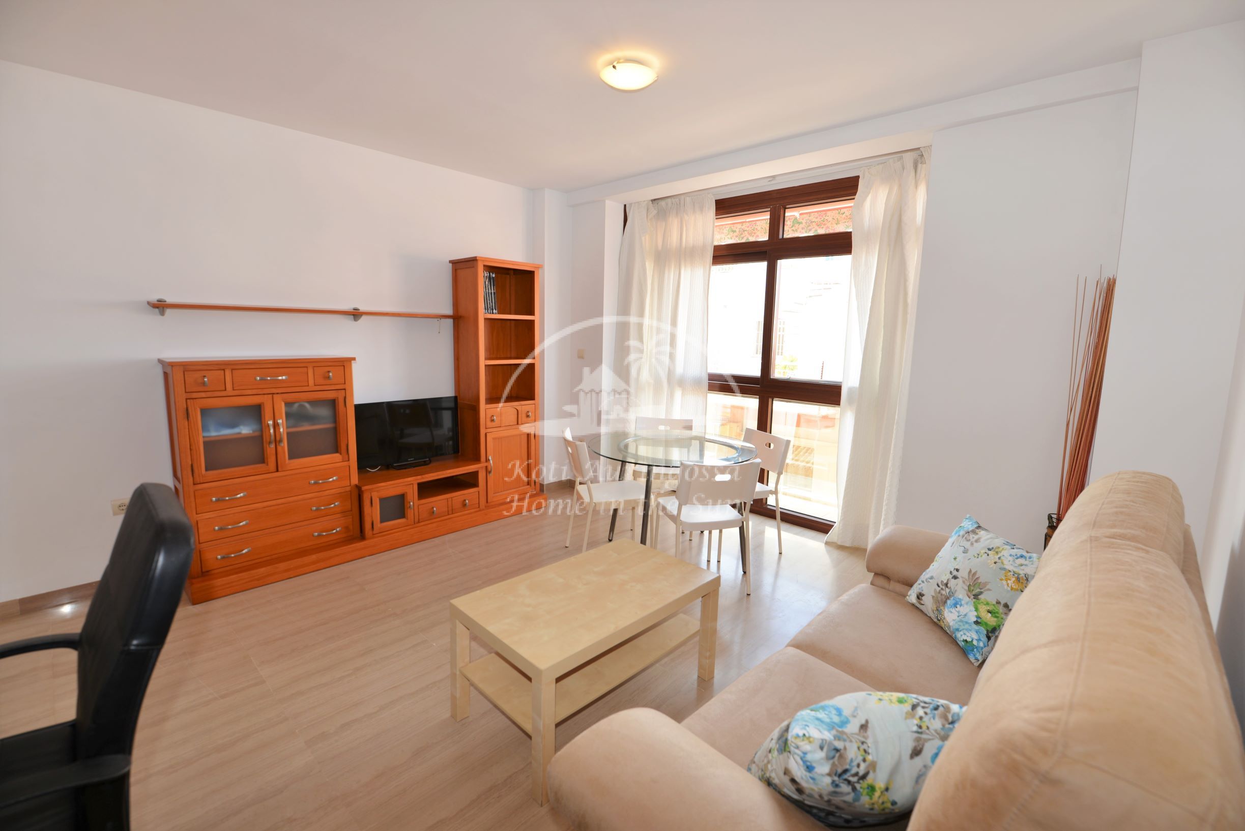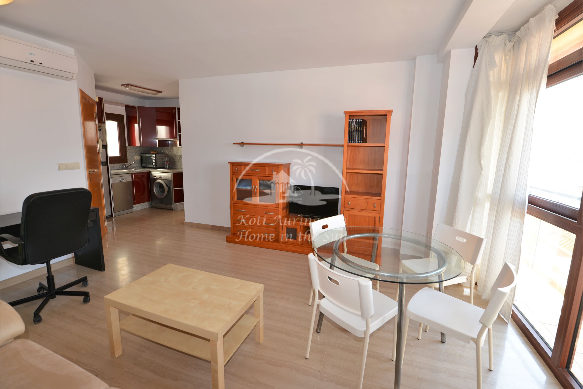 Asunto on kevyesti kalustettu ja sisustettu. Siinä on valoisa olohuone ja ruokailutila. Hyvin varustettu moderni keittiö, jossa on myös astianpesukone. 1 makuuhuone. 1 kylpyhuone kylpyammeella. Olohuoneesta on käynti pohjoiseen päin olevalle ilta-aurinkoiselle terassille. Terassilta avautuu näkymät kaupungin ylle ja Mijasin vuorille. Olohuoneessa ja makuuhuoneessa on ilmastointi-lämpöpumput. Keskeinen sijainti, joten kaikki keskustan palvelut on varsin lähellä eikä merenrantaankaan ole kuin noin 50 metriä matkaa. Osoite: Calle Castillo 13. Edif. Solymar 4 krs. Fuengirola.