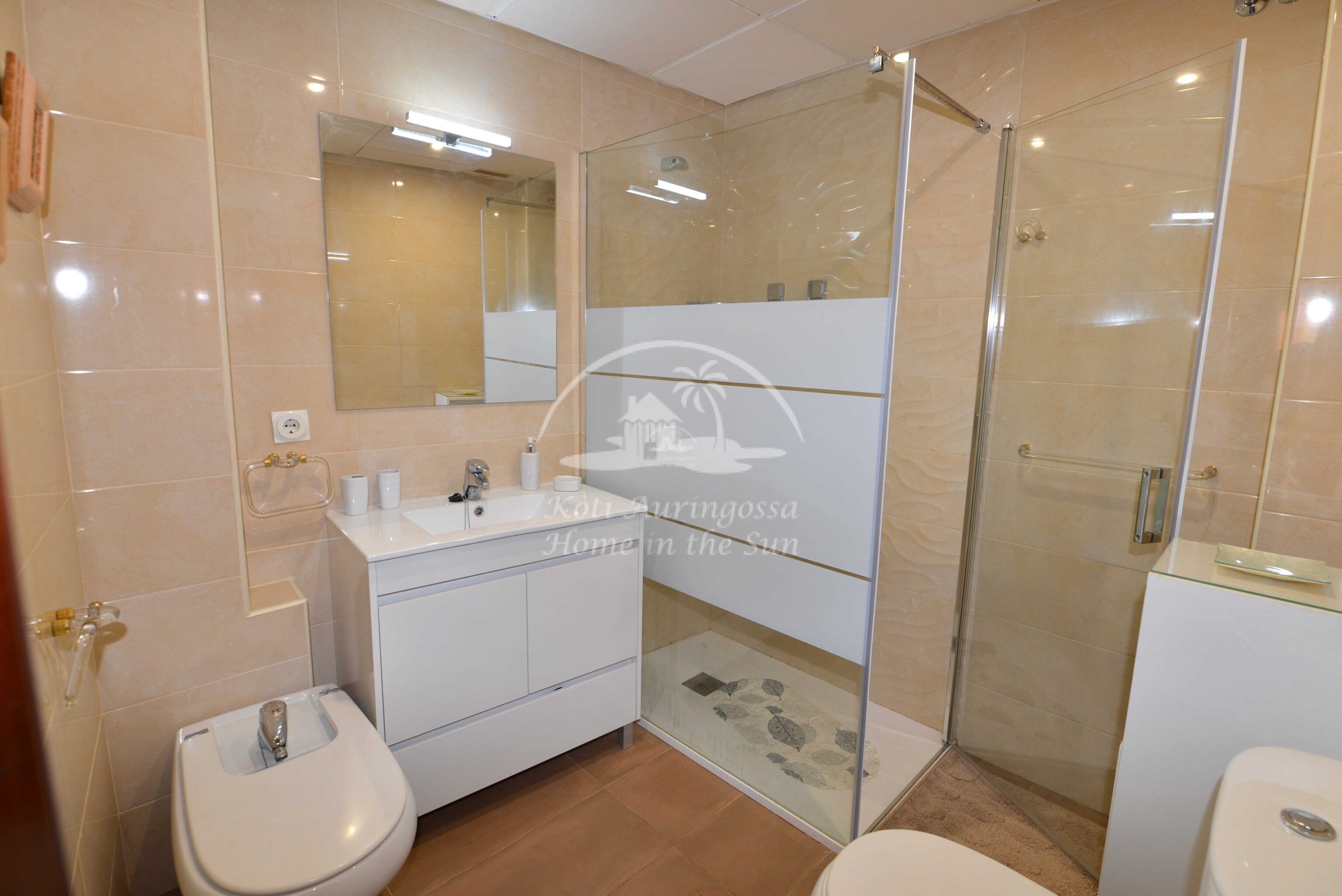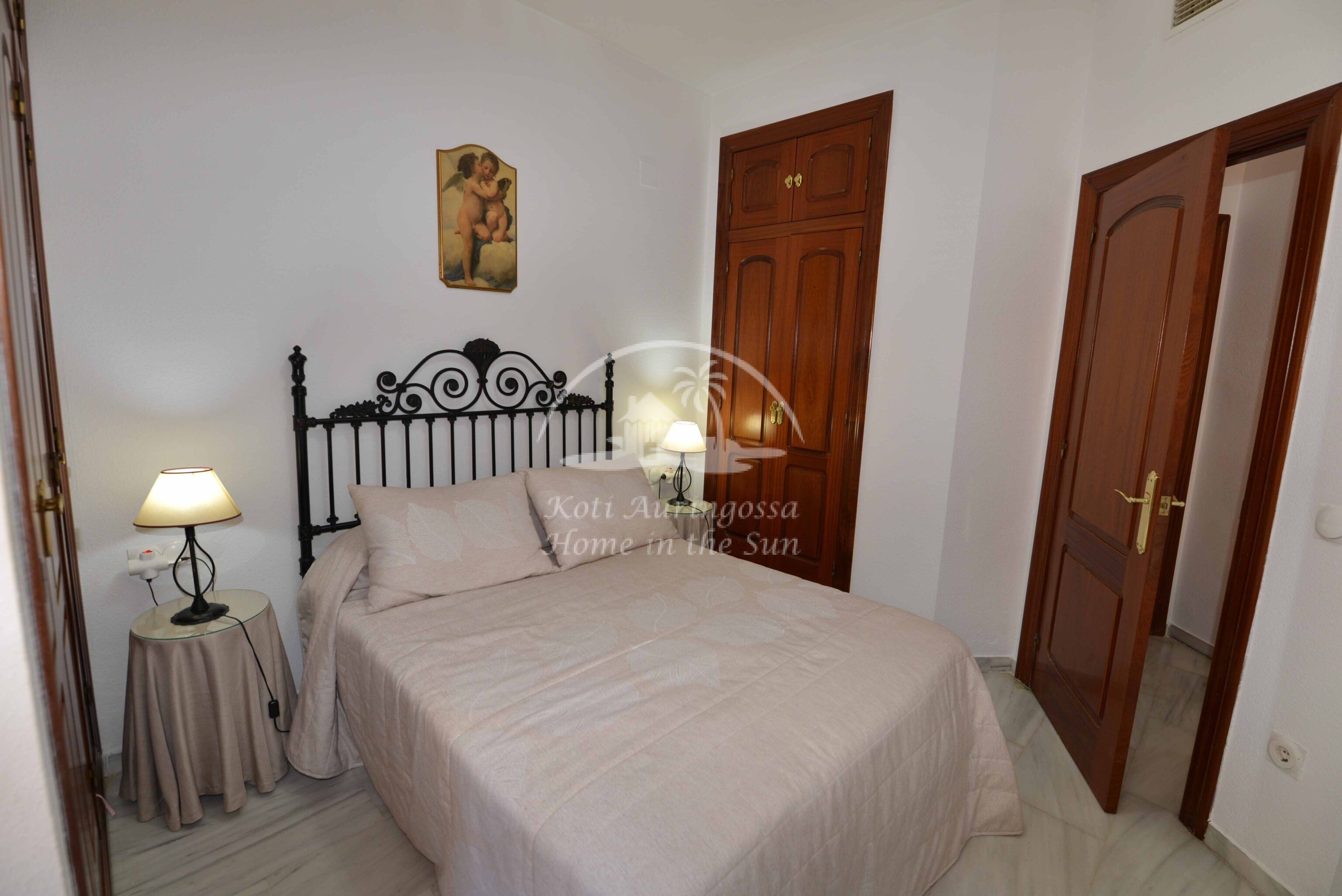 Asunto on kodikkaasti kalustettu ja sisustettu. Valoisa olohuone ja ruokailutila. Olohuoneesta on käynti länteen päin olevalle ranskalaiselle parvekkeelle, josta on näkymät merelle ja rantakadulle, sekä lähikadulle. Erillinen keittiö jossa kaikki toimii sähköllä. 1 makuuhuone. 1 kylpyhuone. Asunnossa on koko huoneiston kattava keskus ilmastointi lämpöpumppu. Nopea valkuitu wifi internet yhteys valmiina, joka sisältyy vuokraan. Taloyhtiön katolla on 2 eri kattoterassia, jossa on hyvä kuivattaa pyykkiä, ja vaikka ottaa aurinkoa koko päivän. Kaikki keskustan palvelut lähellä. Merenrantaan 100 metriä.