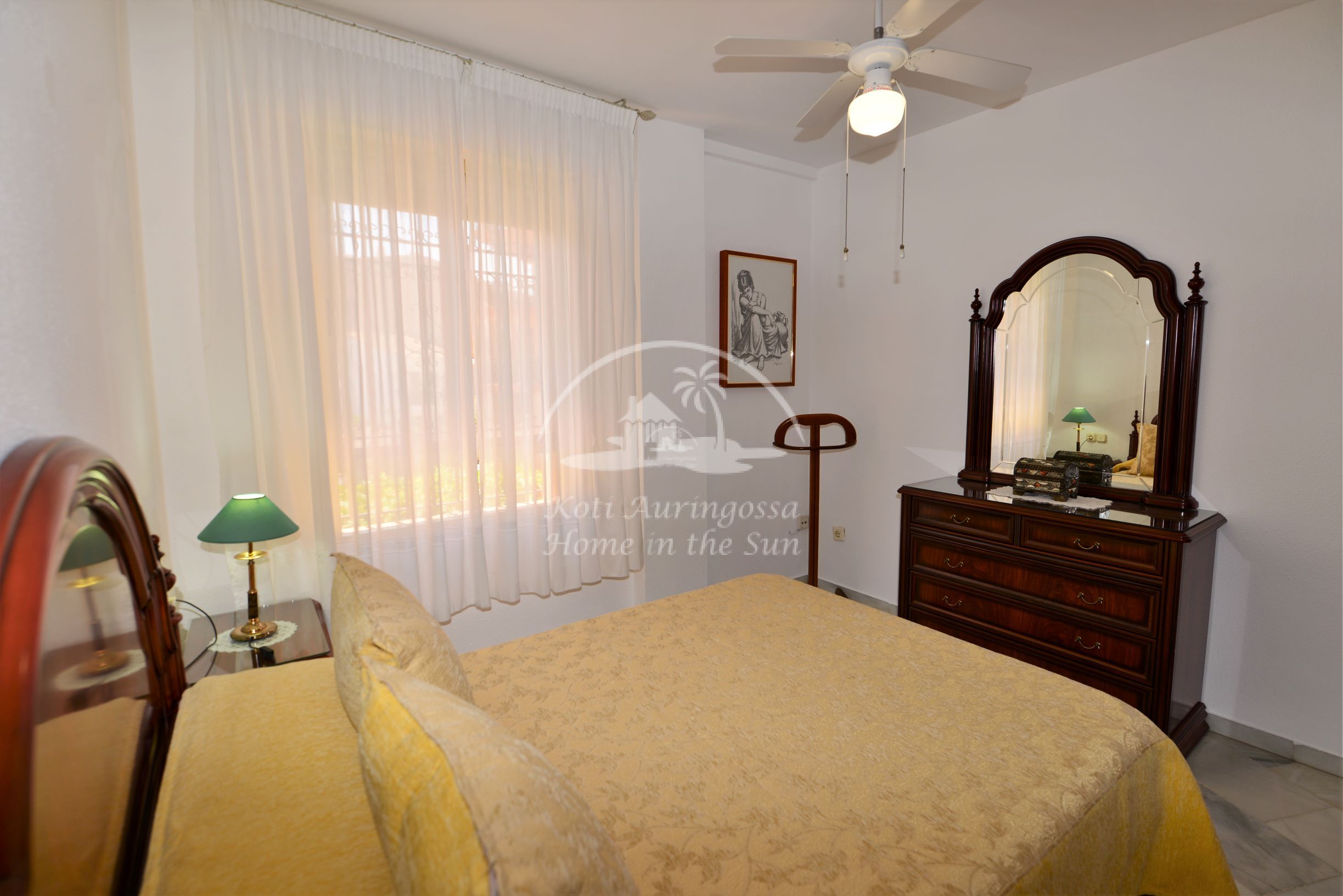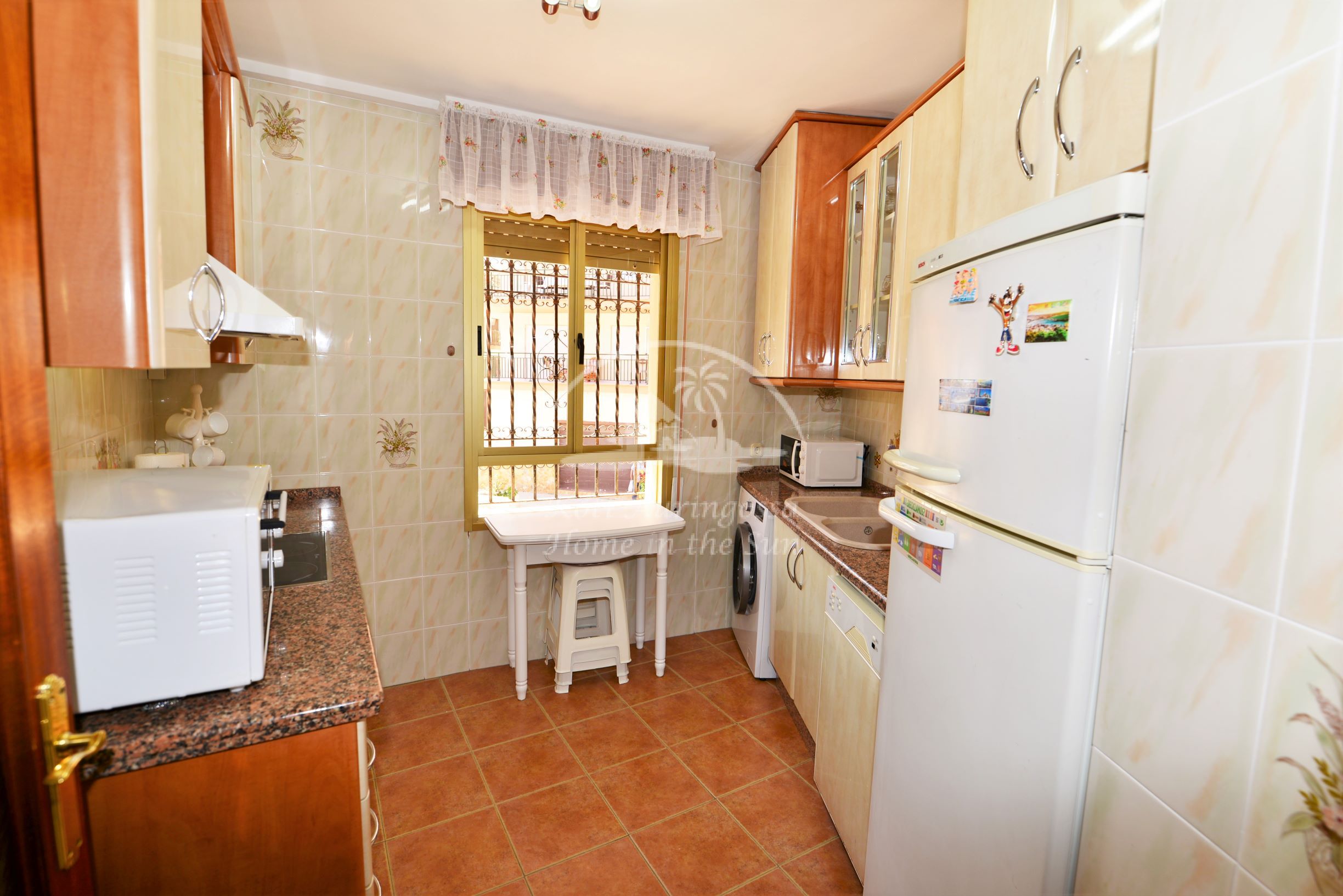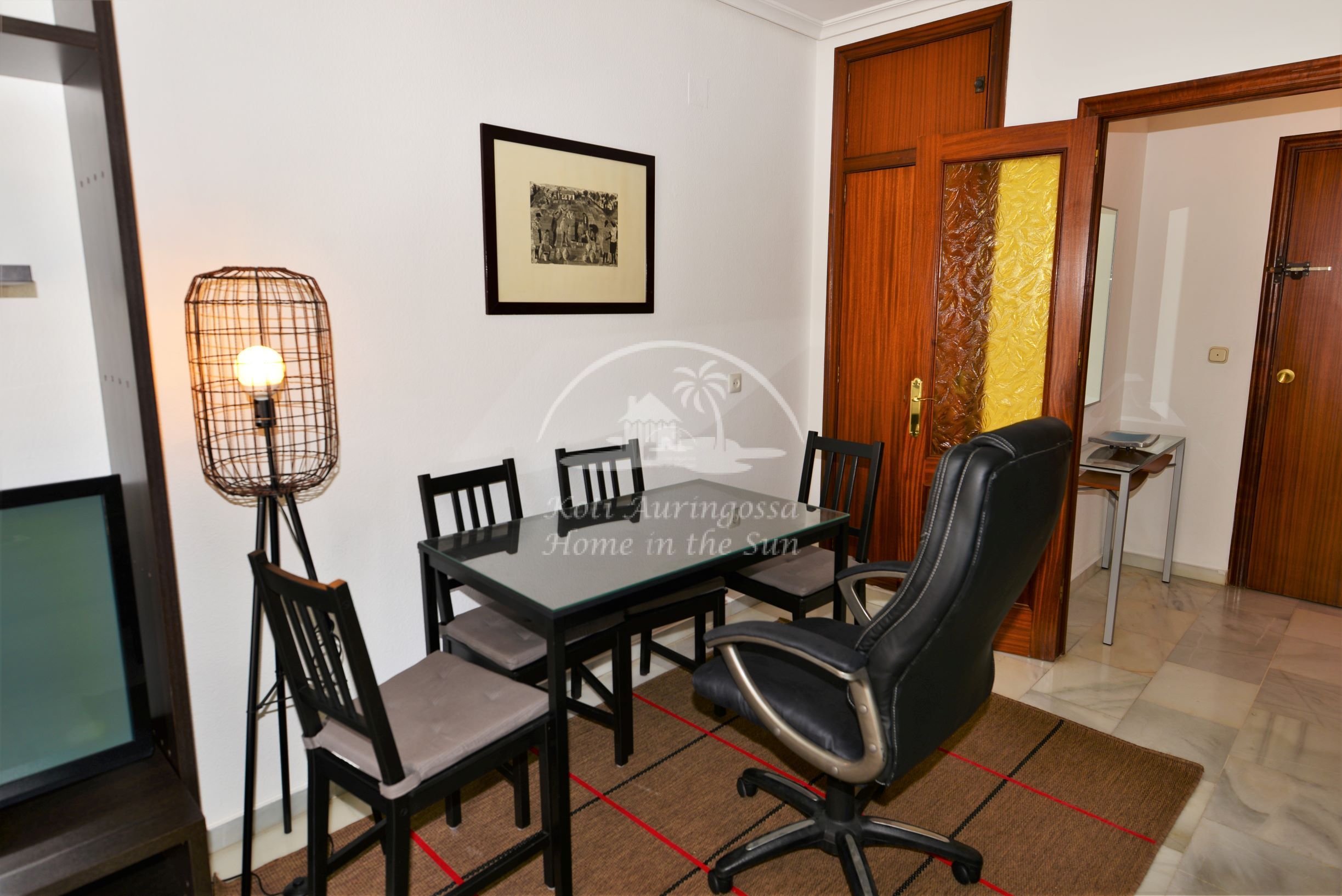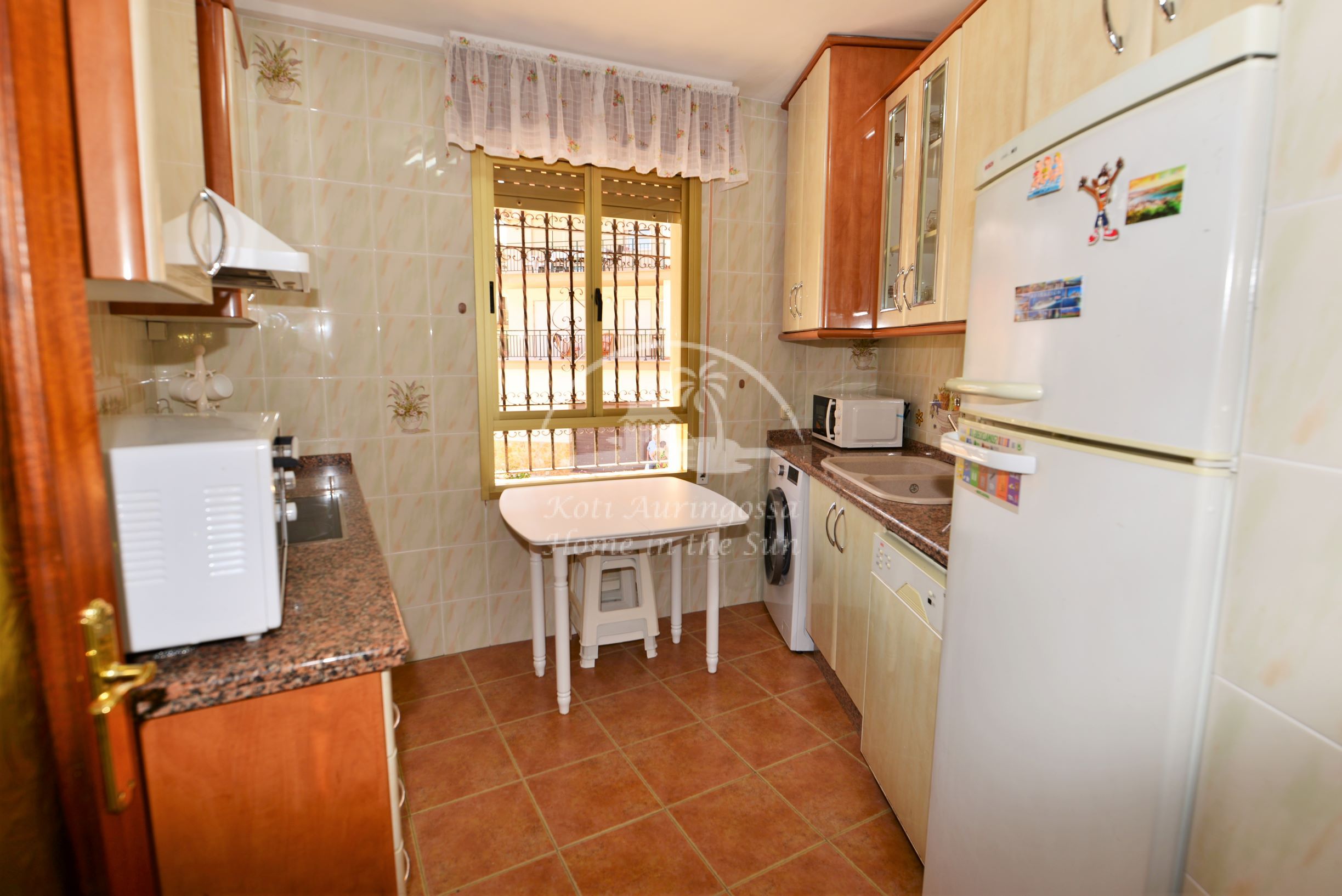Valoisa olohuone ja ruokailutila, olohuoneesta on käynti länteen päin olevalle aurinkoiselle terassille. Täydellisesti varustettu keittiö, jossa on myös astianpesukone. 2 makuuhuonetta. 1 kylpyhuone. Olohuoneessa on ilmastointi lämpöpumppu. Nopea valokuitu wifi internet valmiina, joka sisältyy vuokraan. Kaikki keskustan palvelut lähellä.