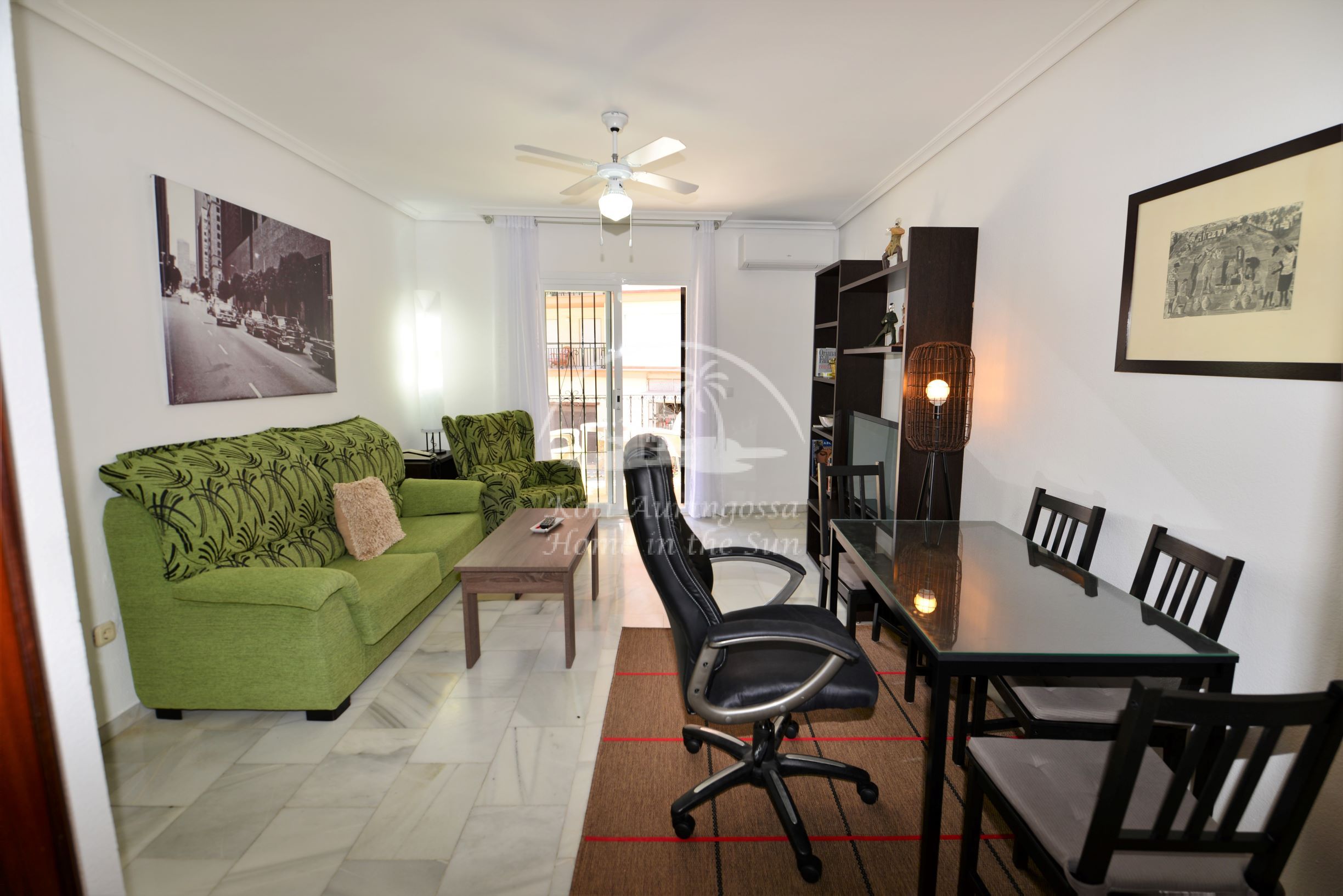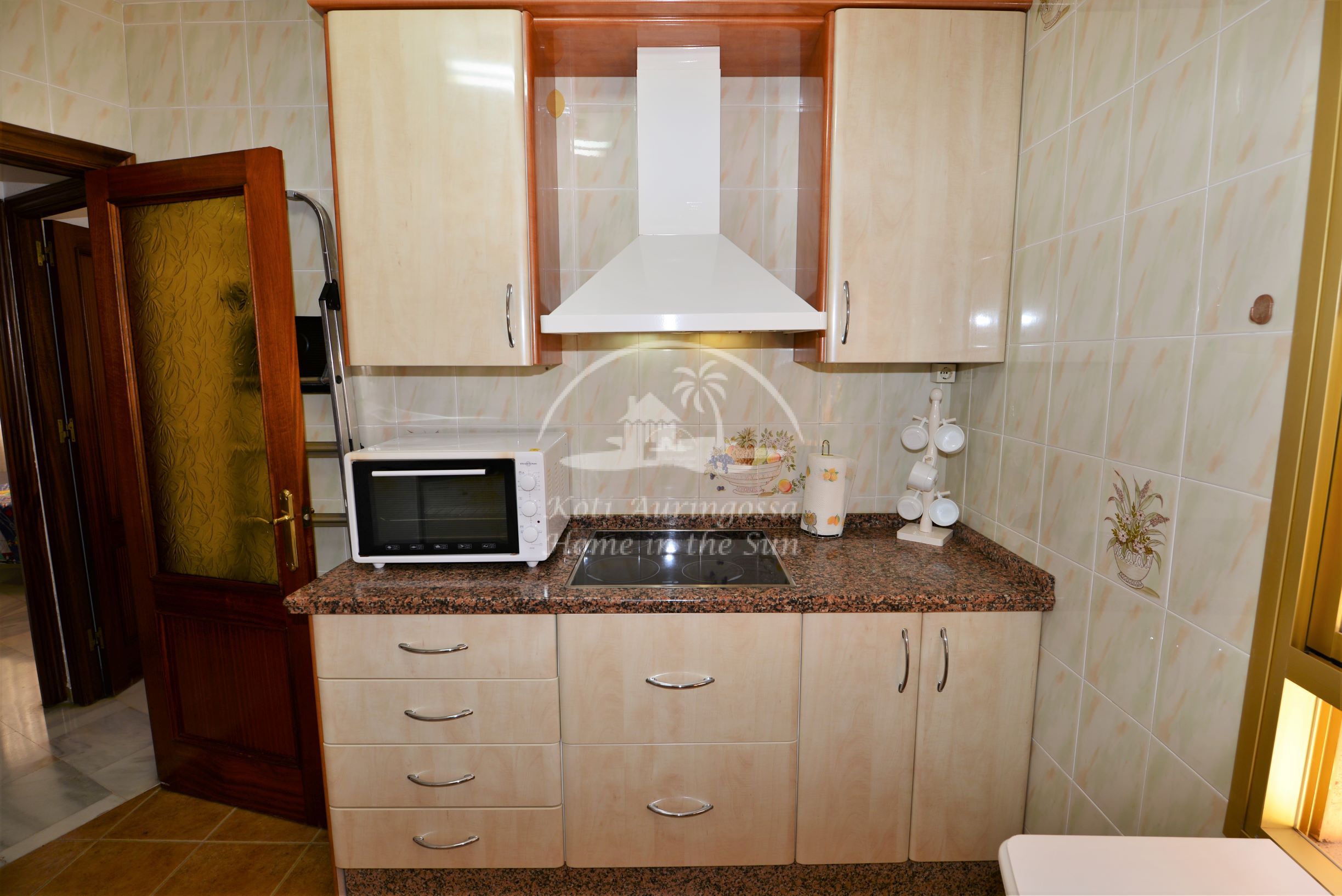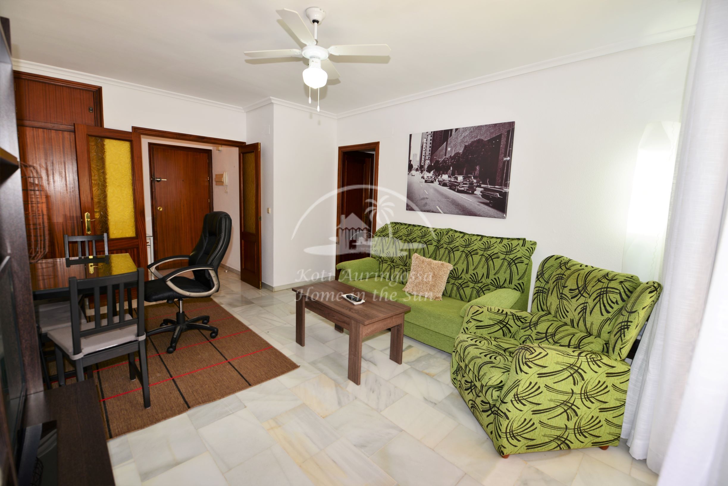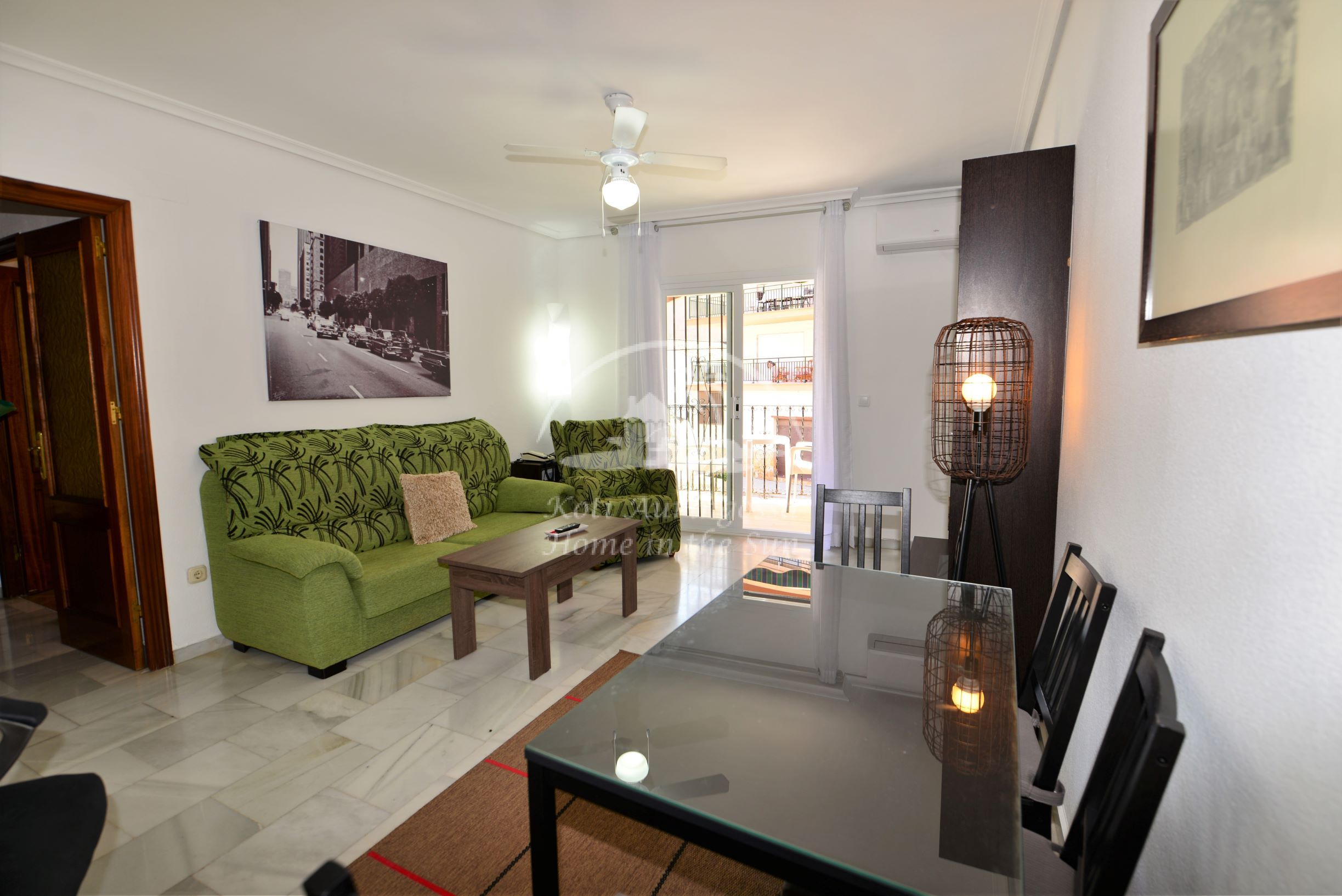 Valoisa olohuone ja ruokailutila, olohuoneesta on käynti länteen päin olevalle aurinkoiselle terassille. Täydellisesti varustettu keittiö, jossa on myös astianpesukone. 2 makuuhuonetta. 1 kylpyhuone. Olohuoneessa on ilmastointi lämpöpumppu. Nopea valokuitu wifi internet valmiina, joka sisältyy vuokraan. Kaikki keskustan palvelut lähellä.