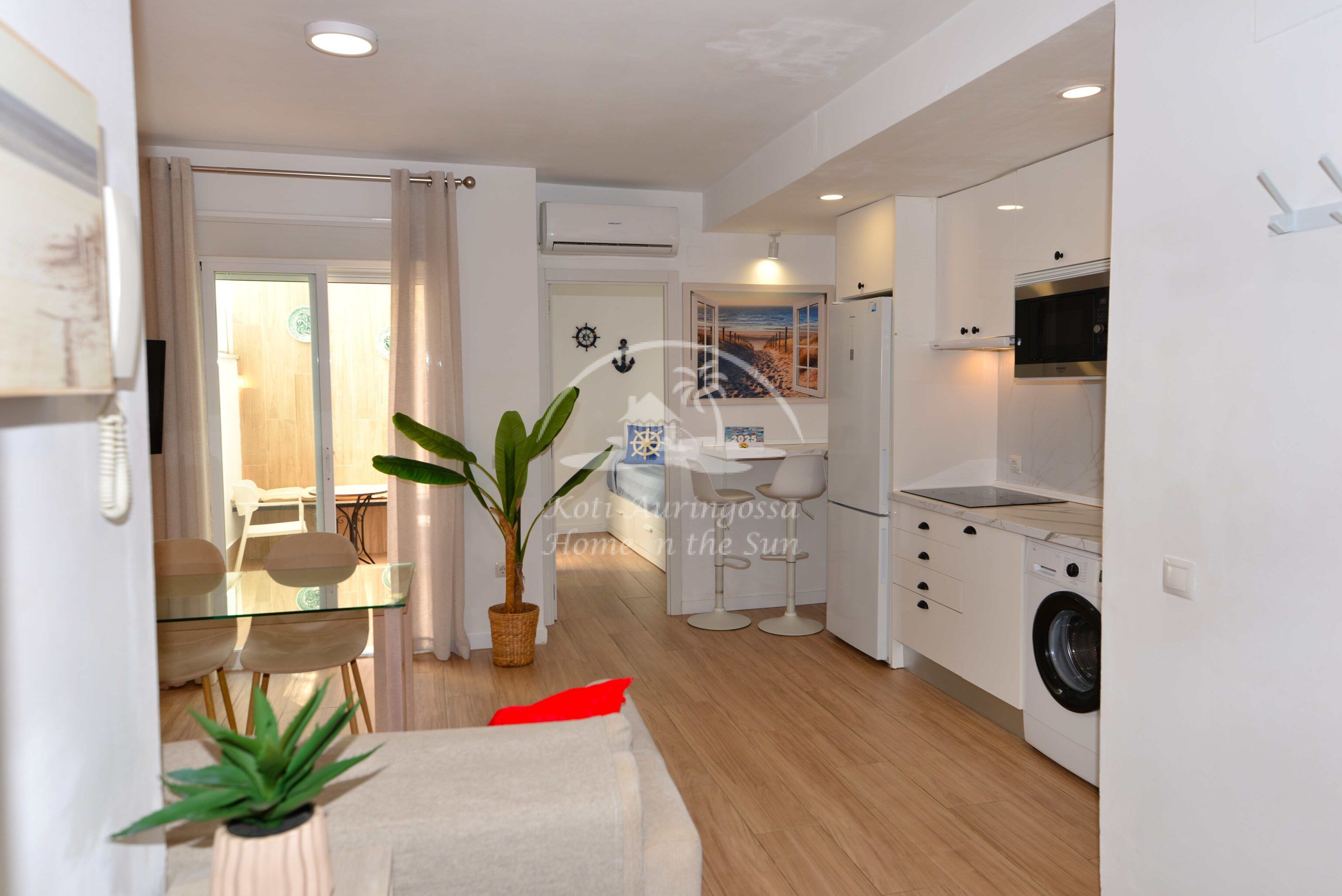Asunto on kodikkaasti kalustettu ja sisustettu vaalein värein, pohjoismaalaiseen tyyliin. valoisa olohuone ja ruokailutila. Moderni avokeittiö. Olohuoneesta ja toisesta makuuhuoneesta on käynti etelään päin olevalle terassipatiolle. 2 makuuhuonetta. 1 kylpyhuone. Ilmastointi lämpöpumppu olohuoneessa. Nopea valokuitu wifi internet yhteys valmiina. Erittäin rauhallinen katu ja asuinalue. Kaikki keskustan palvelut lähellä. Merenrantaan 300 metriä.