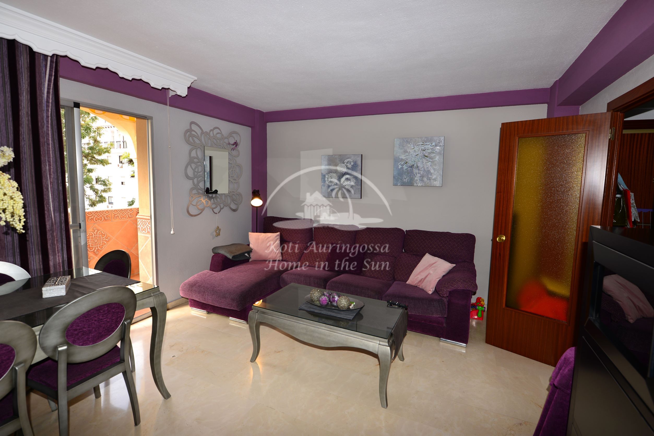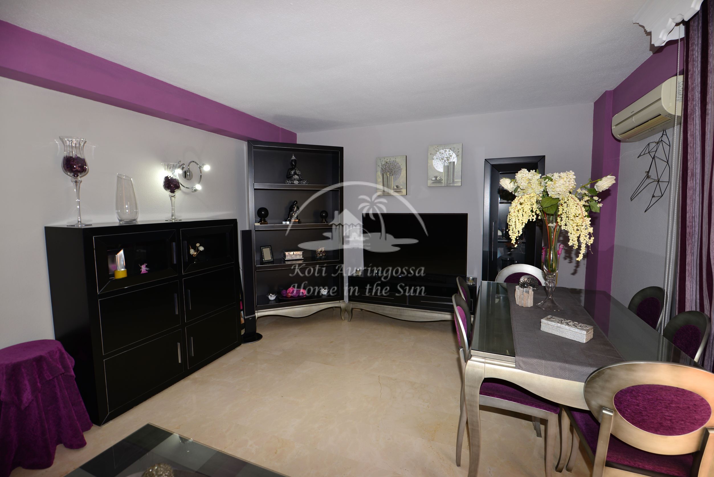 Asunto on kauniisti kalustettu ja sisutettu lämpimillä tummilla väreillä. Valoisa olohuone ja ruokailutila. Olohuoneesta on käynti länteen päin olevalle aurinkoiselle terassille. Terassilta on kivat näkymät lähiympäristöön. Erillinen keittiö. 3 makuuhuonetta. 2 kylpyhuonetta. Olohuoneessa on ilmastointi lämpöpumppu. Taloyhtiössä on uima-allas, joka on auki vain kesäkuukaudet. Kaikki palvelut lähellä. Merenrantaan noin 400 metriä. Osoite: Calle Feria de Abril 8. Edif. Feria 2. 3 krs. Fuengirola.