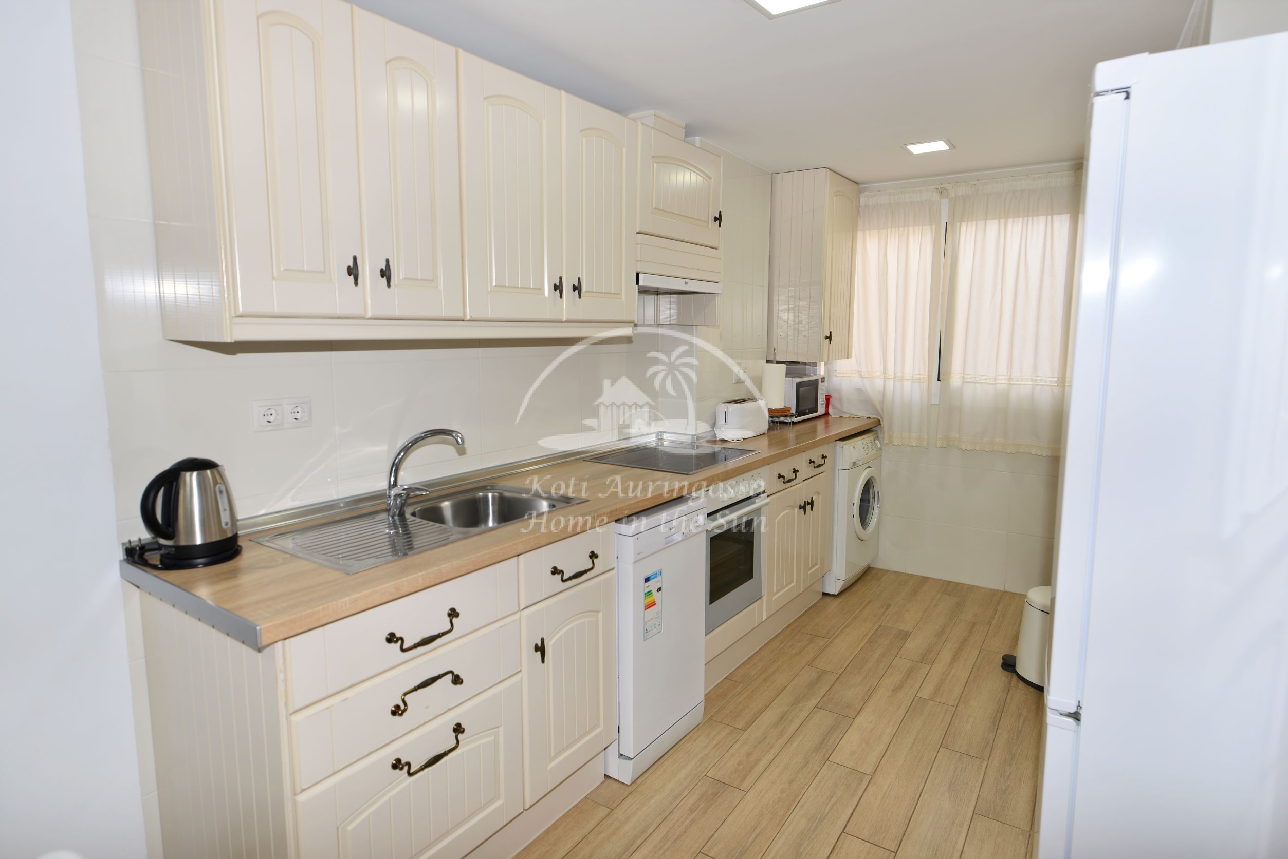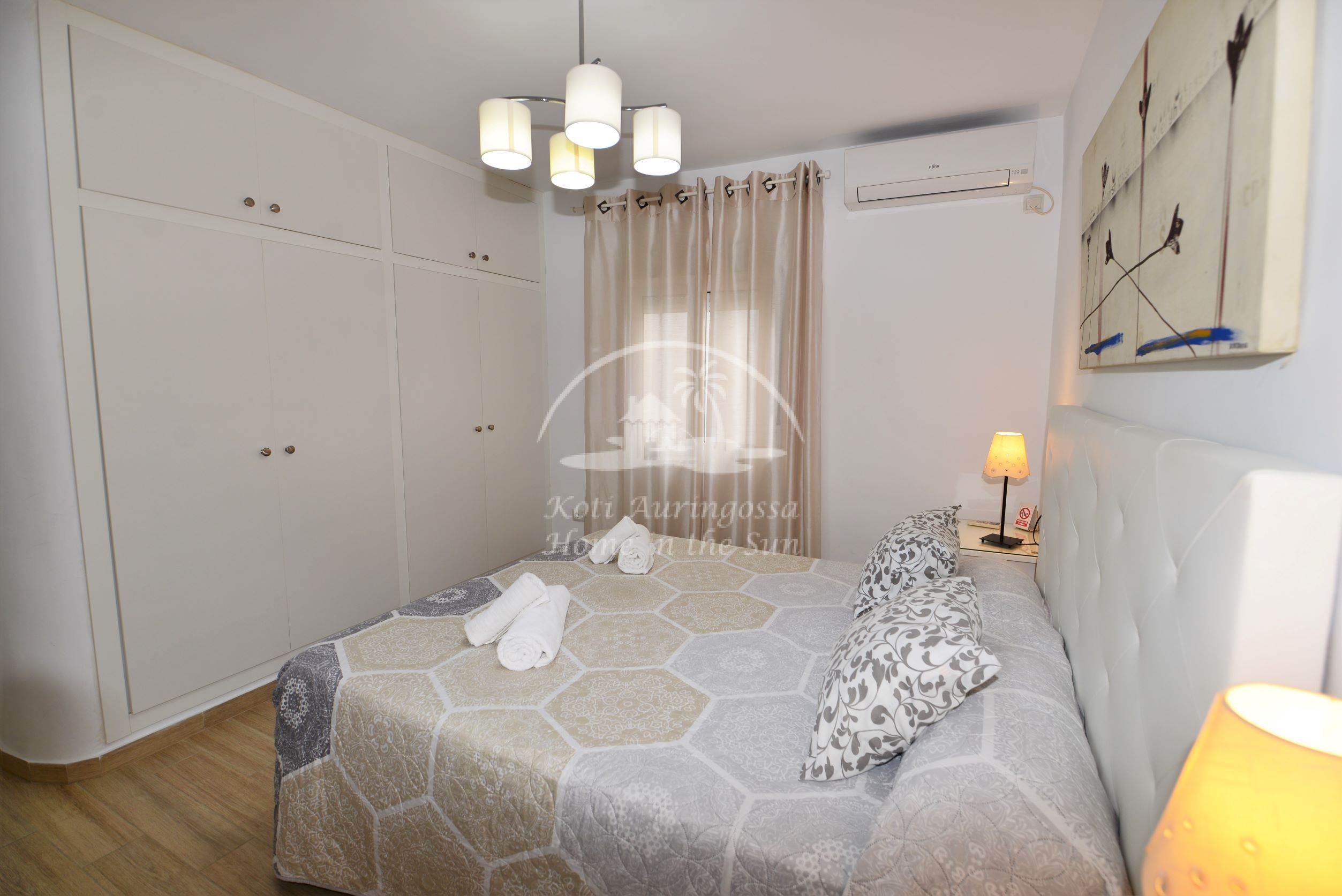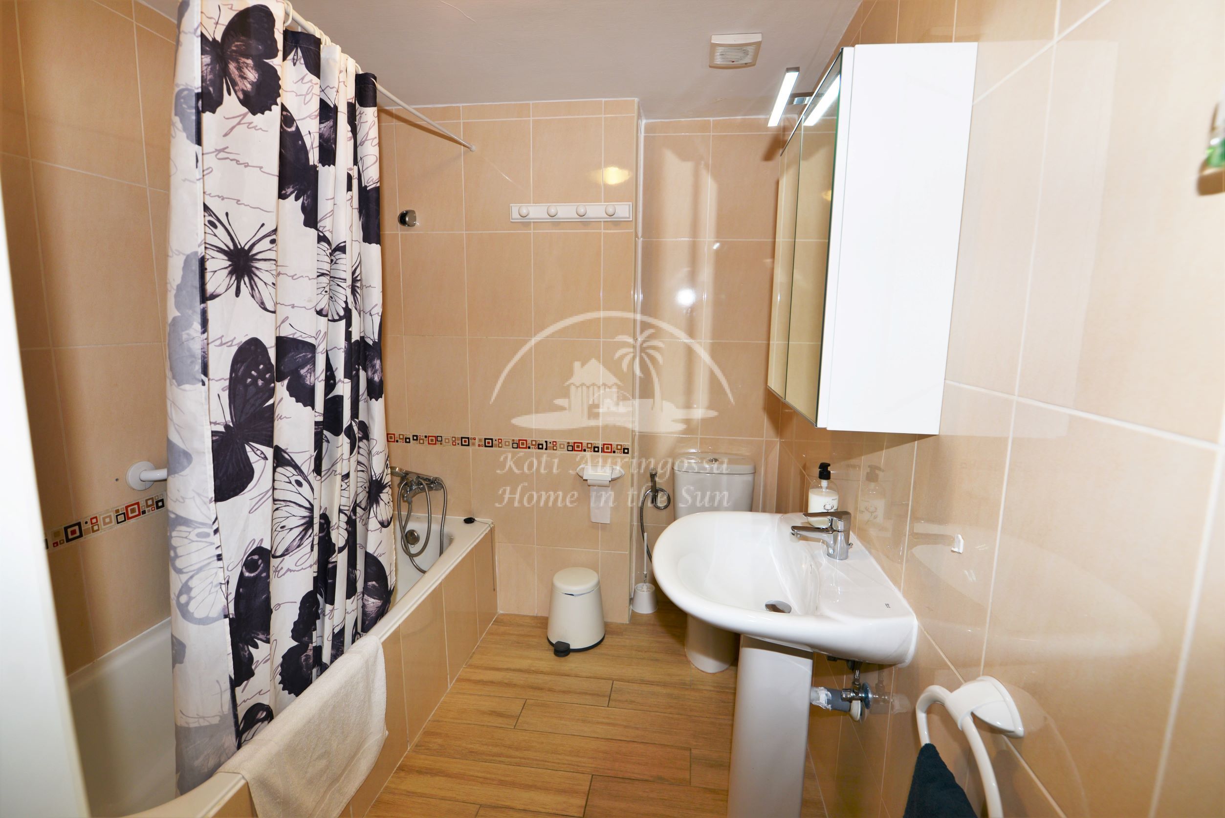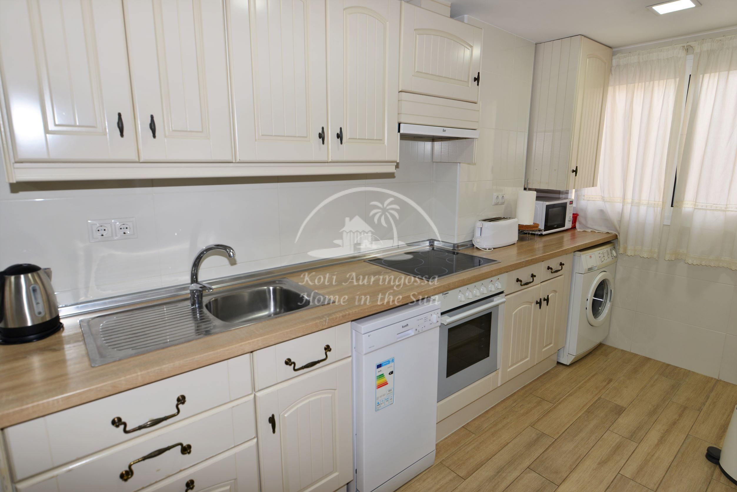 Asunto on erittäin kauniisti ja viihtyisästi kalustettu ja sisustettu, siinä on kodin tuntua heti ensi näkemällä. Avara valoisa olohuone ja ruokailutila. Olohuoneesta on käynti itään päin olevalle terassille. Moderni tilava keittiö jossa on tietenkin myös astianpesukone. 3 makuuhuonetta. 1 kylpyhuone. Olohuoneessa ja kaikissa kolmessa makuuhuoneessa on ilmastointi lämpöpumppu. Nopea valokuitu wifi internet yhteys valmiina joka sisältyy vuokraan. Netti sopimuksen ansiosta TV:ssä näkyy suomen ja monen muun ulkomaan kanavia. Tässä atloyhtiössä ei ole hissiä, joten tämä asunto ei sovi liikunta rajoitteisille. Tähän asuntoon otetaan myös lyhytaikaisia vuorokausi vuokrauksia. Kaikki keskustan palvelut lähellä. Merenrantaan 200 metriä.