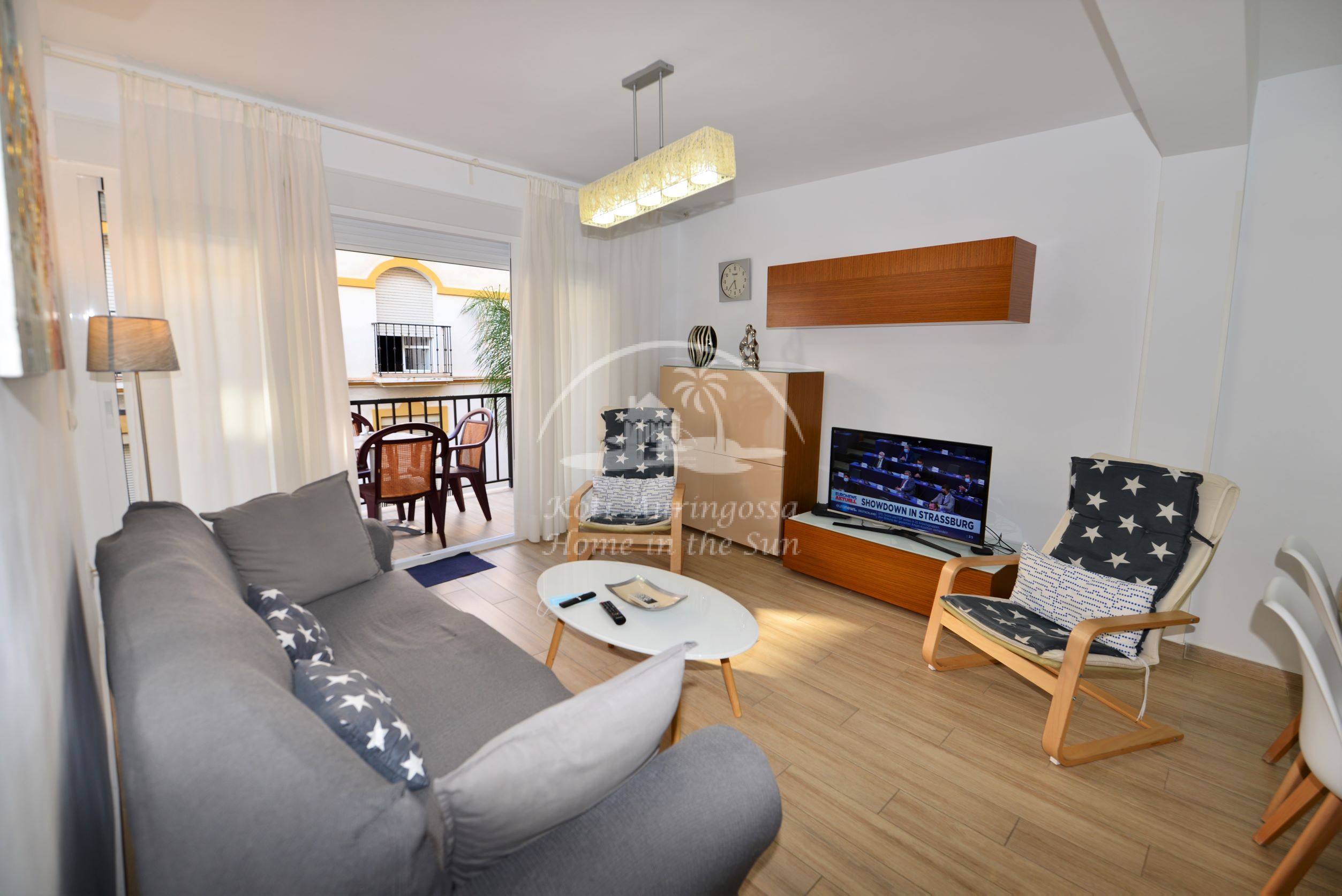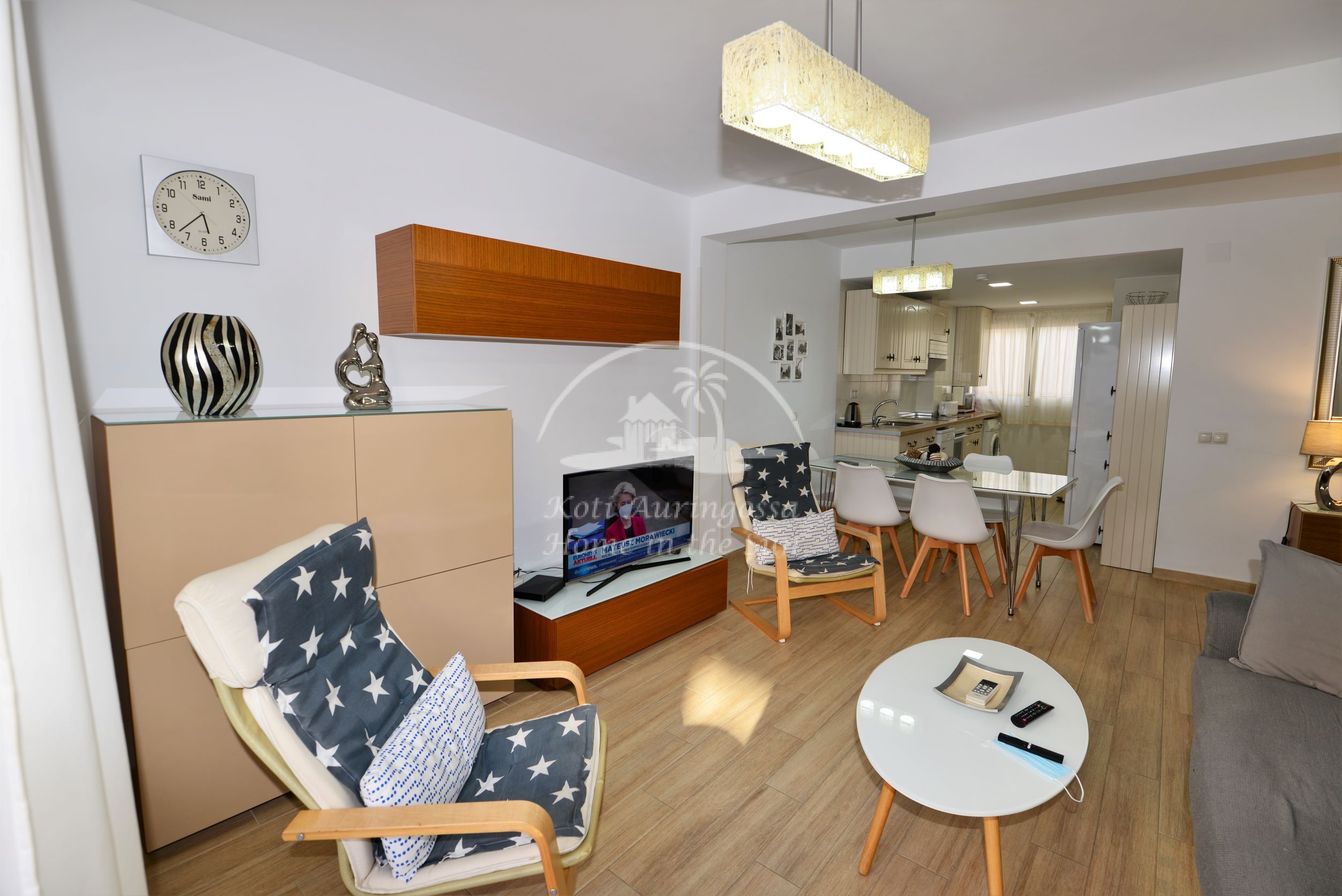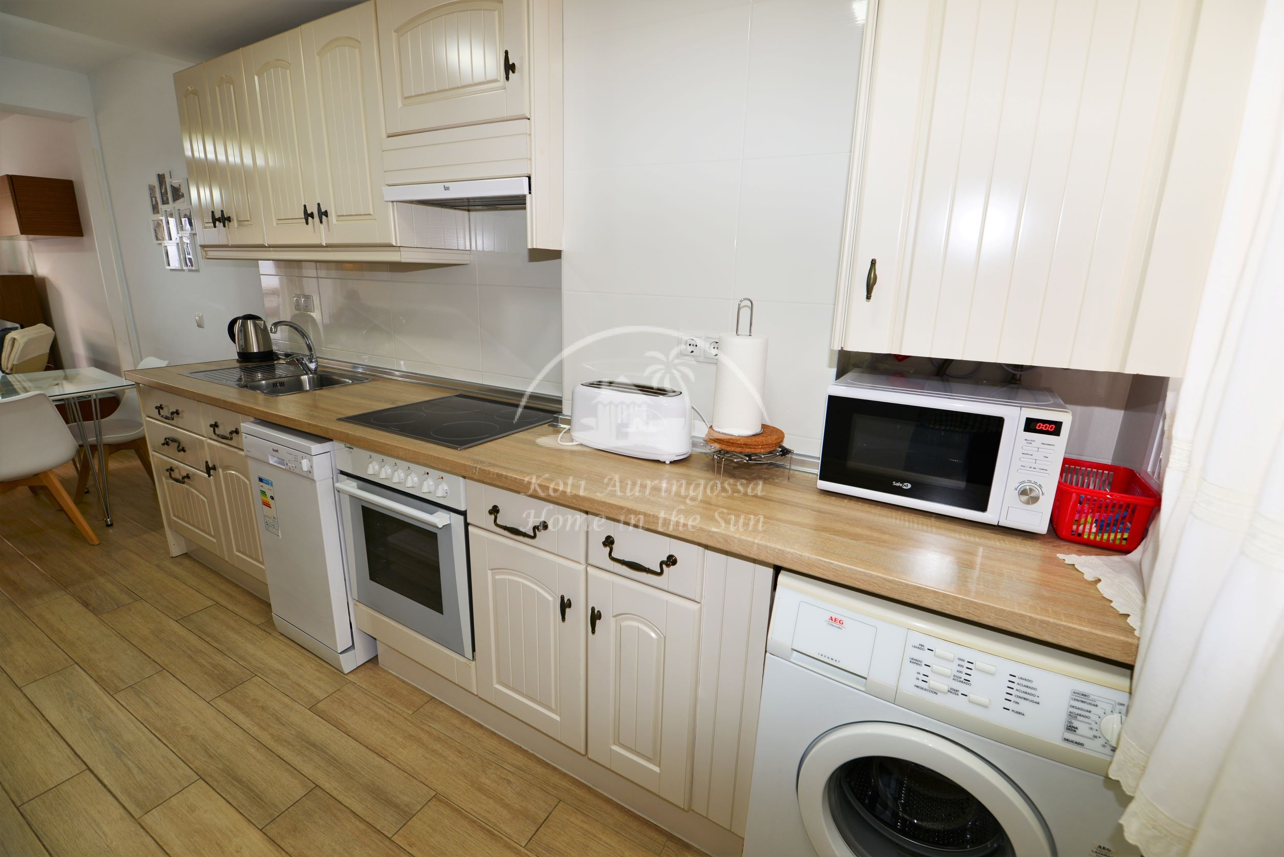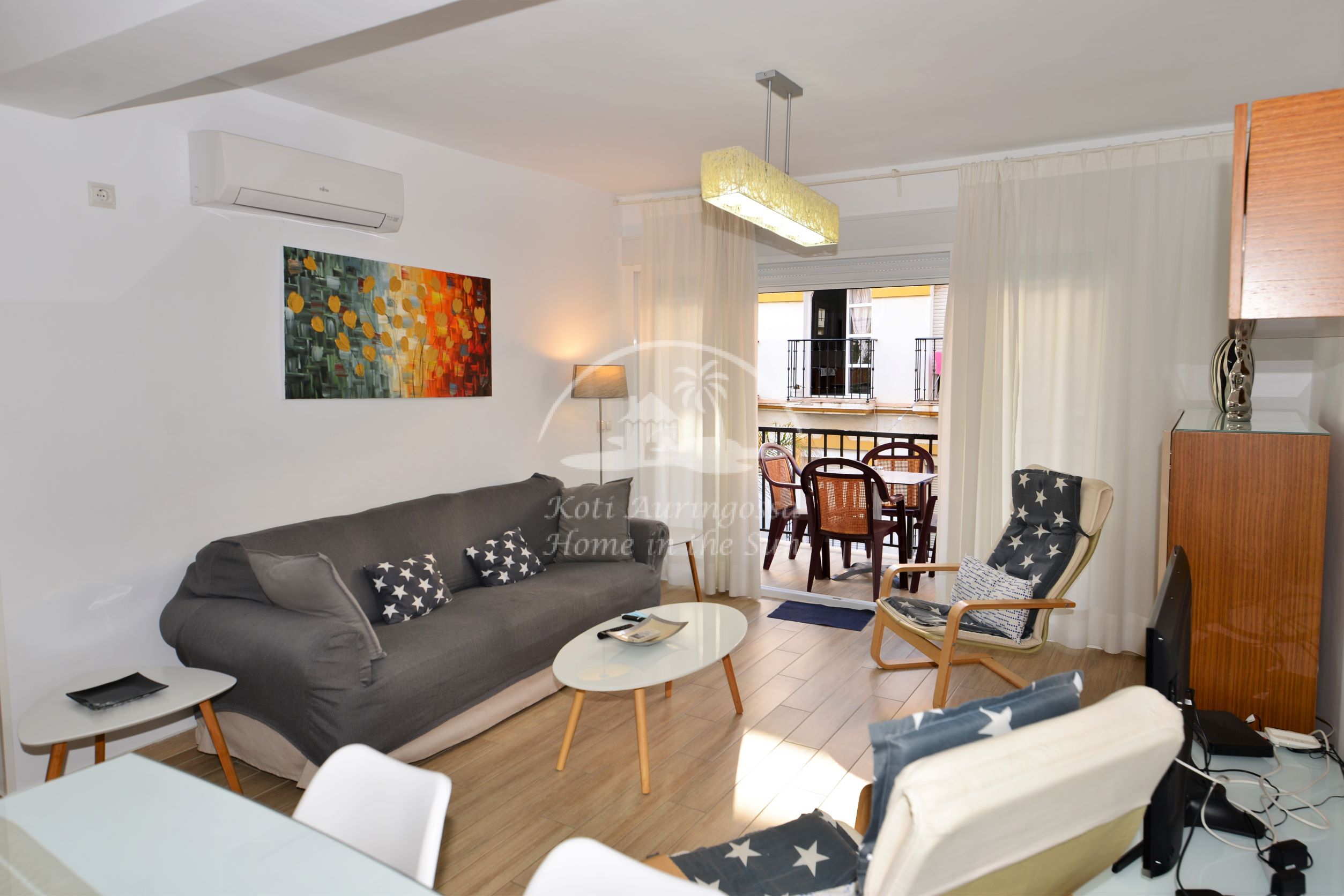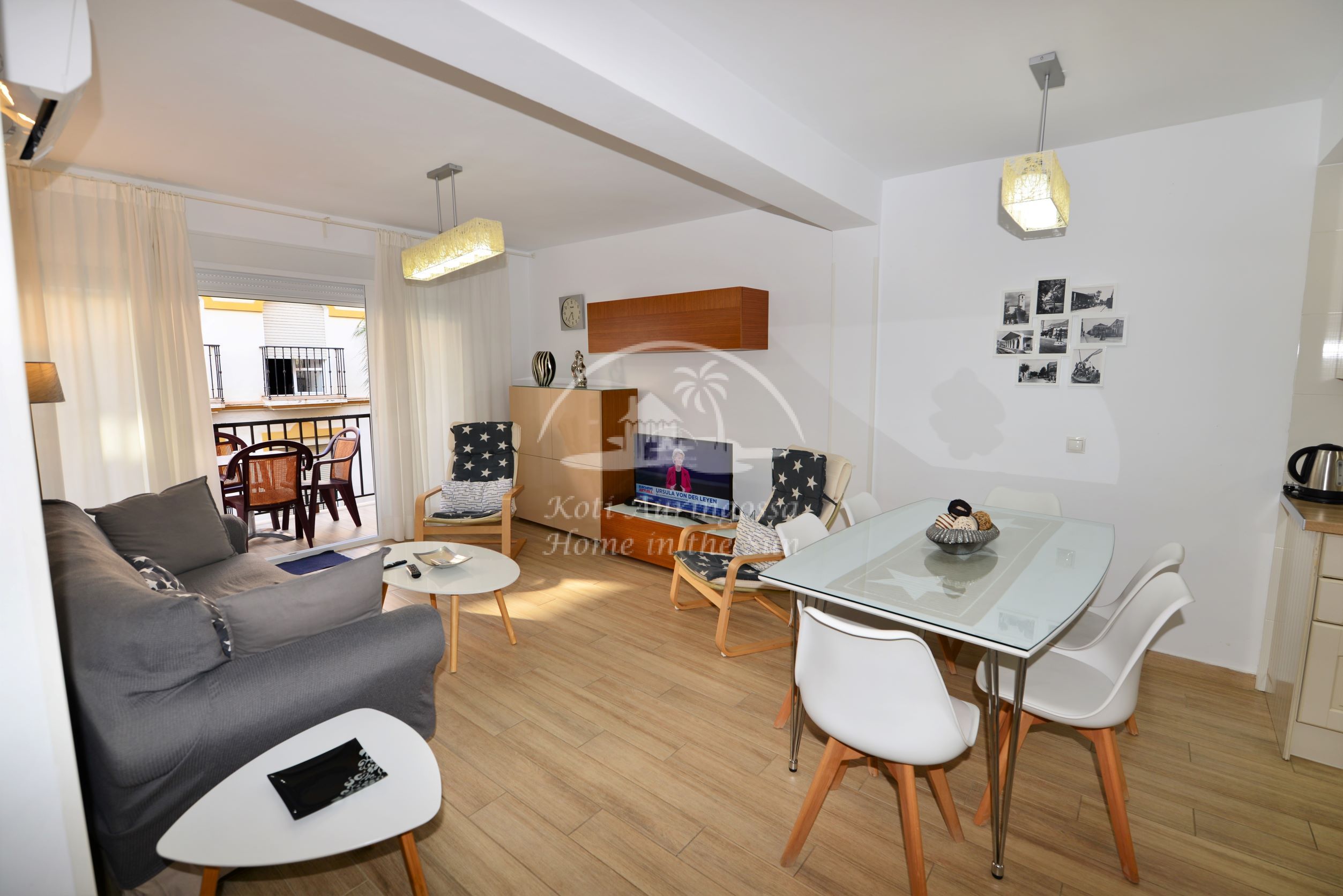 Asunto on erittäin kauniisti ja viihtyisästi kalustettu ja sisustettu, siinä on kodin tuntua heti ensi näkemällä. Avara valoisa olohuone ja ruokailutila. Olohuoneesta on käynti itään päin olevalle terassille. Moderni tilava keittiö jossa on tietenkin myös astianpesukone. 3 makuuhuonetta. 1 kylpyhuone. Olohuoneessa ja kaikissa kolmessa makuuhuoneessa on ilmastointi lämpöpumppu. Nopea valokuitu wifi internet yhteys valmiina joka sisältyy vuokraan. Netti sopimuksen ansiosta TV:ssä näkyy suomen ja monen muun ulkomaan kanavia. Tässä atloyhtiössä ei ole hissiä, joten tämä asunto ei sovi liikunta rajoitteisille. Tähän asuntoon otetaan myös lyhytaikaisia vuorokausi vuokrauksia. Kaikki keskustan palvelut lähellä. Merenrantaan 200 metriä.