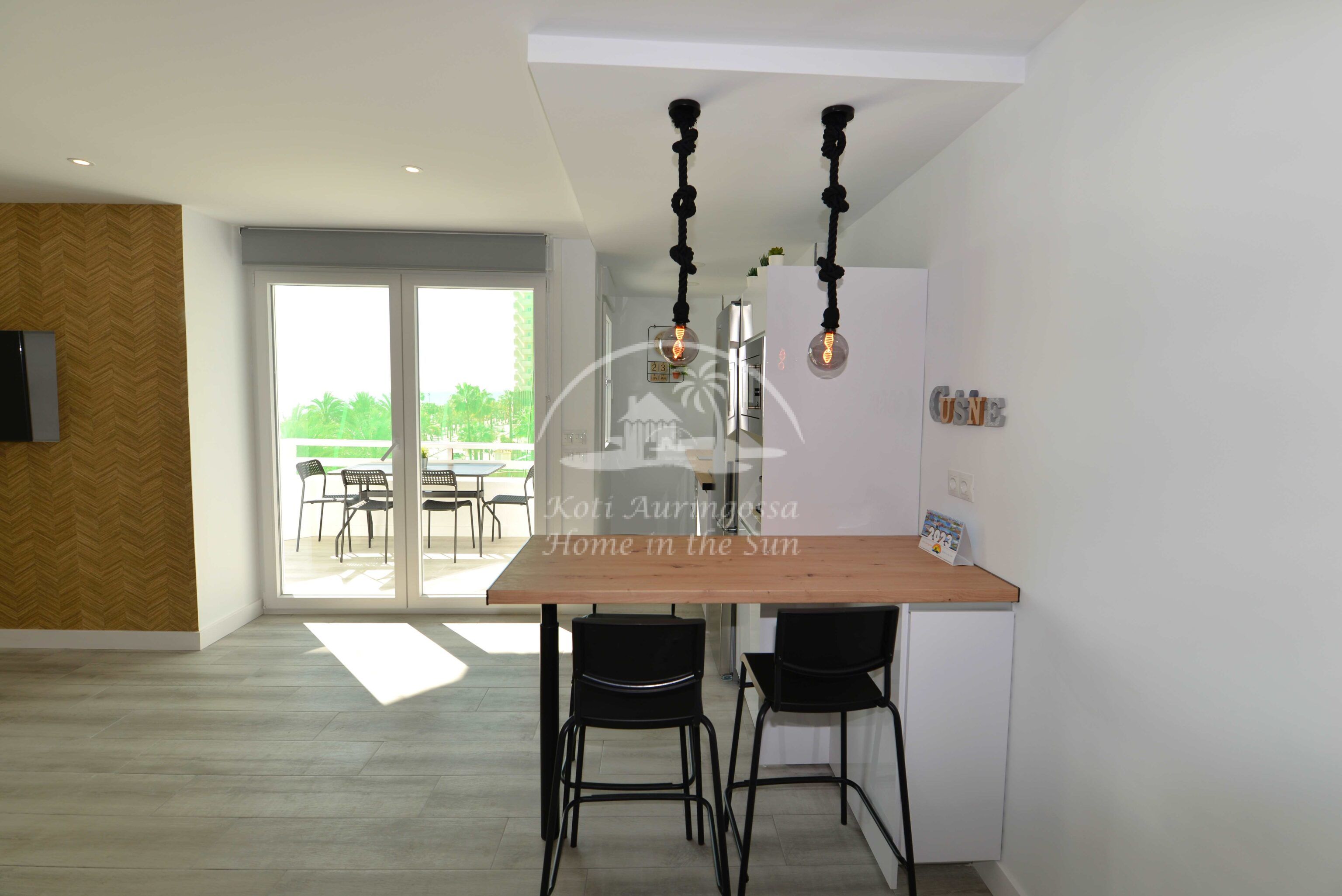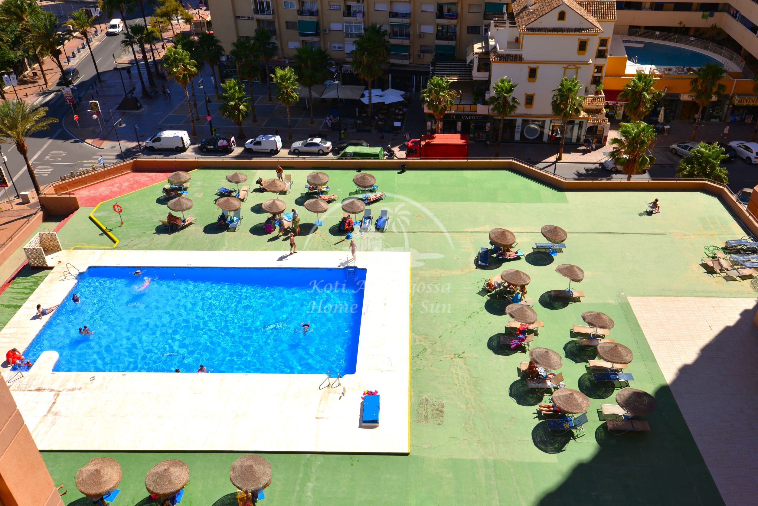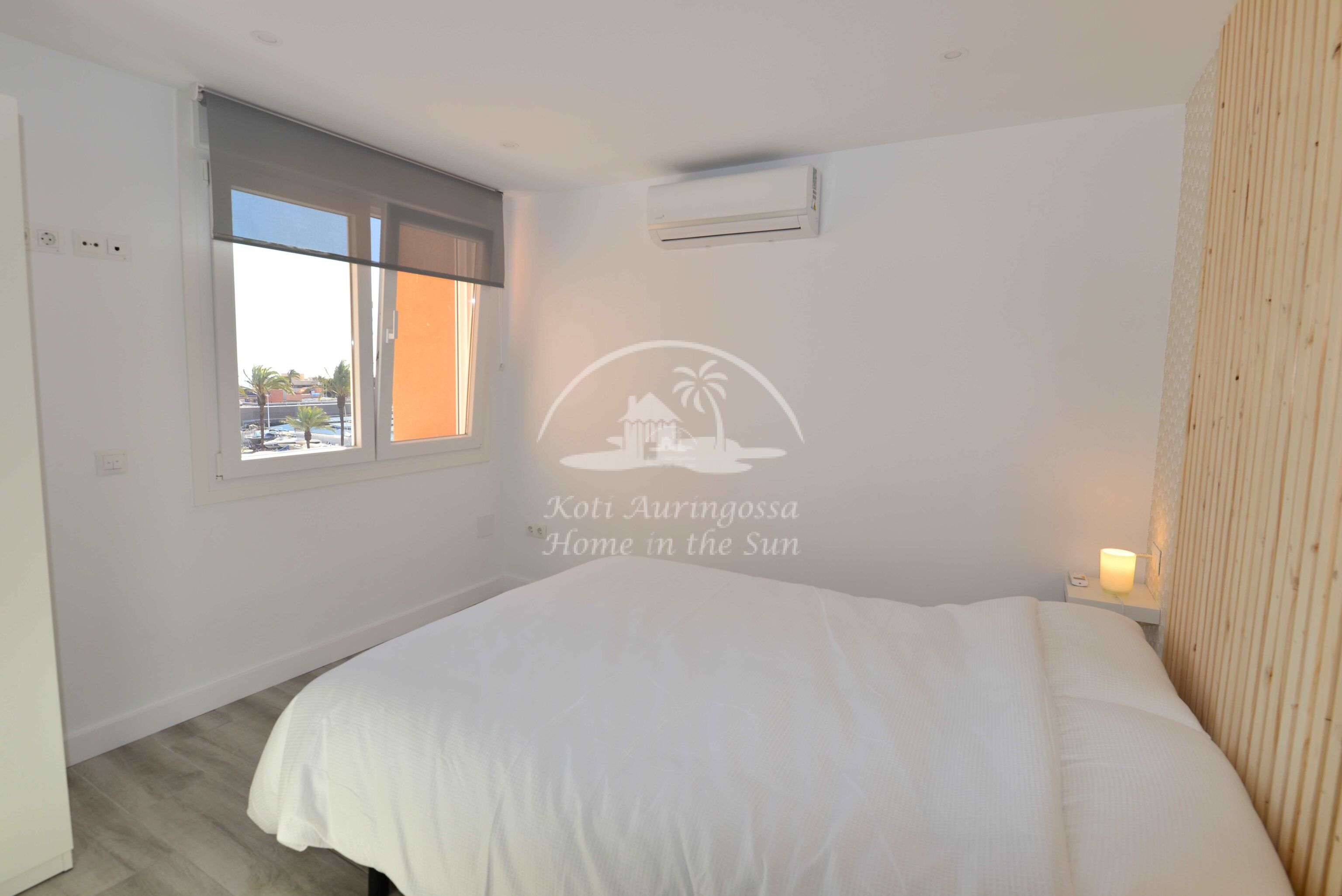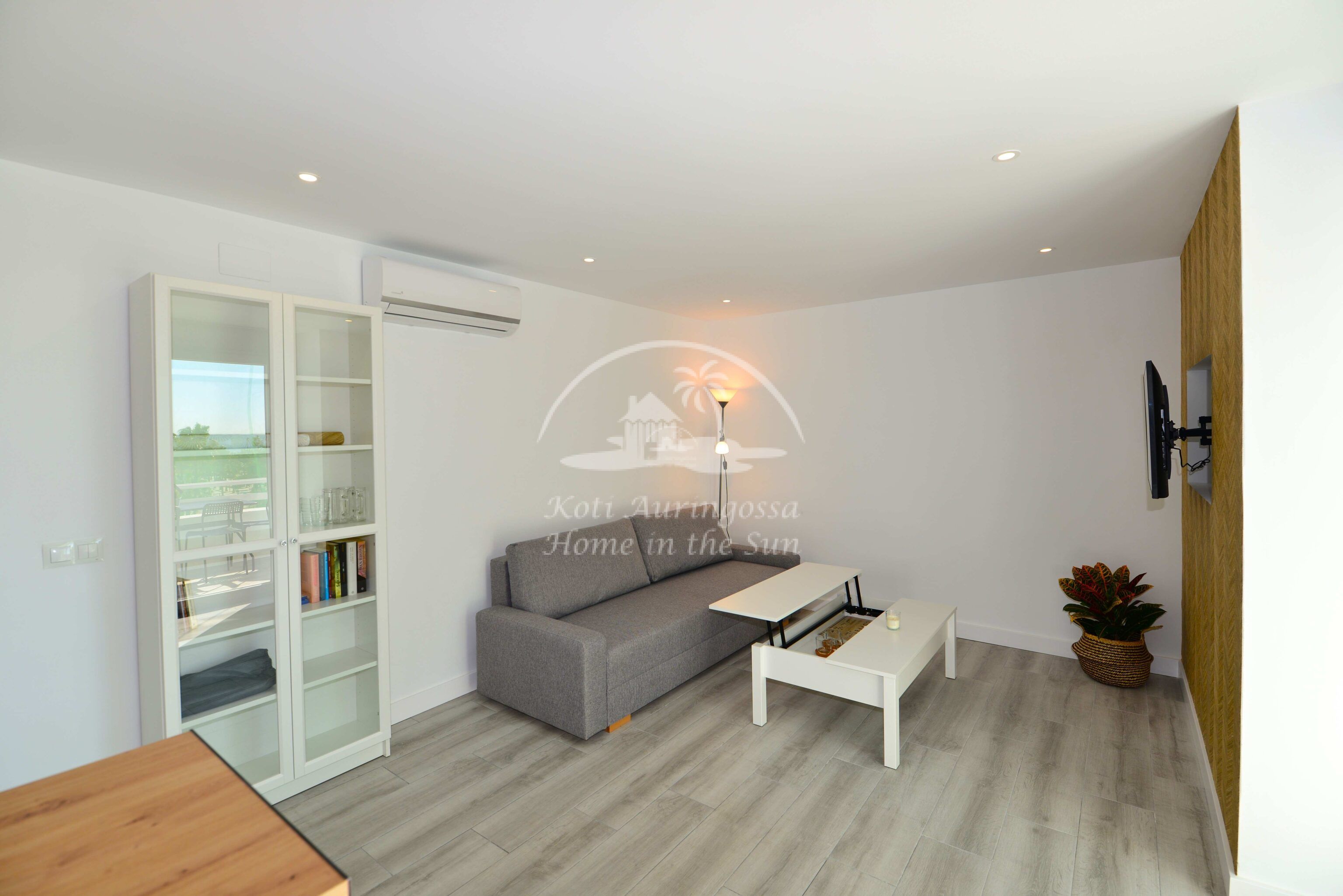 Tässä on kodin tuntua heti ensi näkemällä. Valoisa olohuone ja ruokailutila. Olohuoneen sohva on vuodesohva. Moderni avokeittiö, jossa on myös astianpesukone. Olohuoneesta on käynti reilun kokoiselle länteen päin olevalle aurinkoiselle terassille. Terassilta on hienot näkymät merelle ja rantakadulle. Kuvien otto hetkellä oli terassin edessä julkisivu remontin suoja verkko, joka poistuu lähipäivinä. 1 makuuhuone, josta kauniit näkymät merelle ja rantakadulle. Ilmastointi lämpöpumppu olohuoneessa ja makuuhuoneessa. Nopea valokuitu wifi internet yhteys valmiina, joka sisältyy vuokraan. Taloyhtiössä on uima-allas, jonka ympärillä runsaasti auringonotto tilaa, uima-allas on auki vain kesäkuukausina. Kaikki keskustan palvelut lähellä. Merenrantaan 100 metriä.