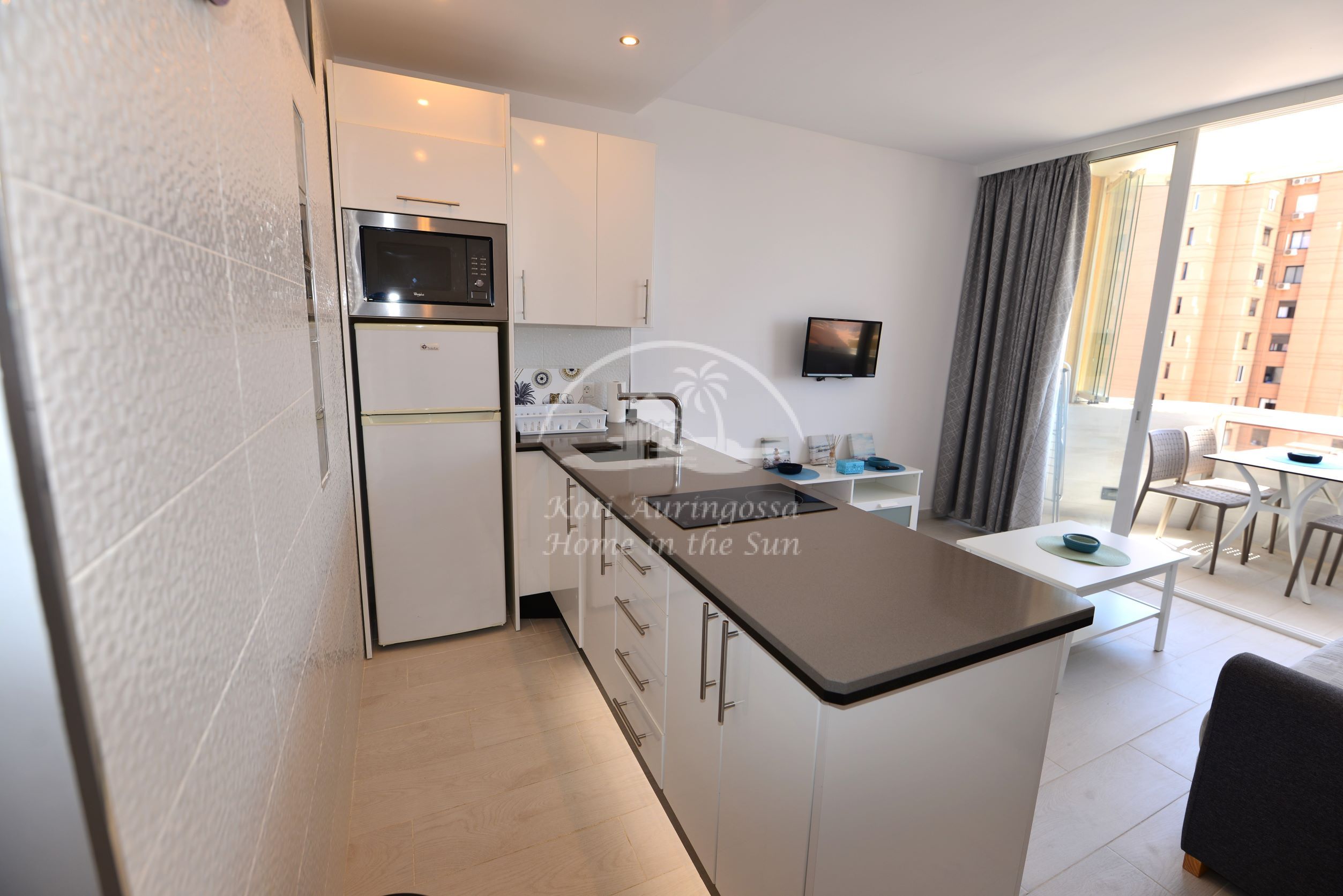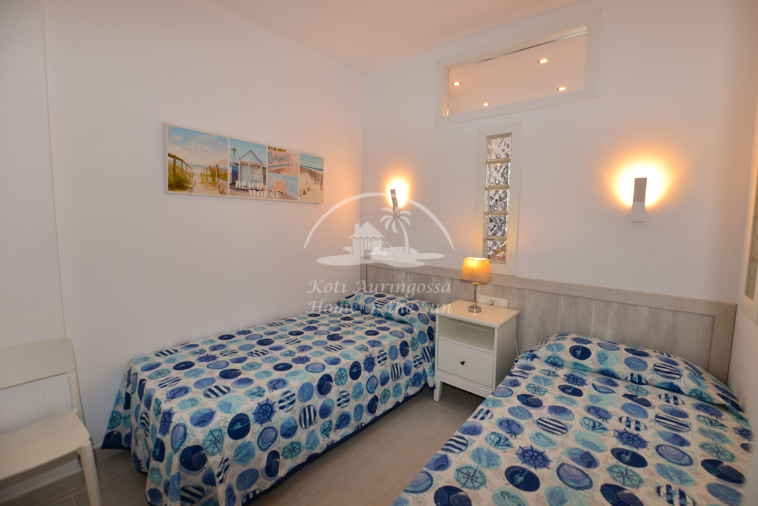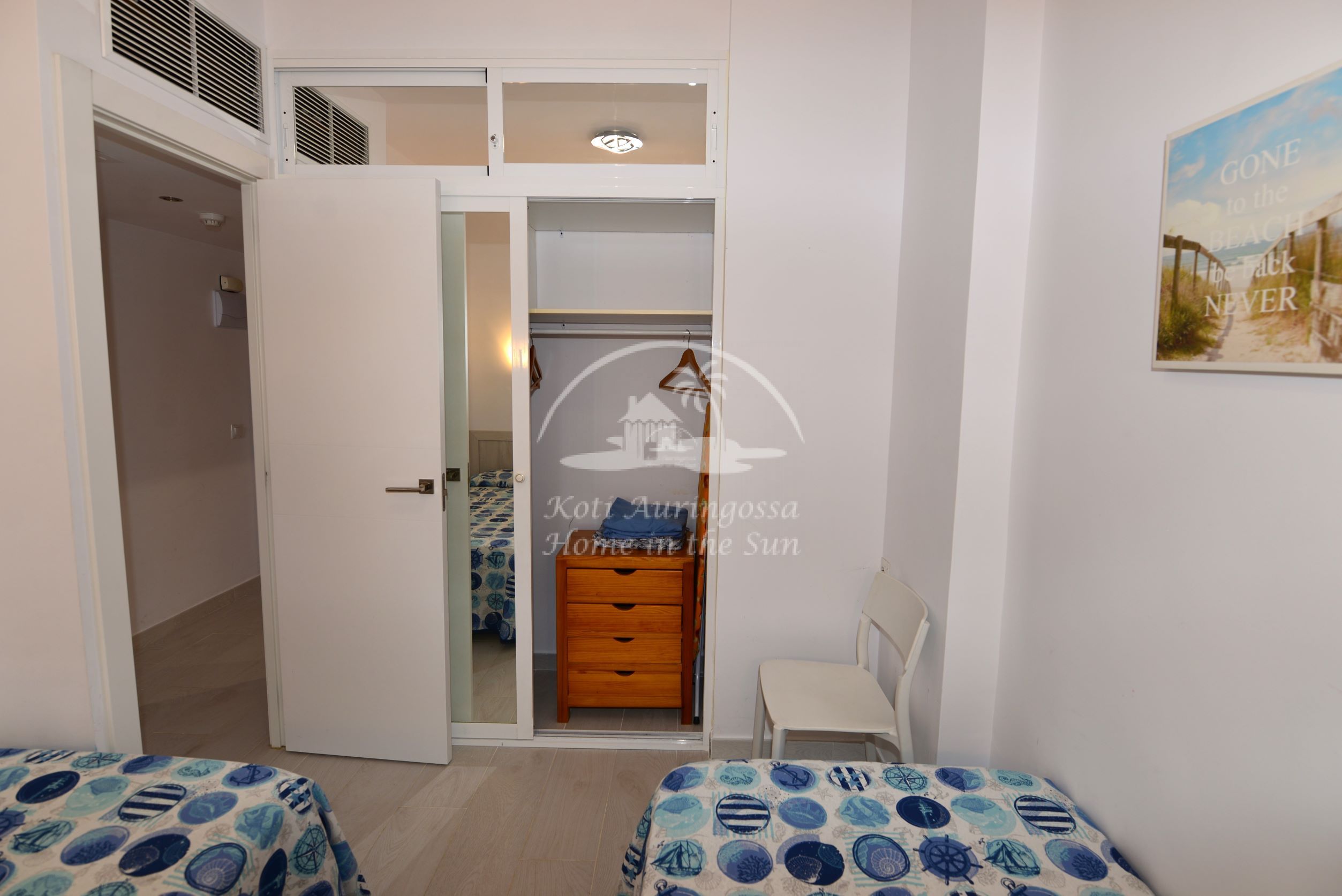 1 makuuhuone, jossa kaksi 90cm leveää sänkyä. 1 kylpyhuone suihkulla. Ilmastointi lämpöpumppu olohuoneessa ja makuuhuoneessa. Nopea valokuitu wifi internet yhteys. Taloyhtiössä torre 2 edessä on suuri uima-allas, jonka ympärillä runsaasti auringonotto tilaa. Uima-allas on auki vain kesäkuukausina Toukokuusta Lokakuun loppuun. Kaikki keskustan palvelut lähellä.