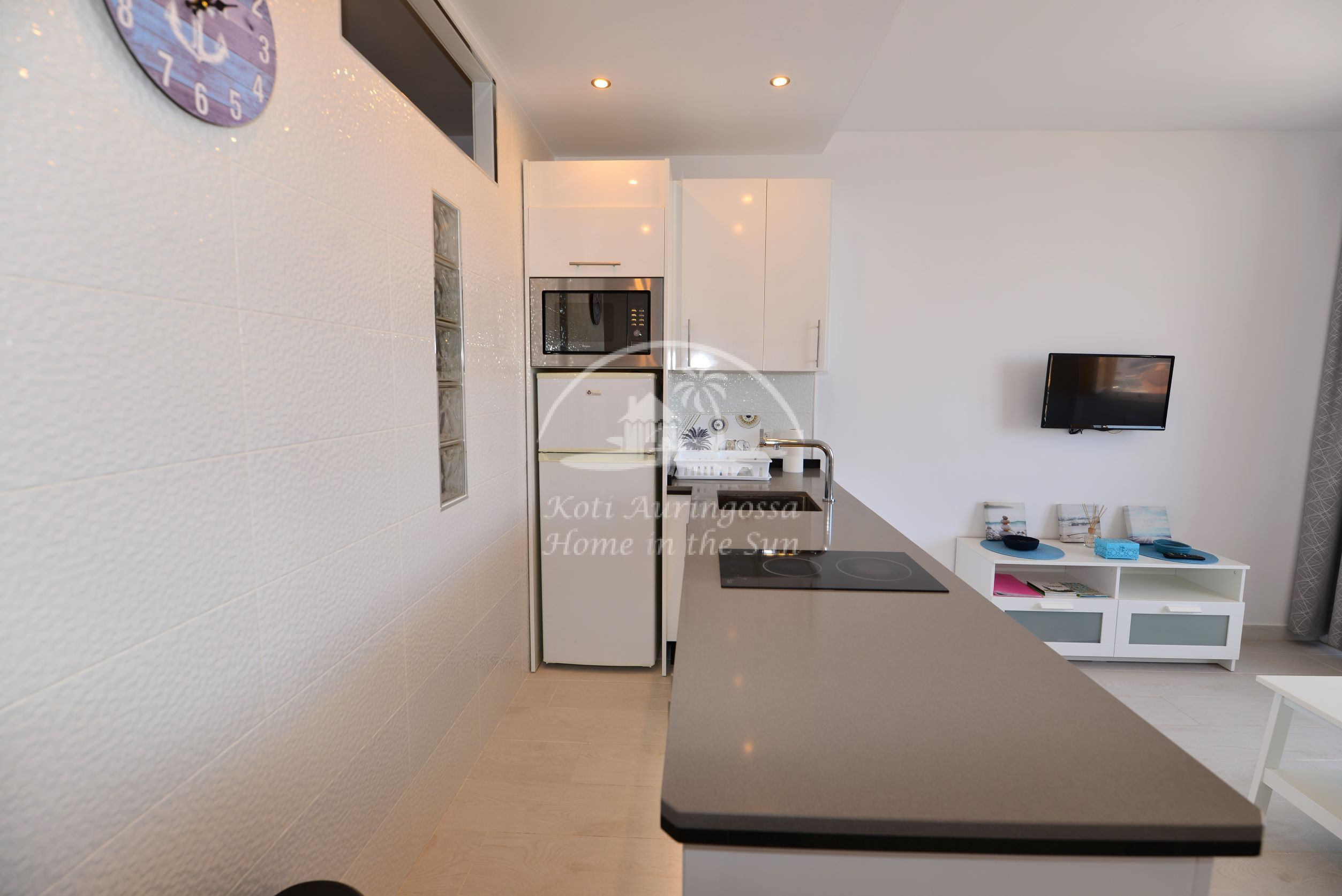 Asunto on kodikkaasti kalustettu ja sisustettu. Valoisa olohuone ja ruokailutila. Olohuoneesta käynti aurinkoiselle länteen päin olevalle terassille. Moderni avokeittiö, jossa kaikki toimii sähköllä.
