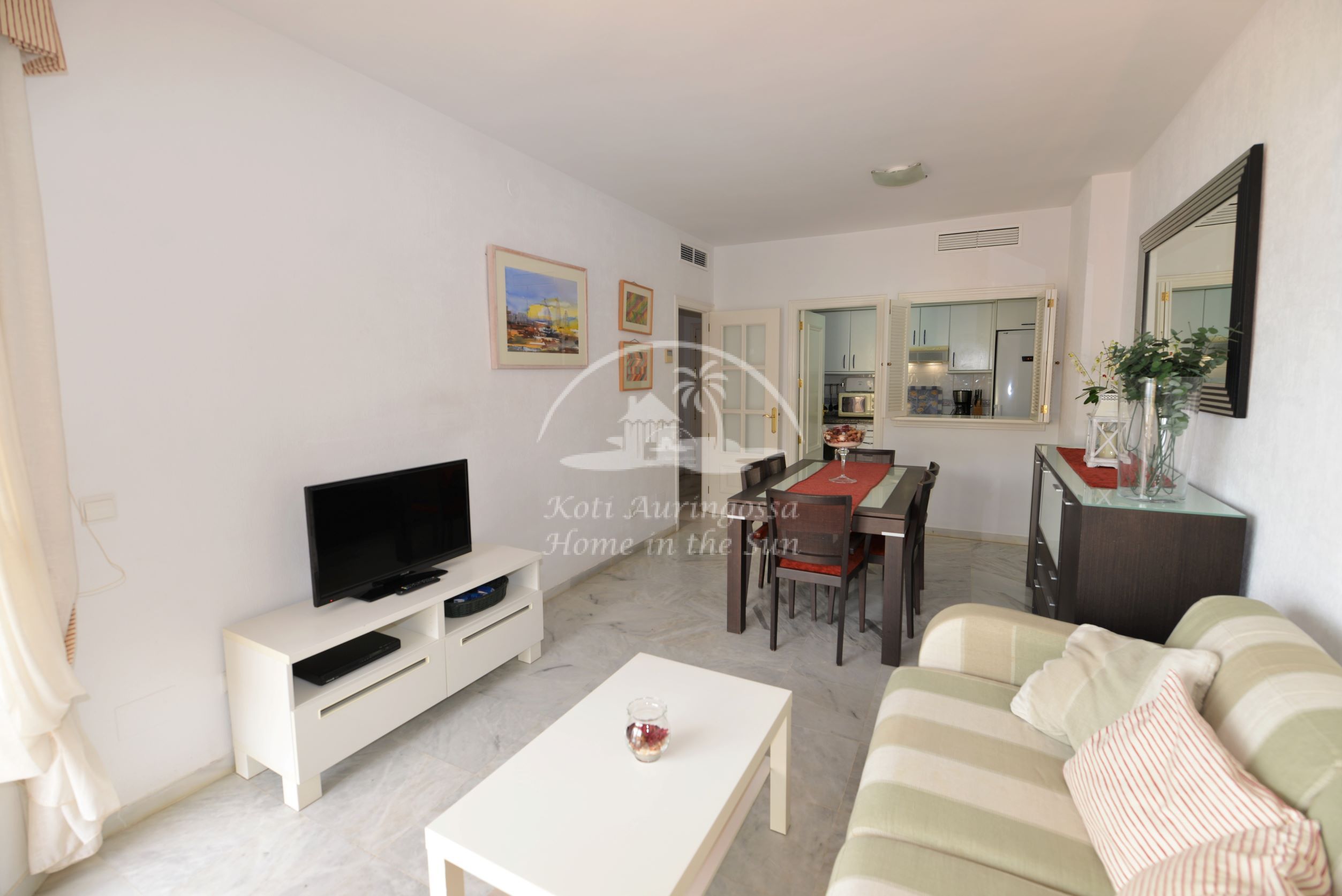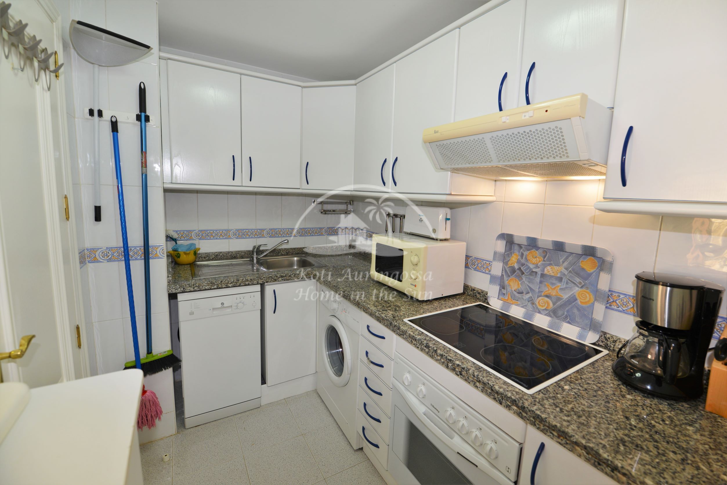 Asunto on kodikkaasti kalustettu ja sisustettu. Valoisa olohuone ja ruokailutila. Olohuoneesta sekä molemmista makuuhuoneista on käynti itään päin olevalle aamu aurinkoiselle terassille. Terassilta on hienot näkymät merelle ja rantakadulle. Erillinen keittiö jossa on myös astianpesukone.