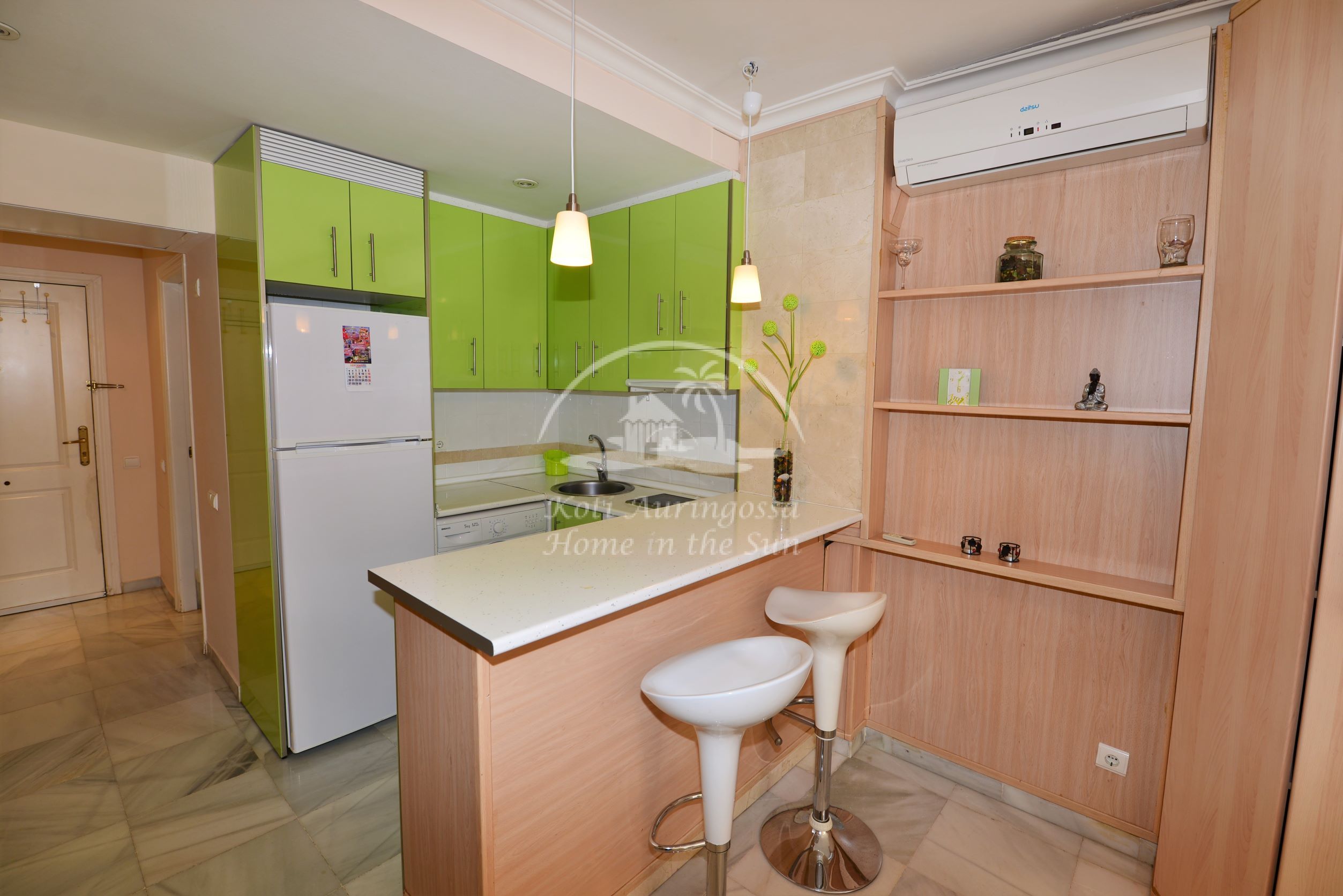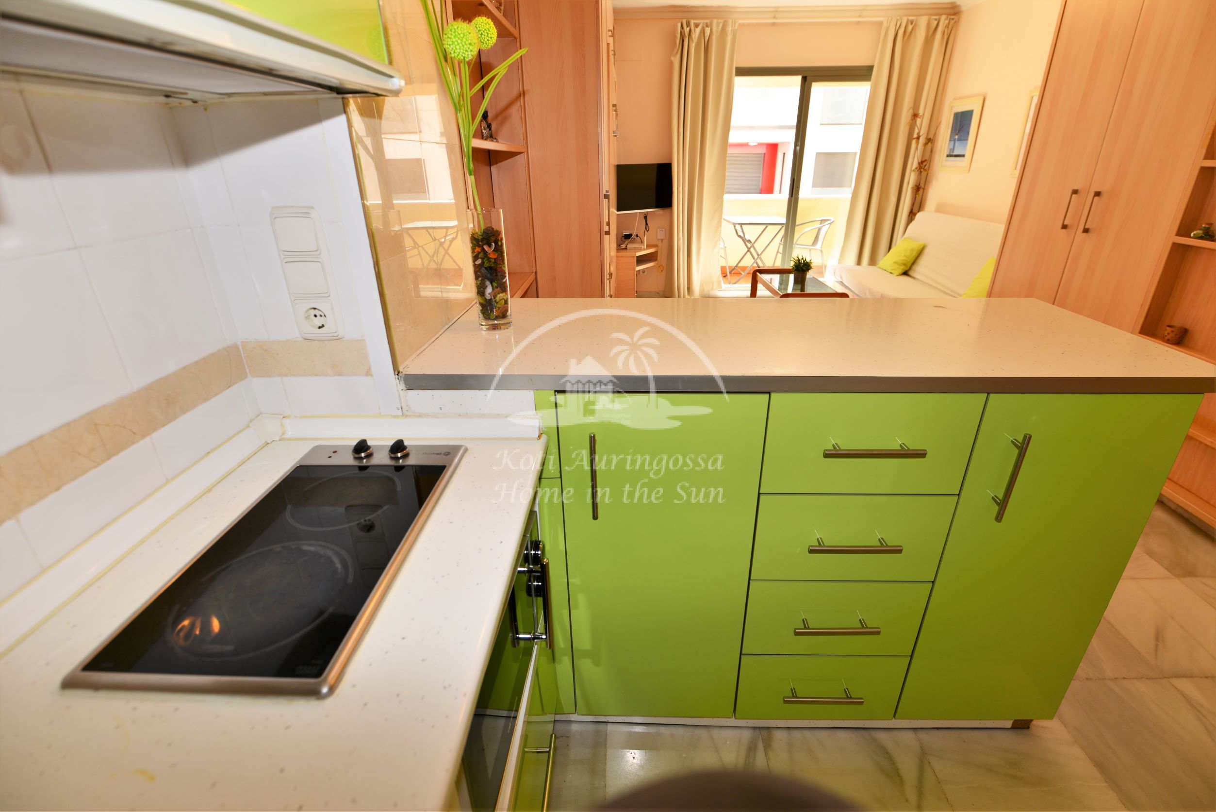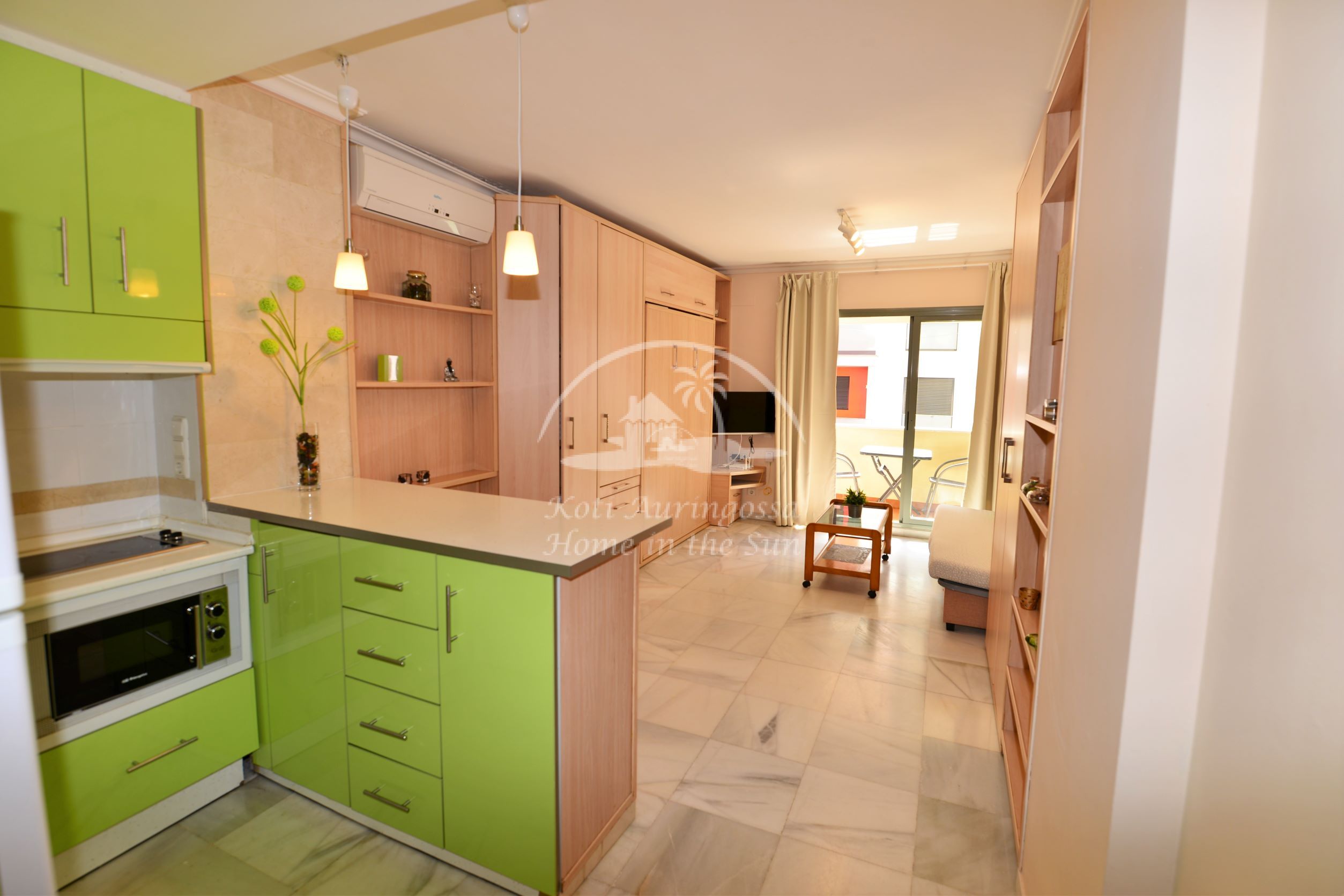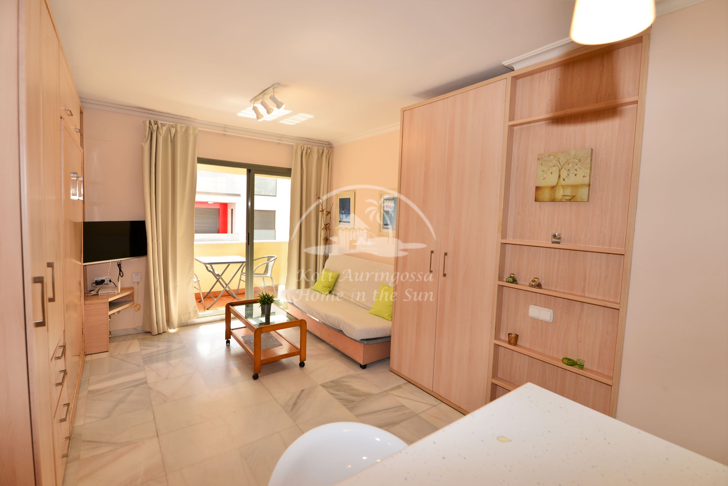 Asunto on kodikkaasti kalustettu ja sisustettu. Olohuoneessa on comerosta avautuva parivuode, ja sohva on myös kahden hengen vuodesohva, joten nukkumapaikkoja on neljälle. Olohuoneesta on käynti aurinkoiselle länteen päin olevalle terassille. Moderni amerikkalainen keittiö. 1 kylpyhuone kylpyammeella. Ilmastointi lämpöpumppu. Nopea valokuitu wifi internet yhteys valmiina. Taloyhtiössä on uima-allas. Kaikki keskustan palvelut lähellä. Merenrantaan 100 metriä.