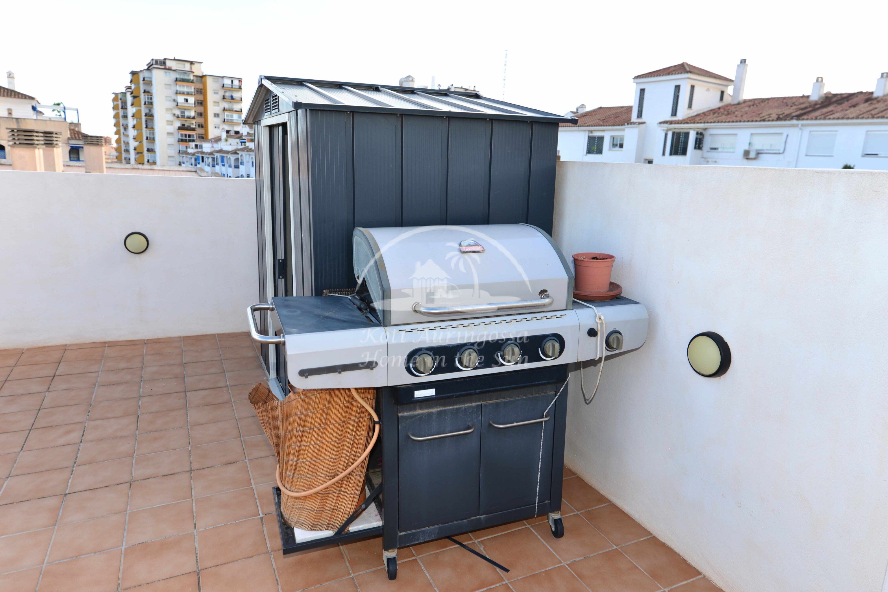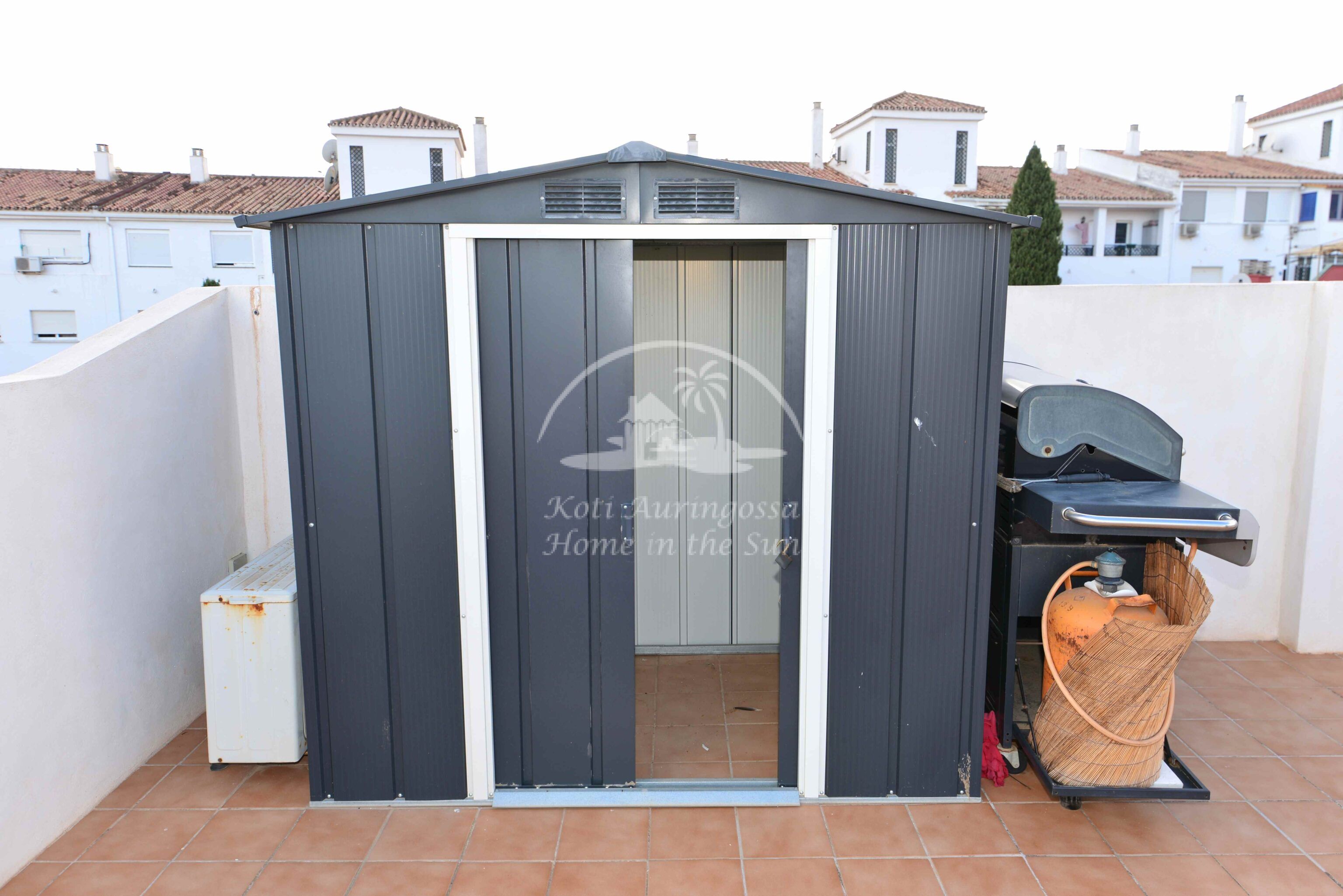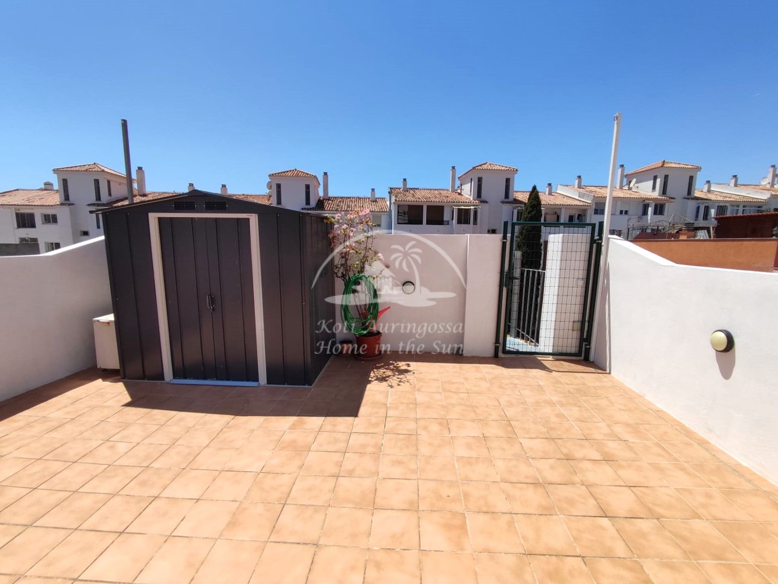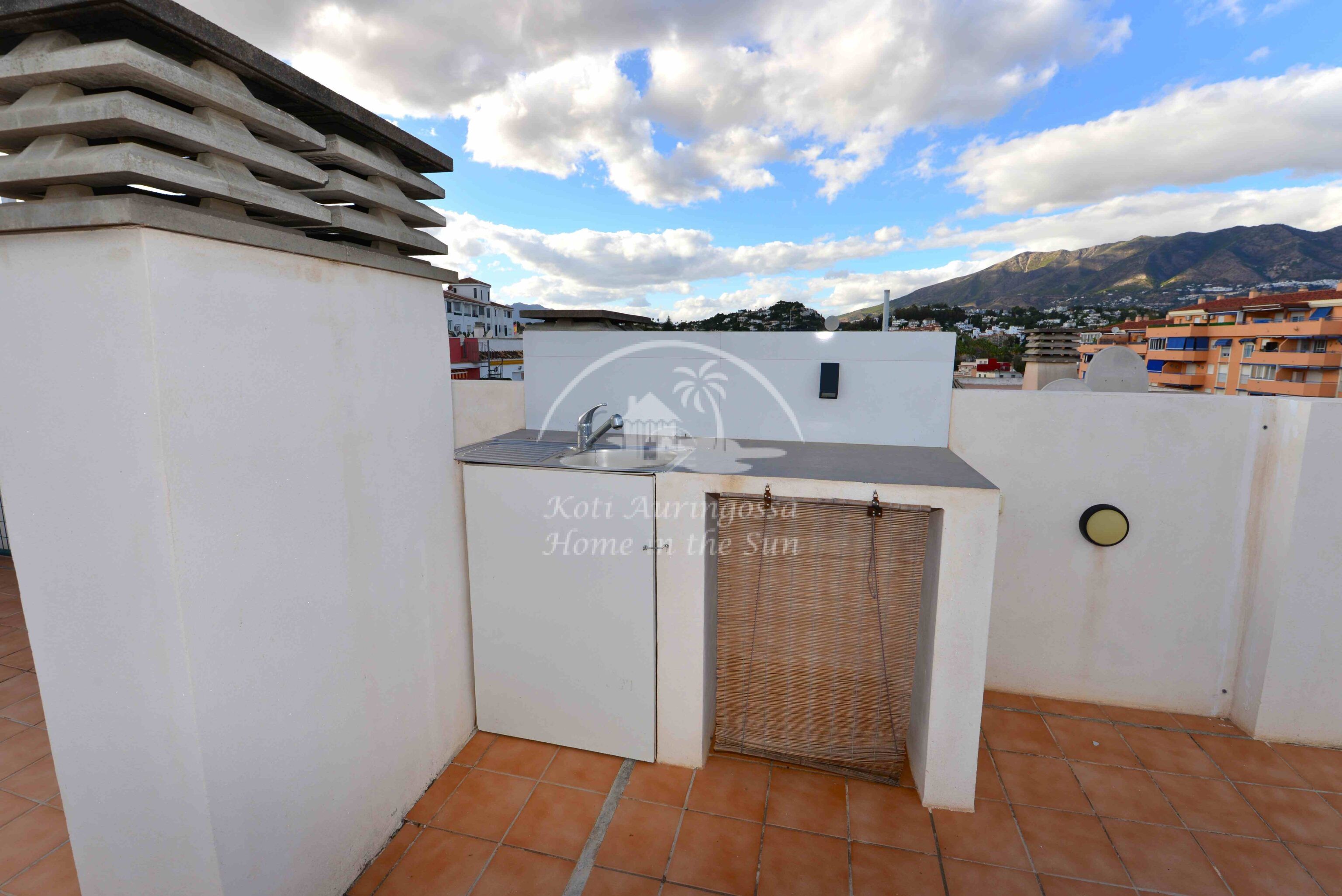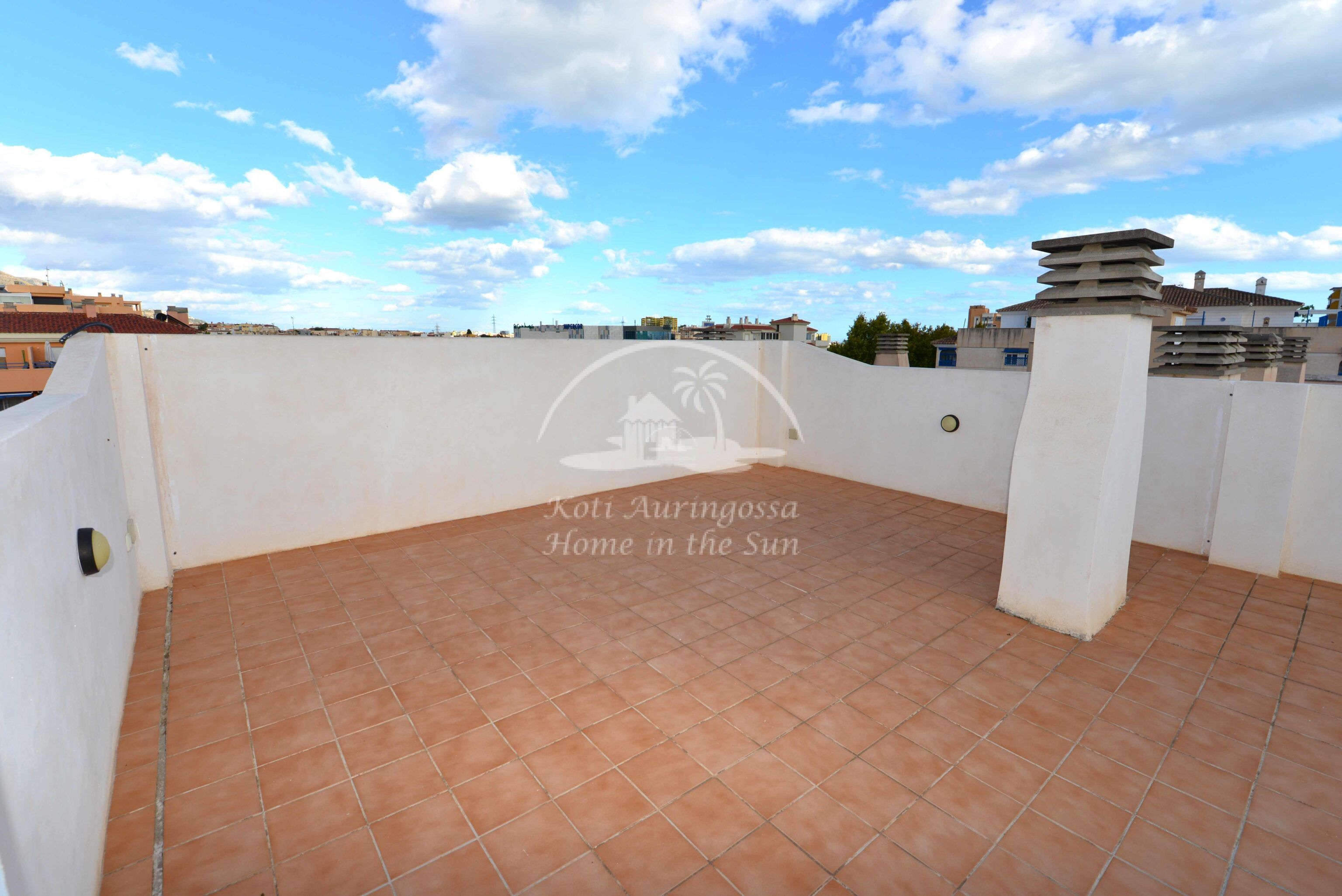 Valoisa olohuone ja ruokailutila. Olohuoneesta on käynti etelään päin olevalle terassille. Terassilta on kierreportaat valtavan kokoiselle katto terassille, jossa voi nauttia, vaikka grillaten, kattoterassille paistaa aurinko aivan koko päivän. Erillinen keittiö, jossa on myös astianpesukone. 2 makuuhuonetta.