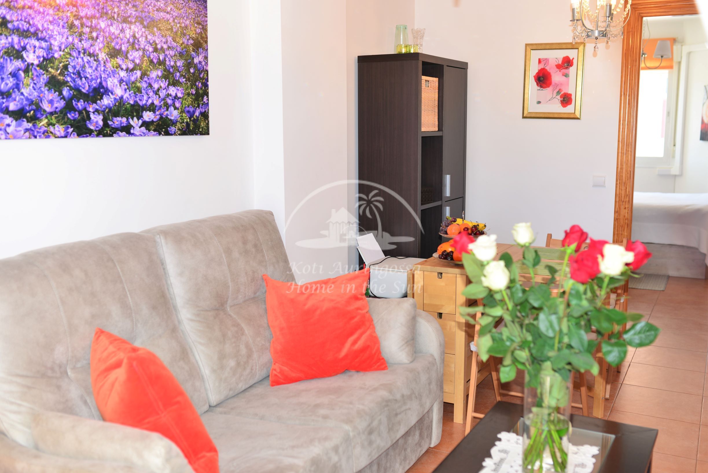 Asunto on laadukkaasti ja kauniisti kalustettu sekä sisustettu, ja se myydään täysin kalustettuna ja varustettuna valmiina asumiseen. Valoisa olohuone ja ruokailutila. Olohuoneesta on käynti aurinkoiselle etelä – itä suuntaiselle lasitetulle terassille, josta kivat näkymät kaupungin ylle. Erillinen keittiö jossa kaikki toimii sähköllä. 1 makuuhuone. 1 kylpyhuone suihkulla. Nopea wifi internet yhteys valmiina. Olohuoneessa on ilmastointi lämpöpumppu. Terassin katolla aurinkopaneelit. Kaikki keskustan palvelut lähellä. Osoite: Calle Virgen del Pilar 48, 29651 Las Lagunas.