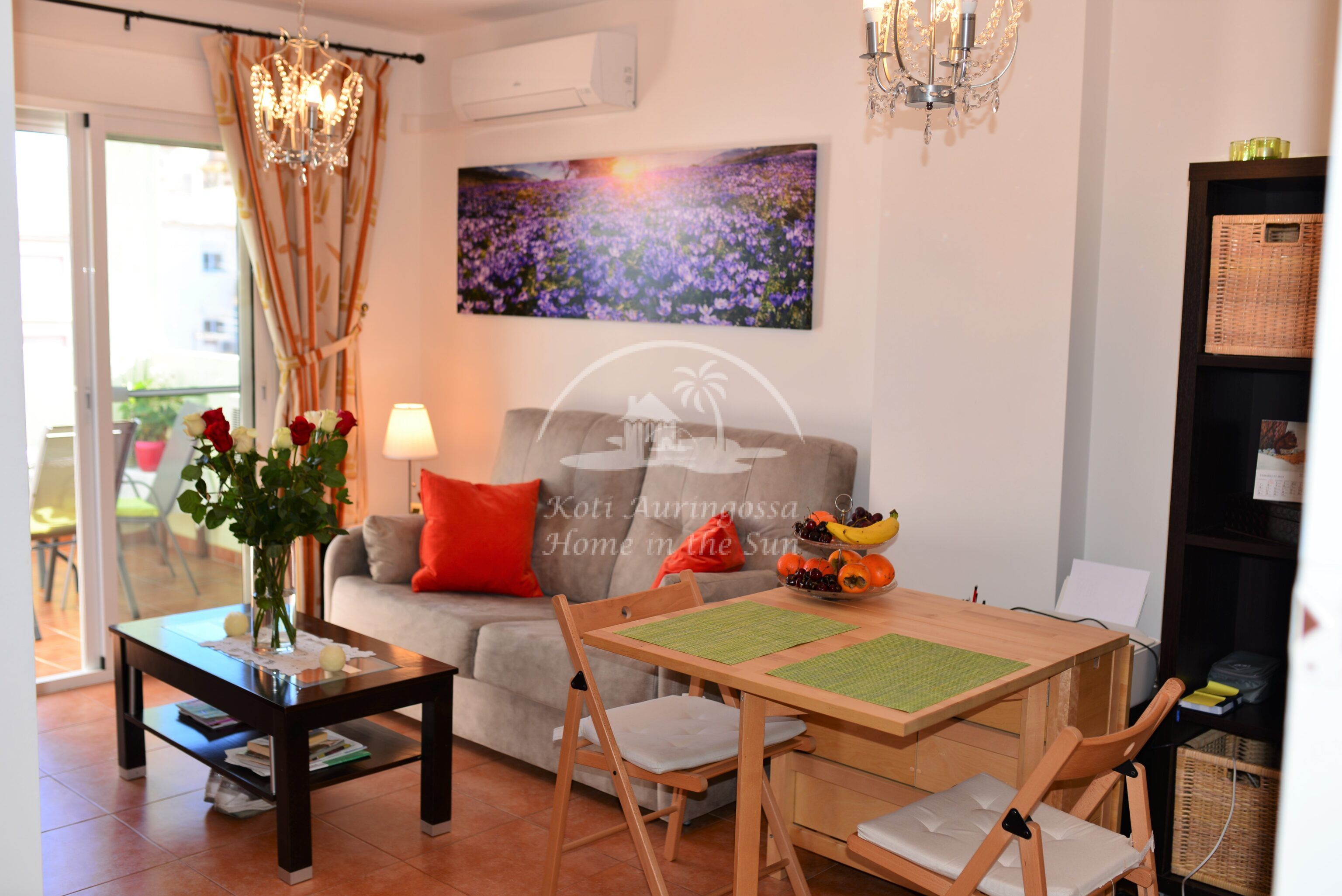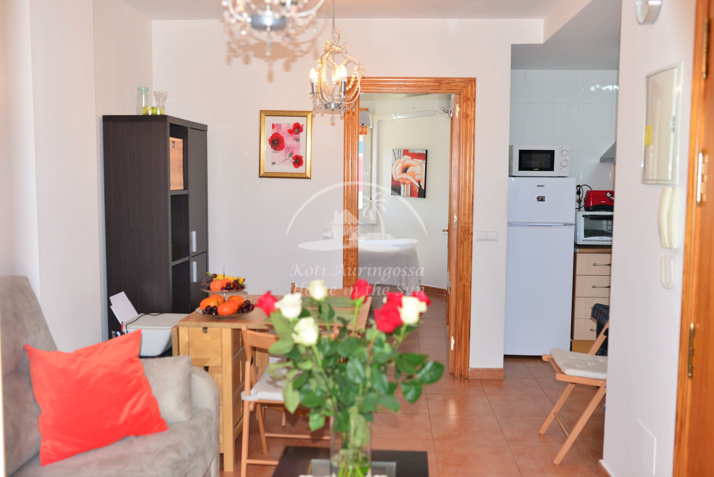 Asunto on laadukkaasti ja kauniisti kalustettu sekä sisustettu, ja se myydään täysin kalustettuna ja varustettuna valmiina asumiseen. Valoisa olohuone ja ruokailutila. Olohuoneesta on käynti aurinkoiselle etelä – itä suuntaiselle lasitetulle terassille, josta kivat näkymät kaupungin ylle. Erillinen keittiö jossa kaikki toimii sähköllä. 1 makuuhuone. 1 kylpyhuone suihkulla. Nopea wifi internet yhteys valmiina. Olohuoneessa on ilmastointi lämpöpumppu. Terassin katolla aurinkopaneelit. Kaikki keskustan palvelut lähellä. Osoite: Calle Virgen del Pilar 48, 29651 Las Lagunas.
