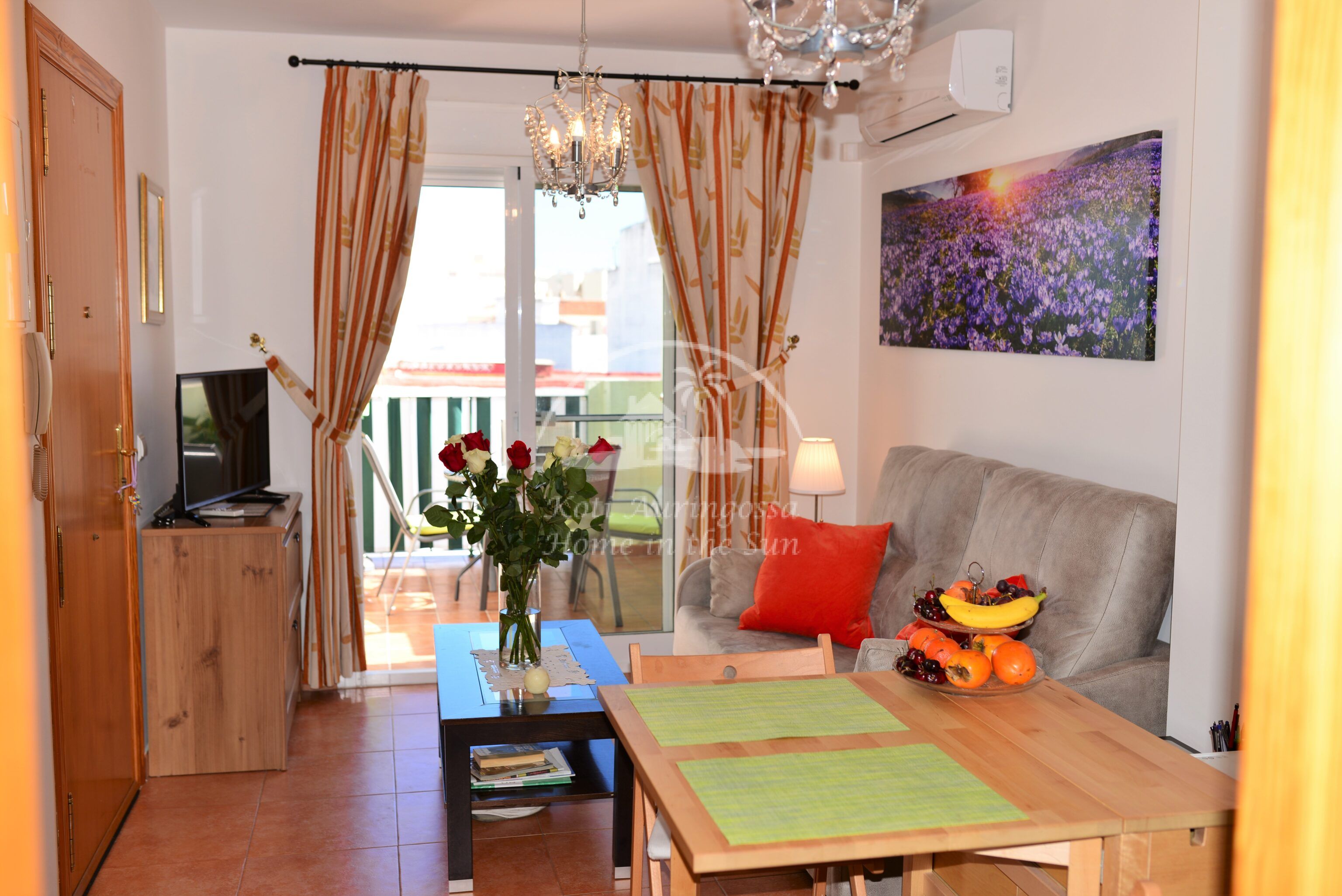 El apartamento está amueblado y decorado con calidad y buen gusto, y se vende completamente amueblado y equipado listo para habitar. Salón y comedor luminosos. Desde el salón se accede a una terraza acristalada orientada al sureste, con bonitas vistas sobre la ciudad. Cocina independiente donde todo funciona con electricidad. 1 dormitorio. 1 baño con ducha. Conexión rápida a internet wifi disponible. El salón dispone de aire acondicionado con bomba de calor. En la cubierta de la terraza hay paneles solares. Todos los servicios del centro cerca. Dirección: Calle Virgen del Pilar 48, 29651 Las Lagunas.