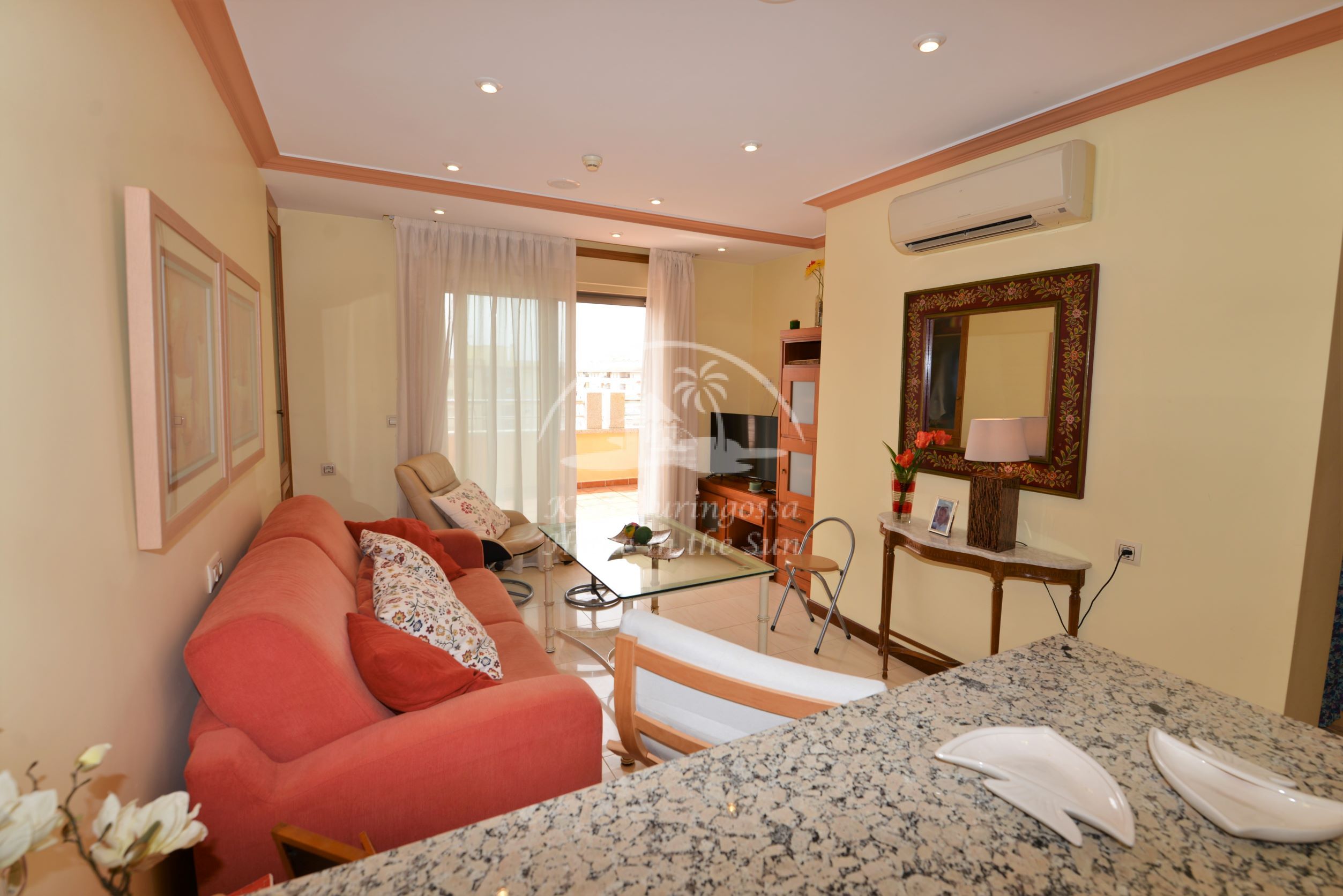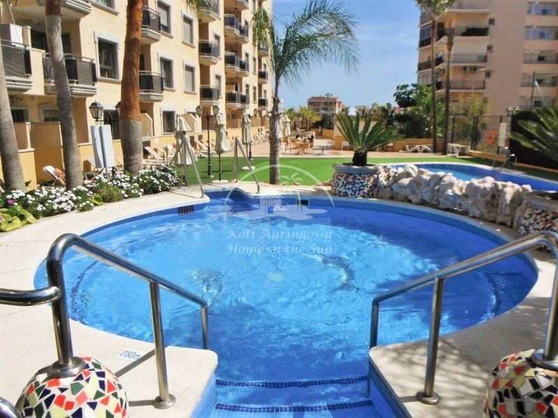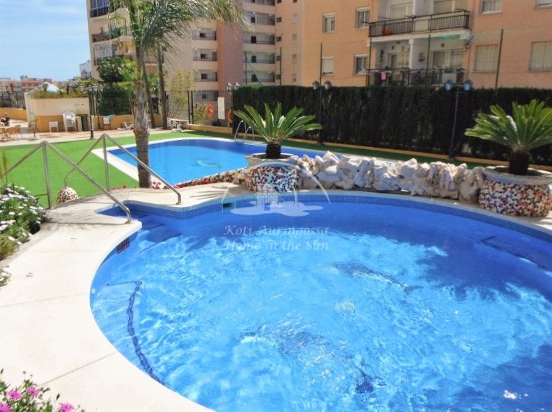 Tämä kattohuoneisto sijaitsee laadukkaassa huoneisto hotelli Mediterraneo Realissa. Valoisa olohuone ja ruokailutila. Olohuoneesta on käynti suurelle länteen päin olevalle aurinkoiselle terassille, josta on hienot näkymät taloyhtiön uima-altaalle sekä rannikolle. Moderni amerikkalainen keittiö, jossa on myös astianpesukone. 1 tilava makuuhuone. 1 kylpyhuone. Keskus ilmastointi lämpöpumppu olohuoneessa ja makuuhuoneessa. Taloyhtiön uima-allas on auki ympäri vuoden. Taloyhtiön respasta voi ottaa netti yhteyden halutessaan. Kaikki palvelut lähellä. Tämä on oikea valinta laatua ja aurinkoa etsivälle. Osoite: Calle Antonio Machado 25. Edif. Meditterraneo Real. 8 krs. Los Boliches.