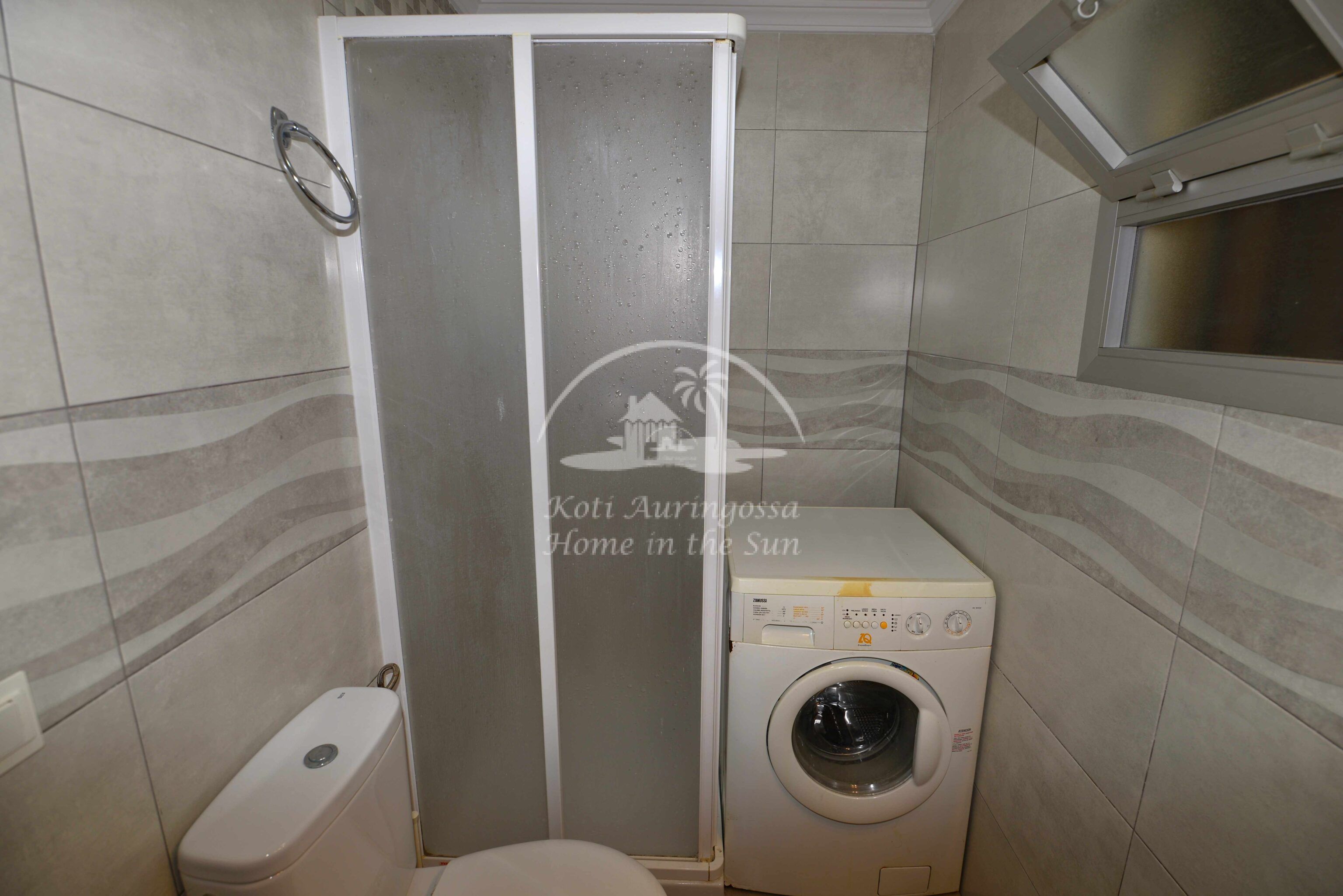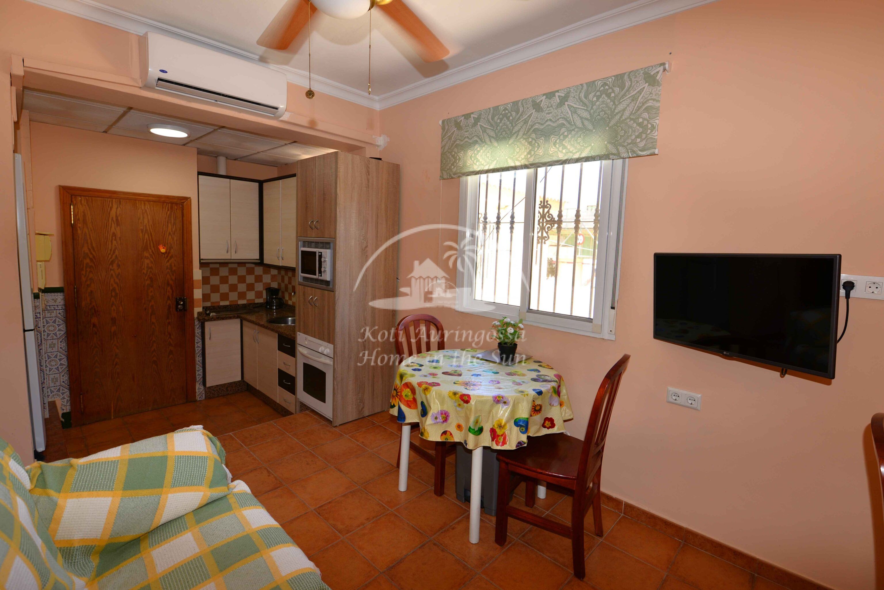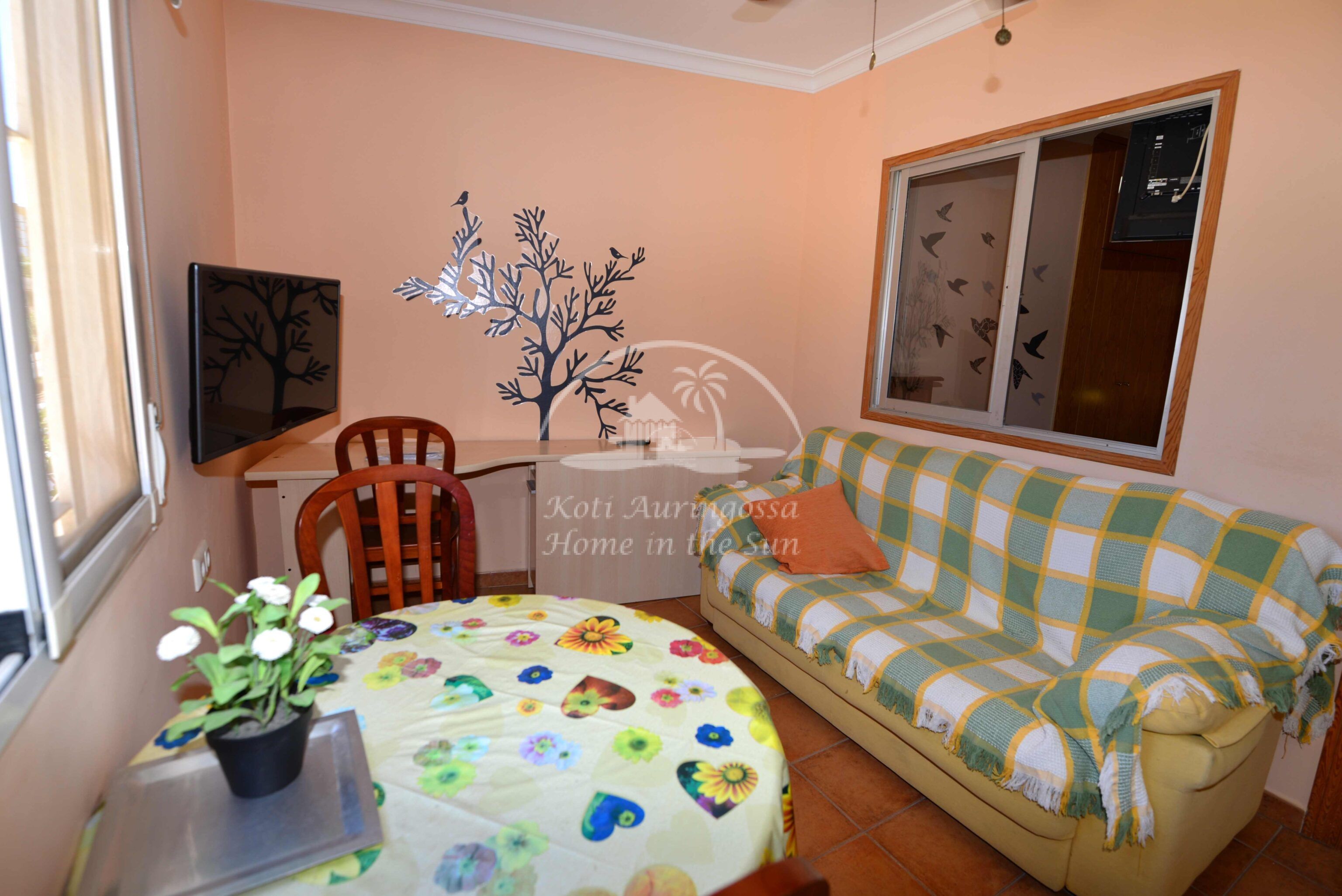 Asunto on kokonaan uusittu ja remontoitu. Siinä on pienehkö valoisa olohuone ja ruokailutila. 1 makuuhuone parivuoteella. 1 kylpyhuone, jossa suihkukaappi ja pyykinpesukone. Avokeittiö, jossa kaikki toimii sähköllä. Asunnossa on myös kaksi uutta taulu-TV:tä; toinen makuuhuoneessa ja toinen olohuoneessa. Olohuoneesta löytyy ilmastointi/lämpöpumppu sekä vuodesohva. Valokuitu wifi nettiyhteys sisältyy vuokraan. Tässä kodikkaassa pikku asunnossa ei ole parveketta. Merenrantaan on vain noin 300 metriä matkaa ja asunto sijaitsee hyvällä paikalla kaikkien palvelujen lähellä.