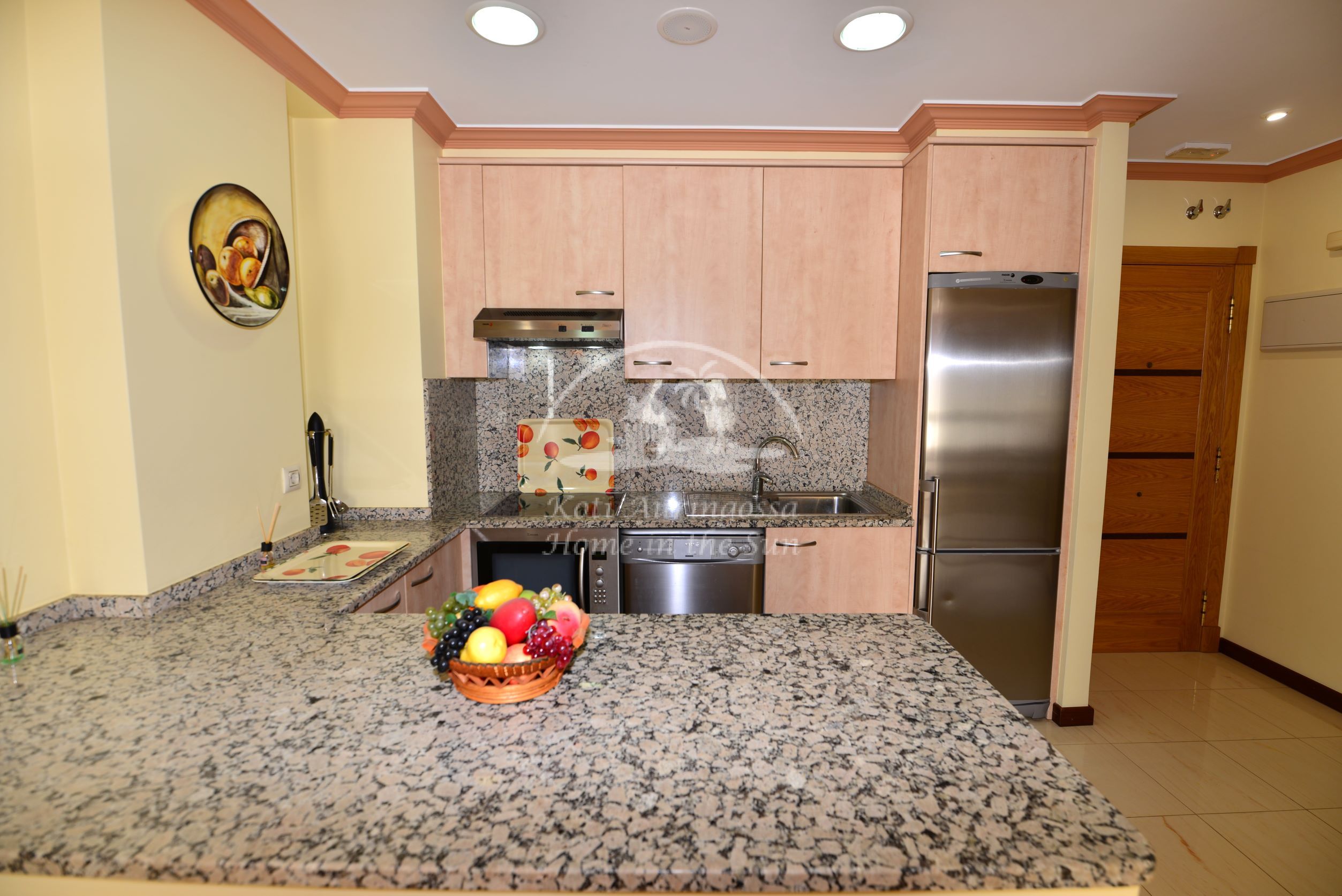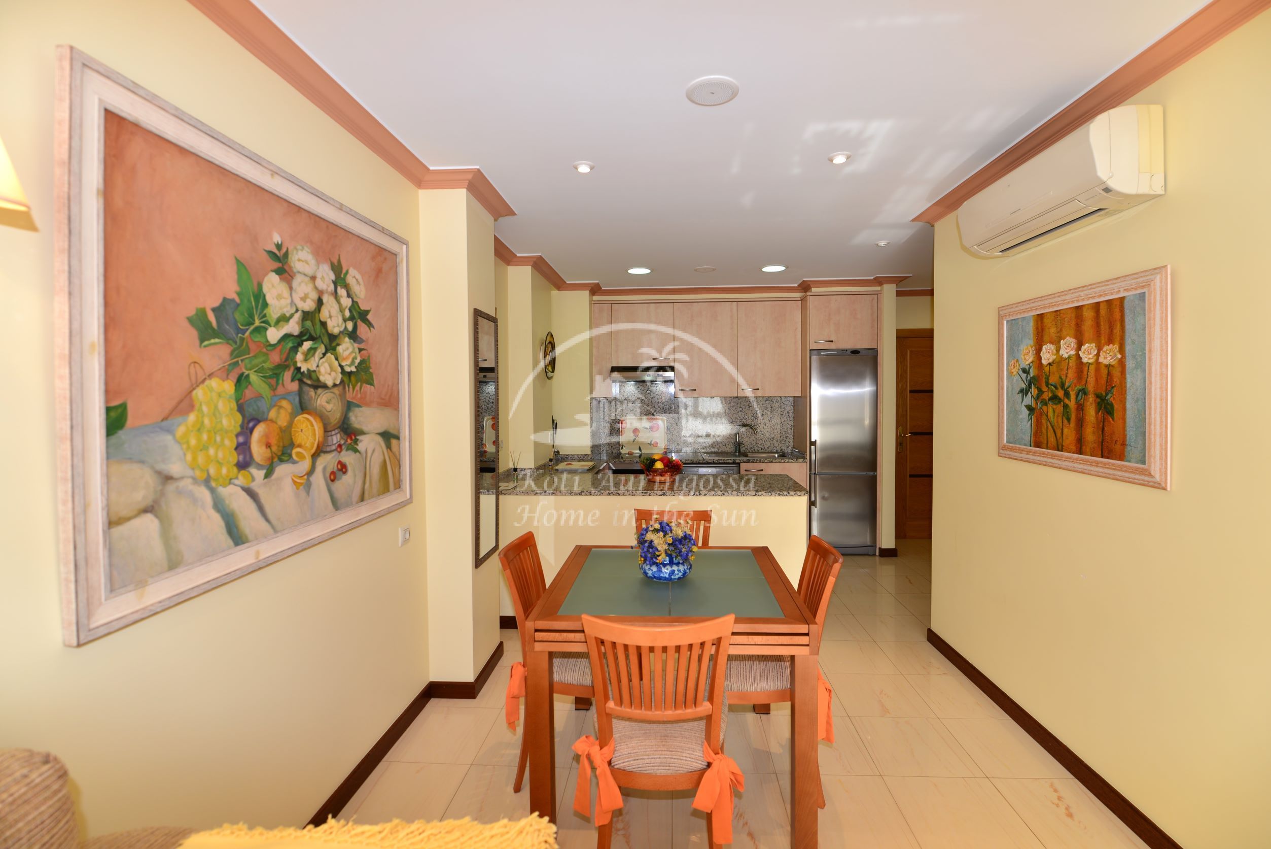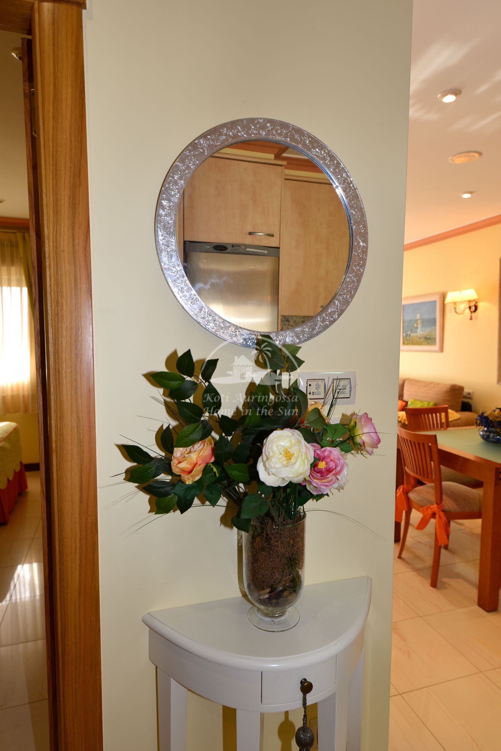 Tämä romanttinen asunto on kauniisti ja aistikkaasti sisustettu. Siinä on valoisa olohuone ja ruokailutila, täydellisesti varustettu laadukas ja moderni amerikkalainen keittiö, jossa on myös astianpesukone. 1 makuuhuone sekä 1 kylpyhuone. Olohuoneesta on käynti länteen päin olevalle aurinkoiselle terassille, josta on kivat näkymät sekä uima-altaalle että Los Bolichesin ylle. Olohuoneessa ja makuuhuoneessa on ilmastointi-lämpöpumppu, 100:n kanavan keskusradio/audio-system ja olohuoneessa taulu-TV. Nopea internet wifi yhteys valmiina. Taloyhtiössä on sauna sekä lämmitettävä uima-allas ja poreallas kauniin vehreän puutarhan ympäröimänä. Allasalue on auki ympäri vuoden. Alakerran vastaanotossa on 24.00 asti vastaanottovirkailija – osa heistä puhuu Suomea. Kaikki keskustan palvelut on lähellä, lähin ruokakauppa pääsisäänkäyntiä vastapäätä ja matkaa merenrantaankin on vain noin 600 metriä.