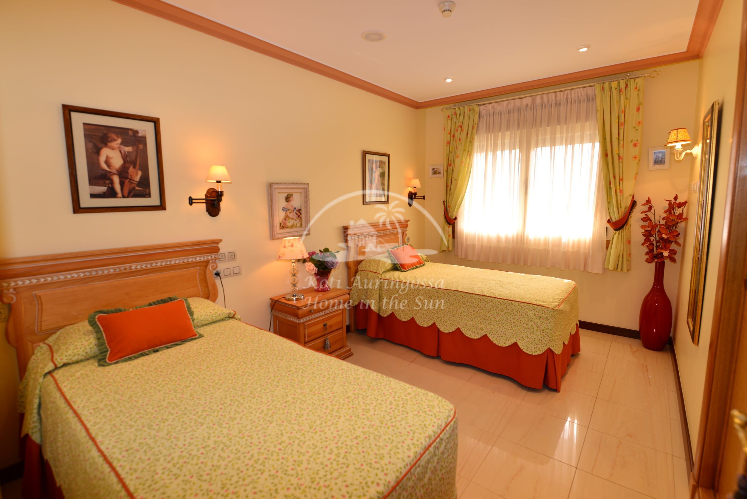 Tämä romanttinen asunto on kauniisti ja aistikkaasti sisustettu. Siinä on valoisa olohuone ja ruokailutila, täydellisesti varustettu laadukas ja moderni amerikkalainen keittiö, jossa on myös astianpesukone. 1 makuuhuone sekä 1 kylpyhuone. Olohuoneesta on käynti länteen päin olevalle aurinkoiselle terassille, josta on kivat näkymät sekä uima-altaalle että Los Bolichesin ylle. Olohuoneessa ja makuuhuoneessa on ilmastointi-lämpöpumppu, 100:n kanavan keskusradio/audio-system ja olohuoneessa taulu-TV. Nopea internet wifi yhteys valmiina. Taloyhtiössä on sauna sekä lämmitettävä uima-allas ja poreallas kauniin vehreän puutarhan ympäröimänä. Allasalue on auki ympäri vuoden. Alakerran vastaanotossa on 24.00 asti vastaanottovirkailija – osa heistä puhuu Suomea. Kaikki keskustan palvelut on lähellä, lähin ruokakauppa pääsisäänkäyntiä vastapäätä ja matkaa merenrantaankin on vain noin 600 metriä.