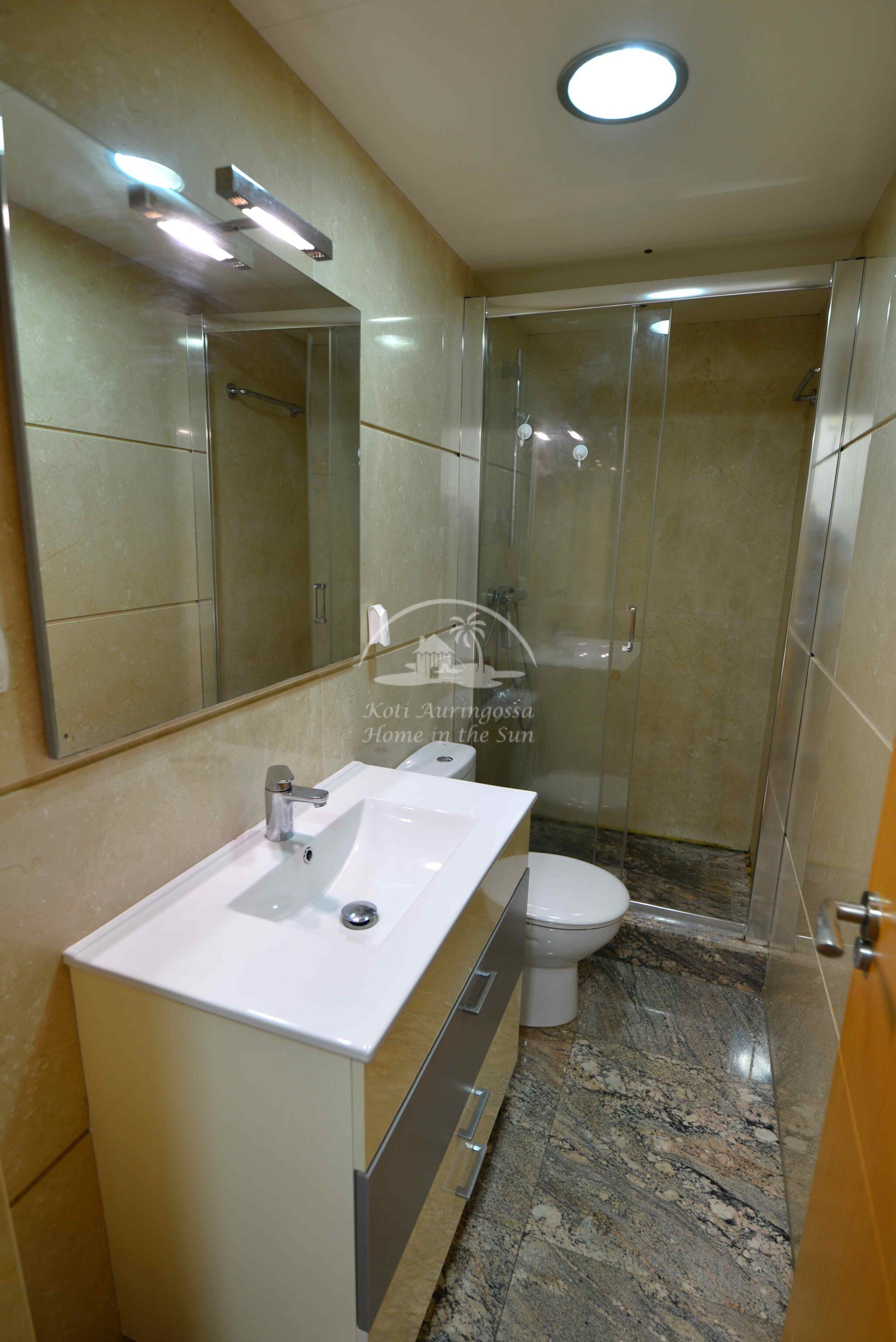 Asunto on kauniisti kalustettu ja sisustettu. Avara valoisa olohuone ja ruokailutila. Olohuoneesta käynti etelään ja länteen päin olevalle koko huoneiston kiertävälle pitkälle aurinkoiselle terassille josta näkymät merelle. Laadukas moderni avokeittiö. Olohuoneessa ilmastointi / lämpöpumppu.